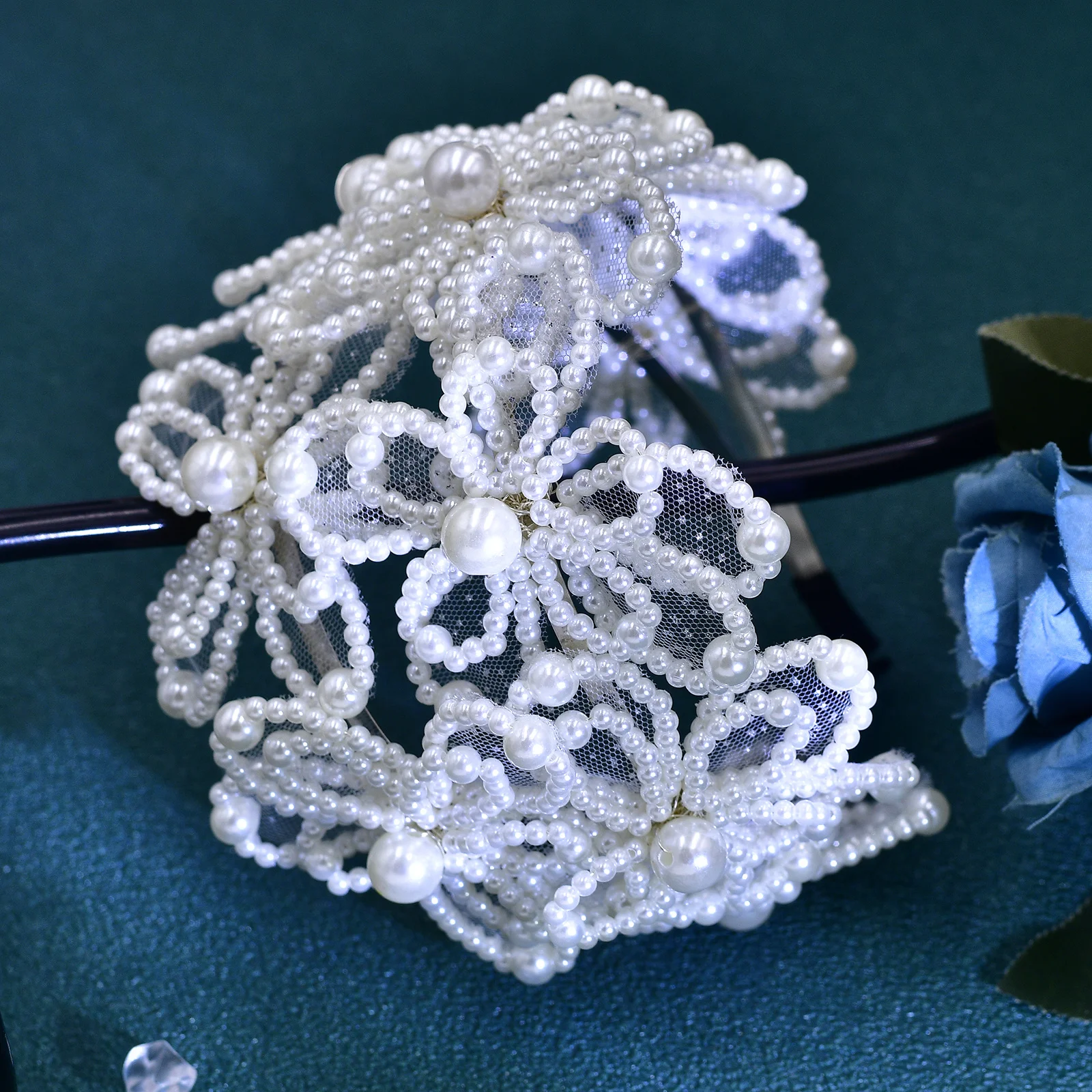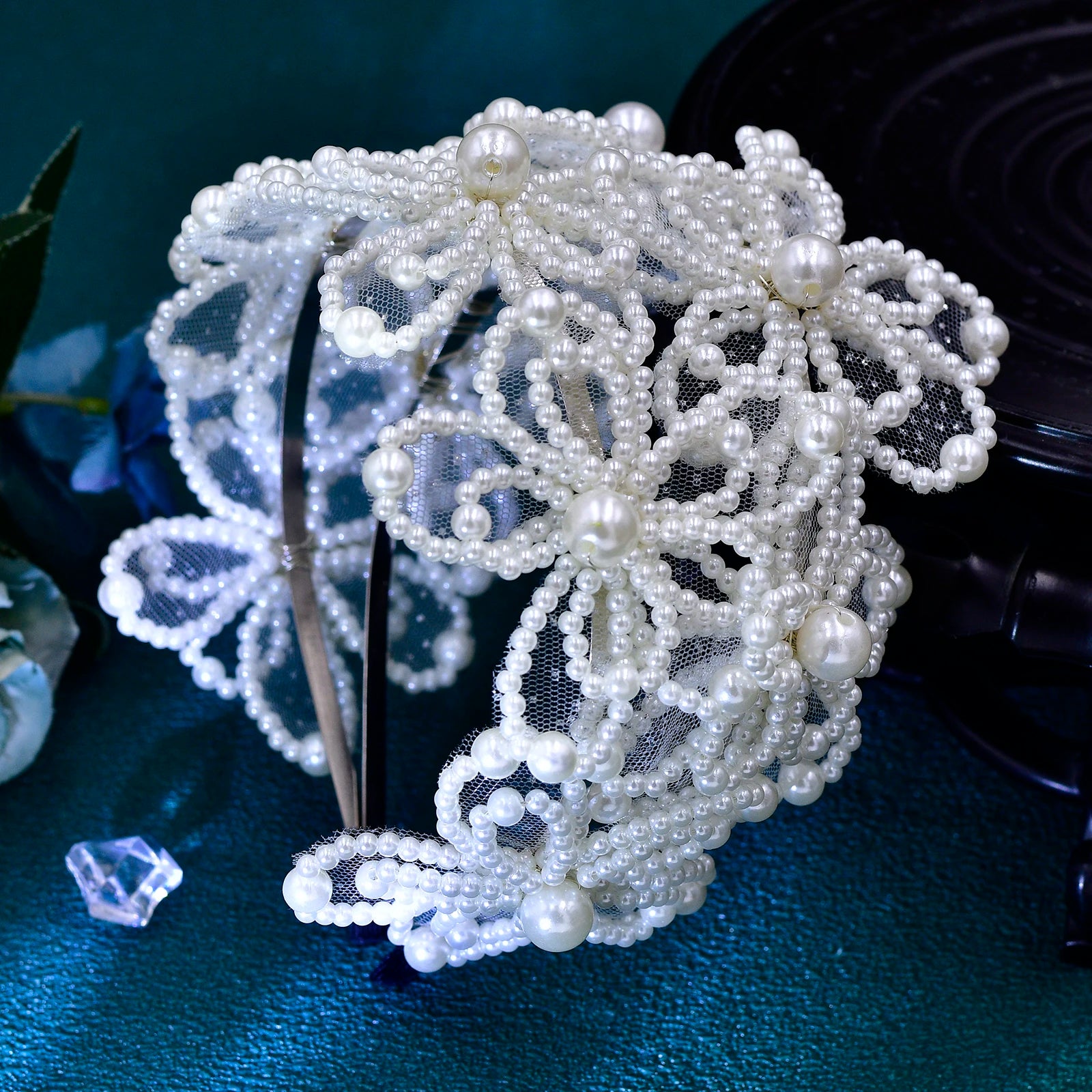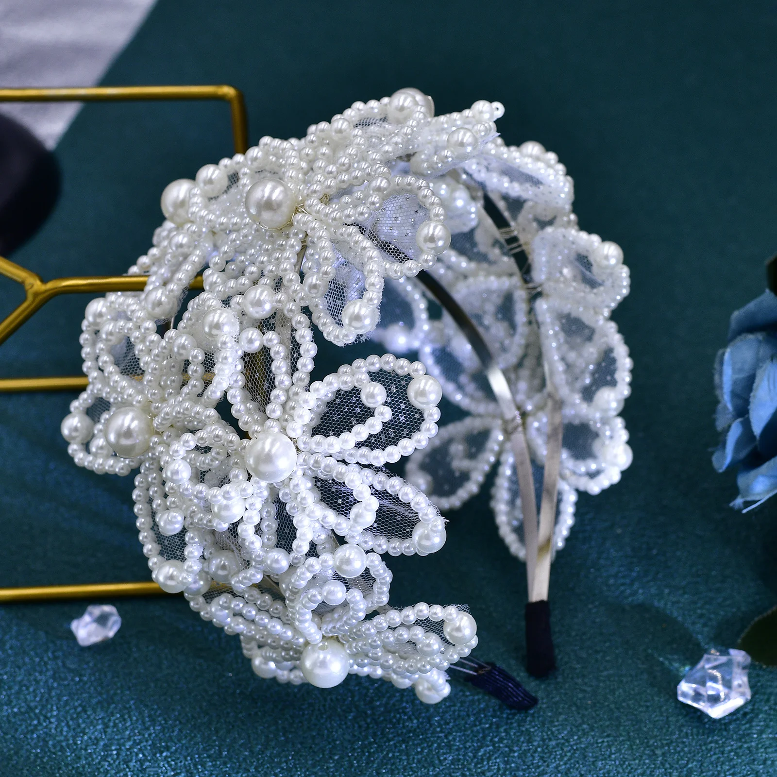 Wedding Head Jewelry White Pearl Headband Luxury Bride Tiara Bachelorette Party Accessories Bridal Hair Decoration HP695