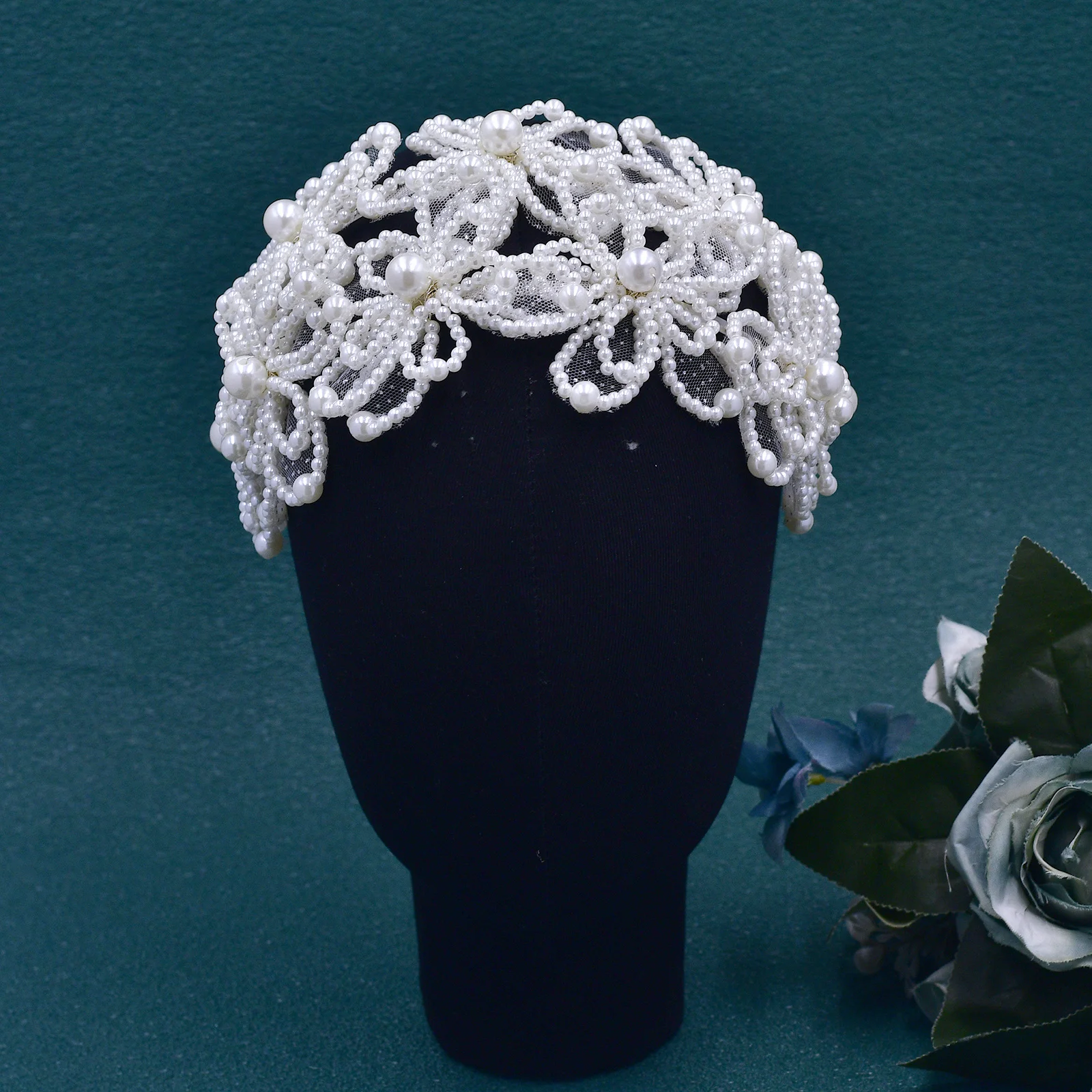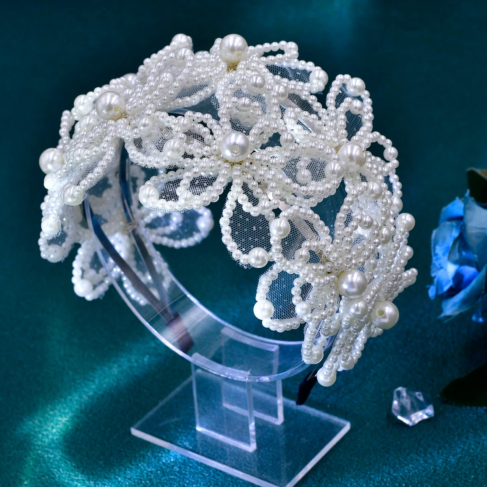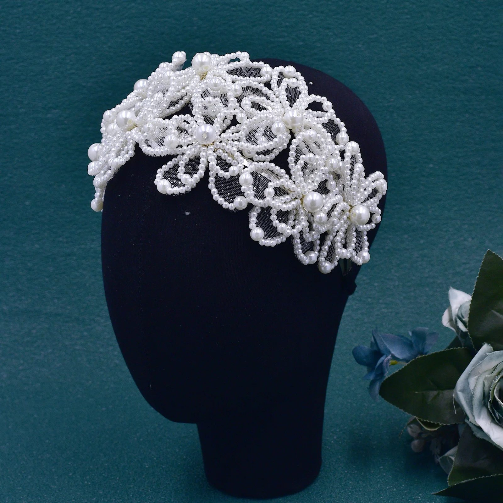 Wedding Head Jewelry White Pearl Headband Luxury Bride Tiara Bachelorette Party Accessories Bridal Hair Decoration HP695