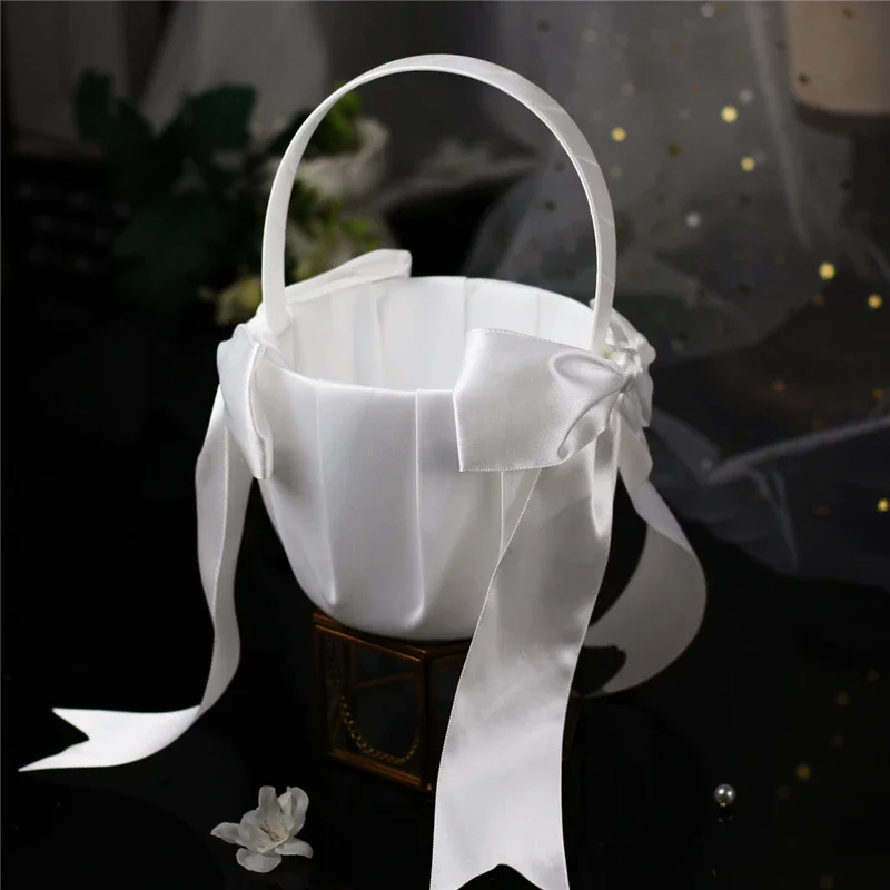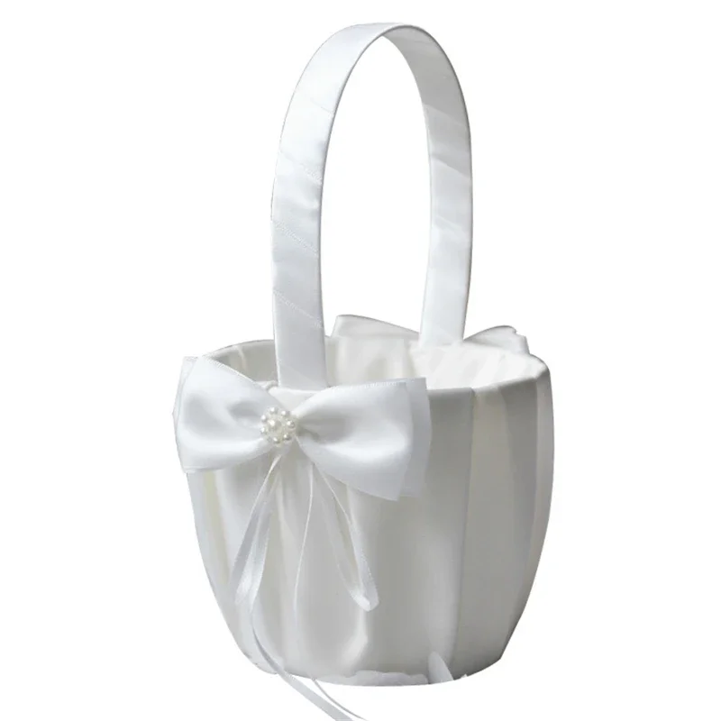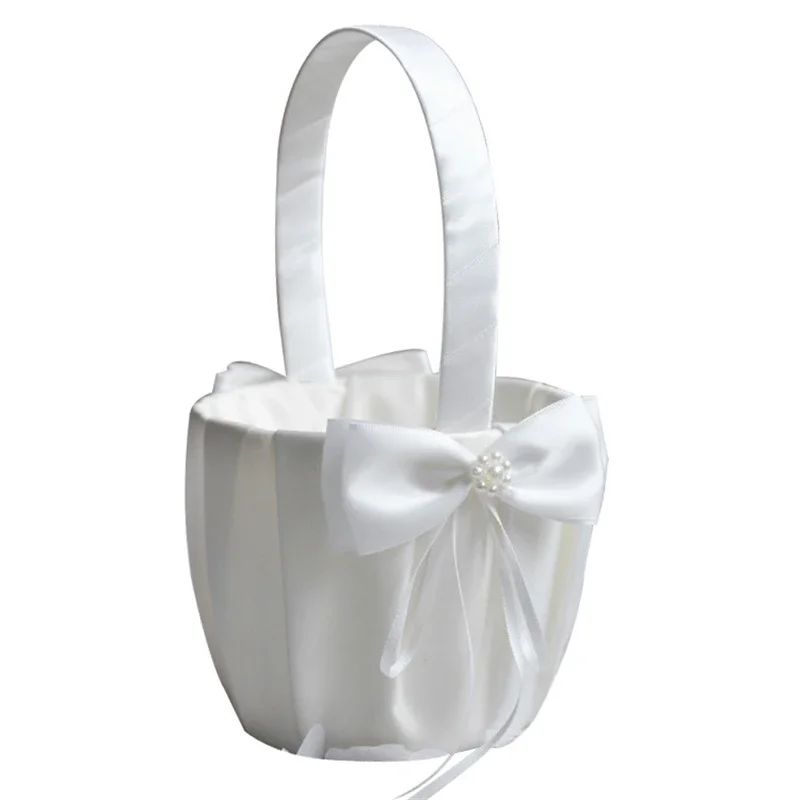 White Flower Girls Basket Pearl Simple Wedding Basket For Flower Bride/Kids Hand Held Wedding Ceremony Party Decorations