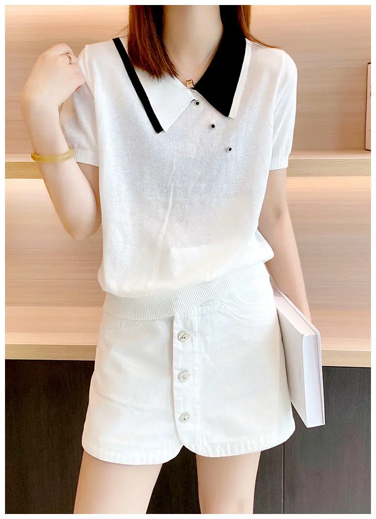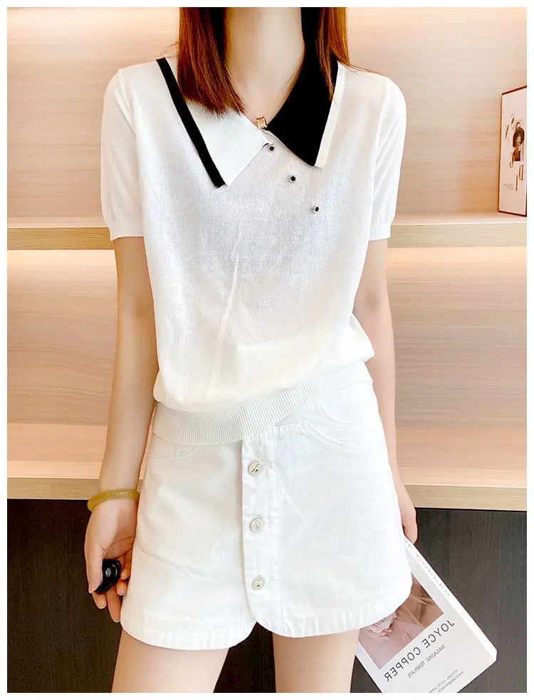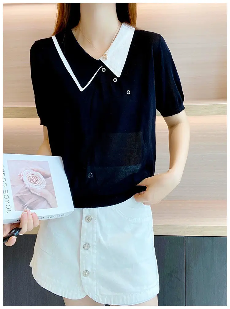 With Collar Plain Top Fitted Women's Y2k Pullover New Products Knit Black Fashion T Shirt Petite Female Polo Neck Tee Shirts Hot clothes