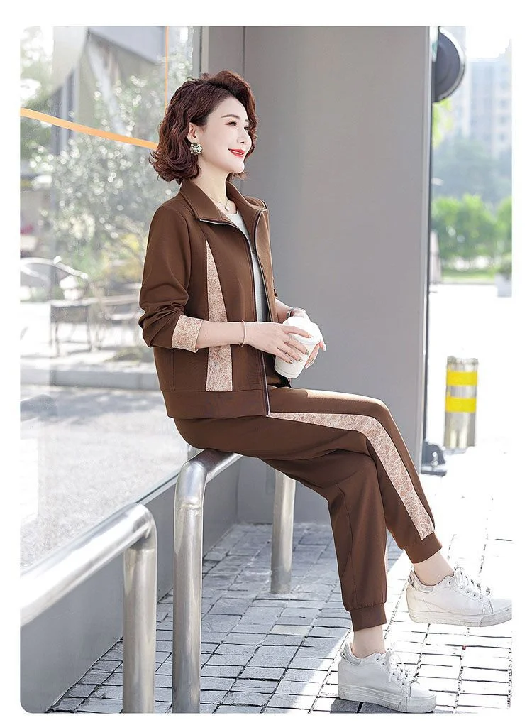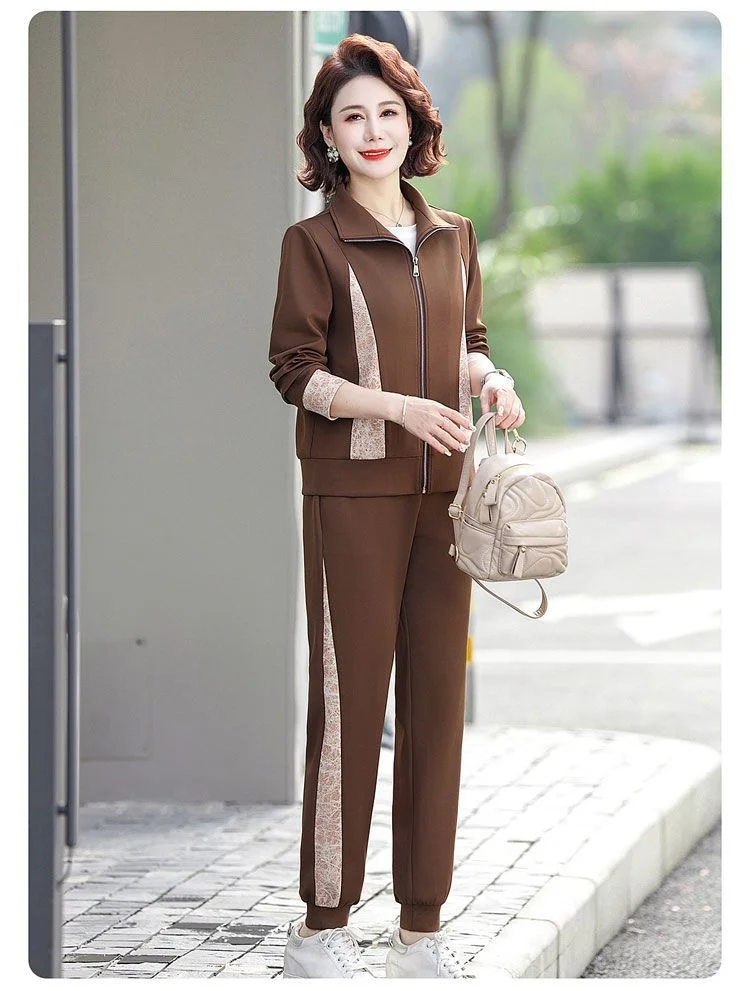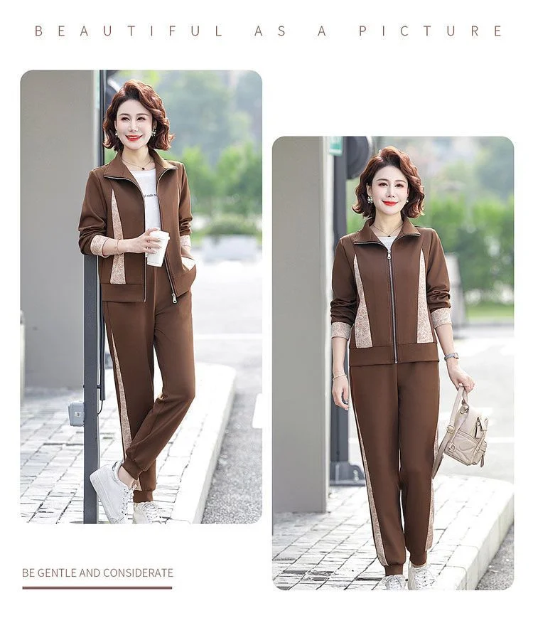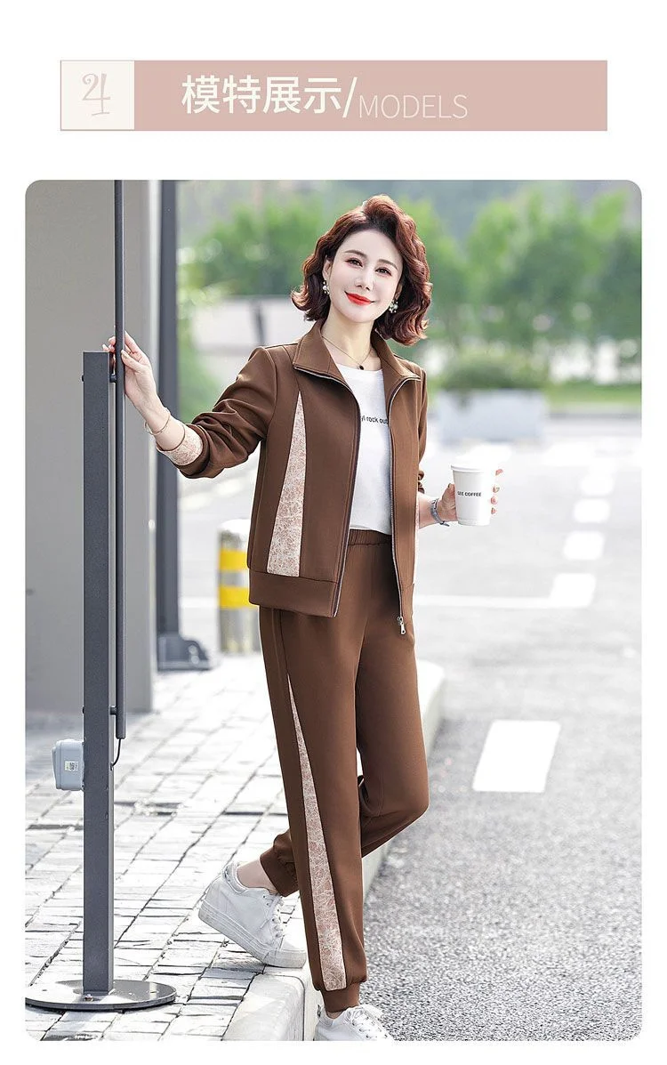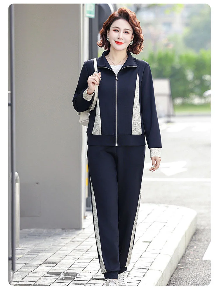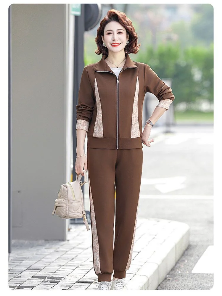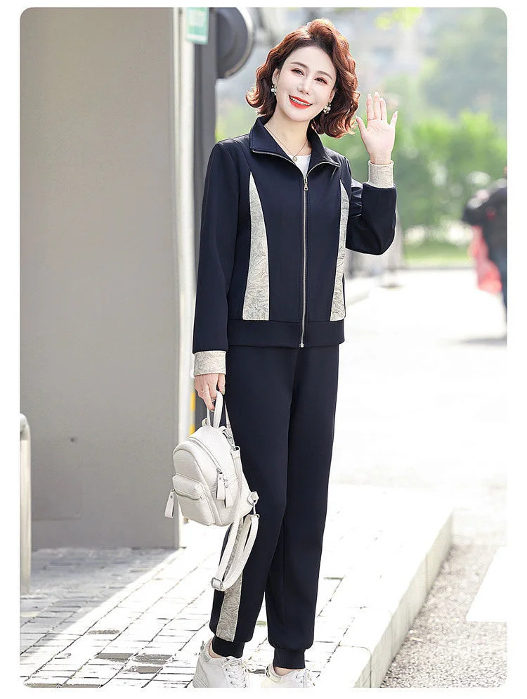 Women Clothes Solid Loose Sports Suit 2025 Spring Autumn Leisure Sportswear Middle-aged Temperament Age Reduction Two-piece Sets