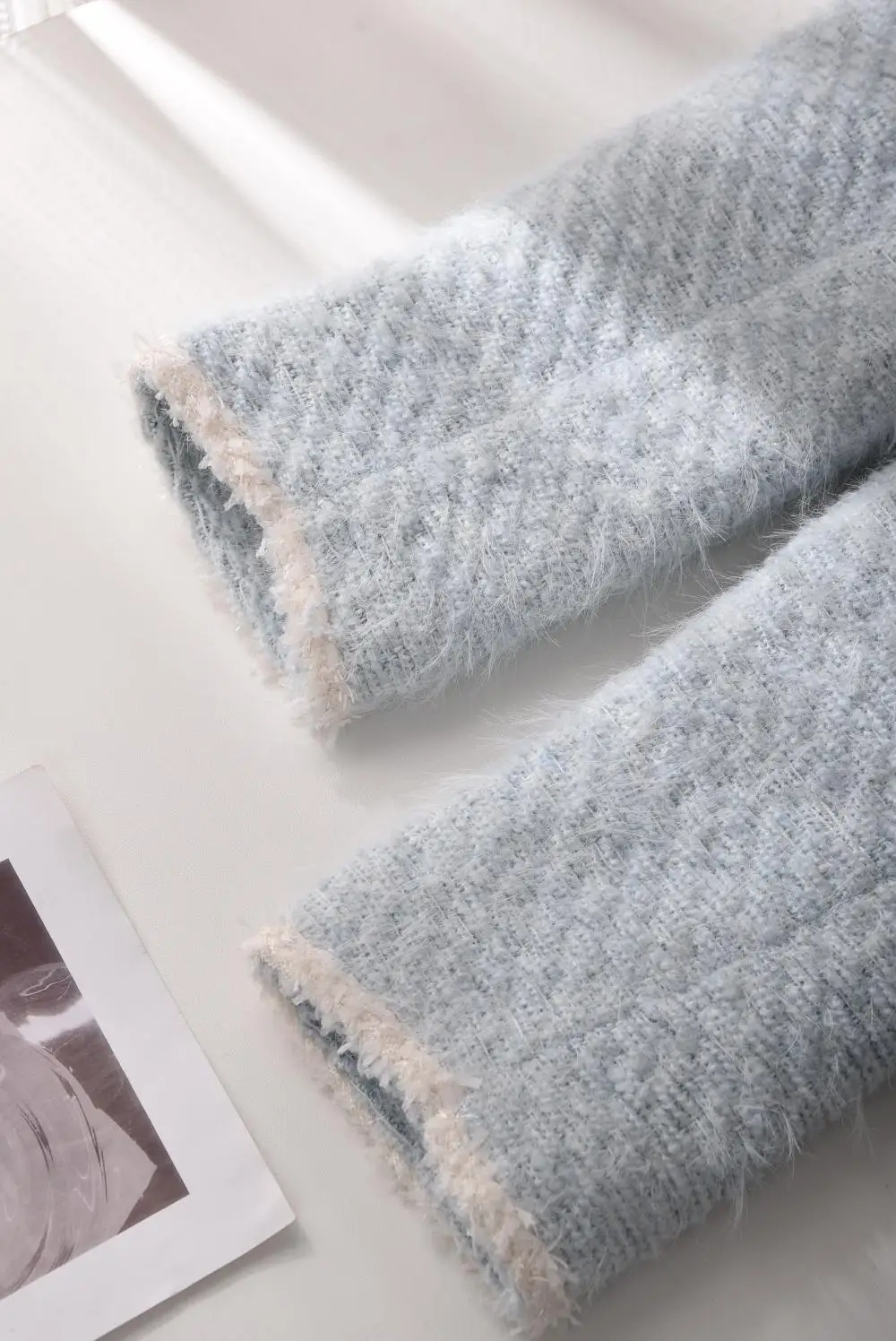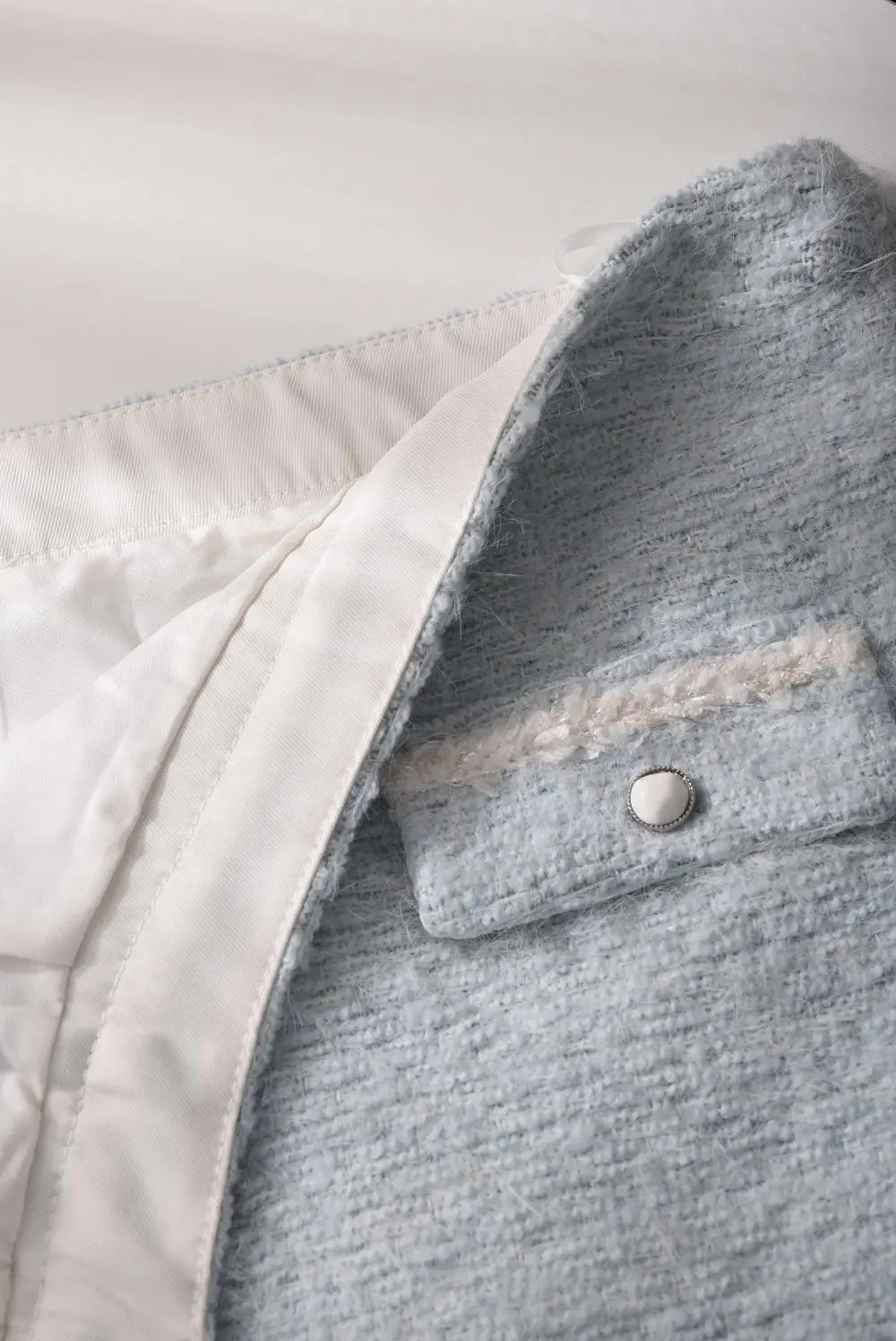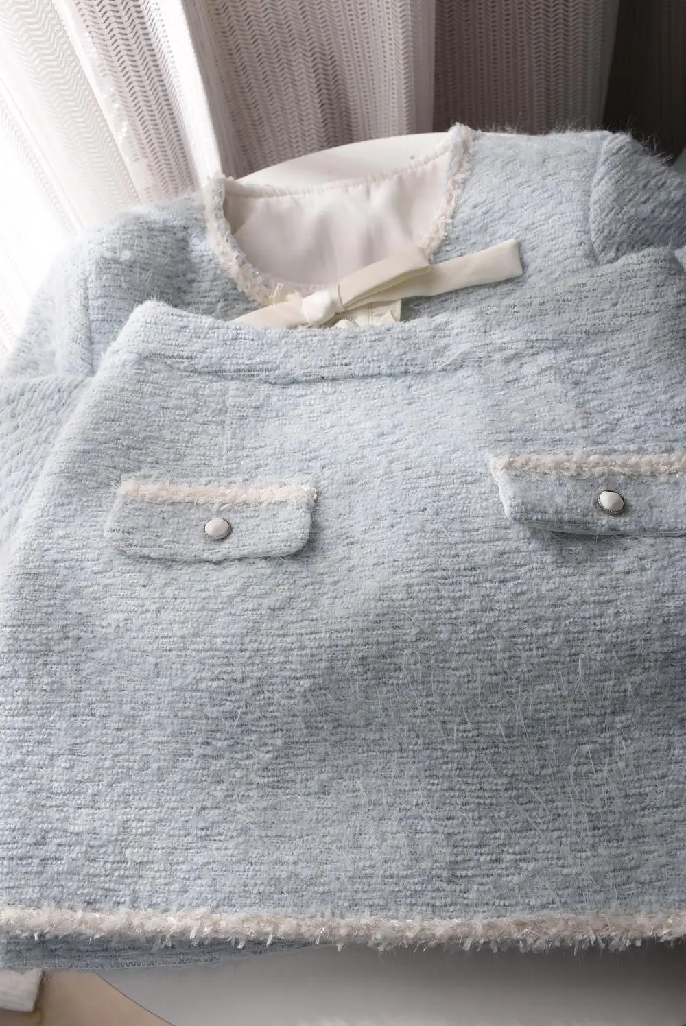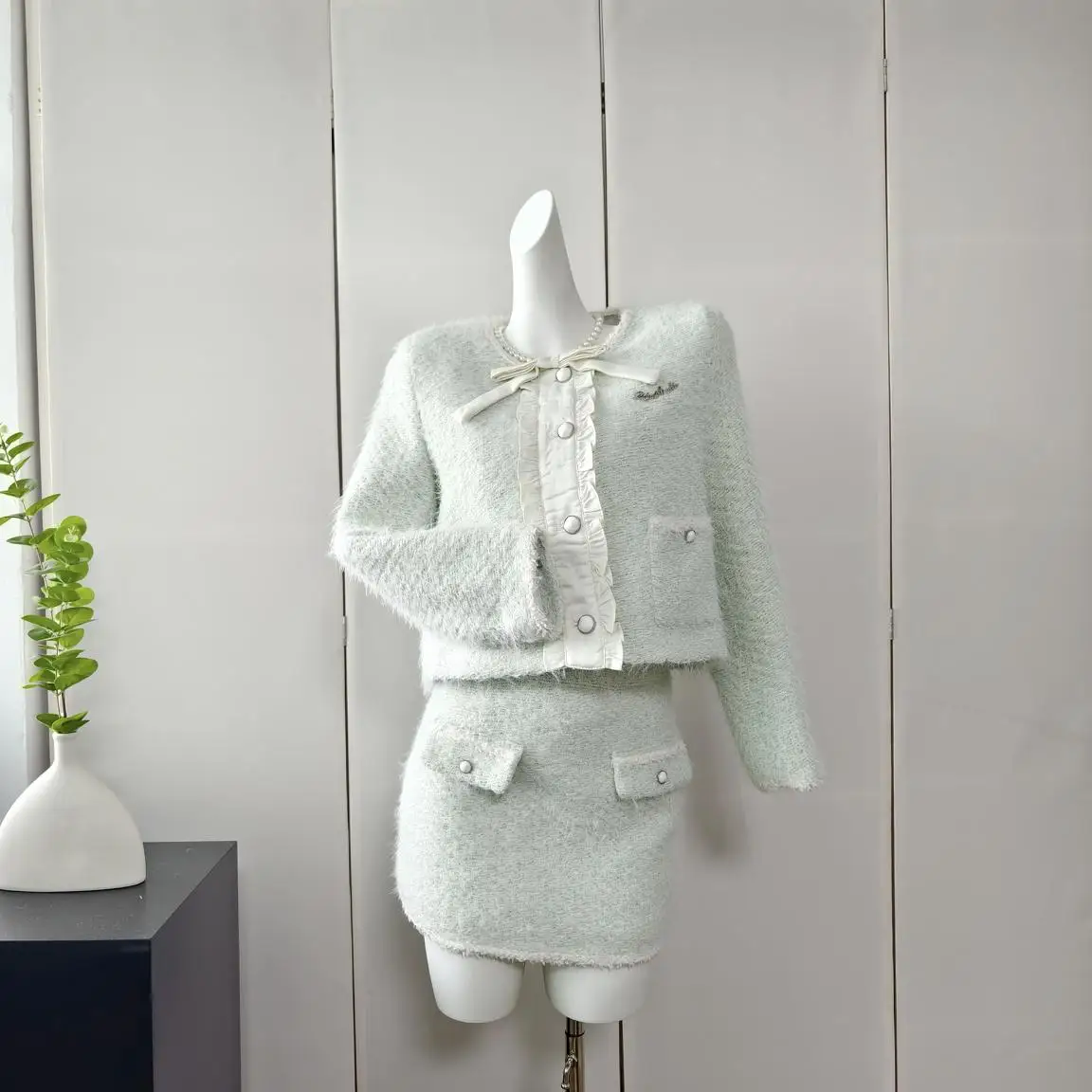 Frauen Elegante Tweed Luxus Anzug Strass Jacke Mantel Und Rock Zwei Stück Set Outfit Winter Pailletten Jacquard Party Kleidung 2023