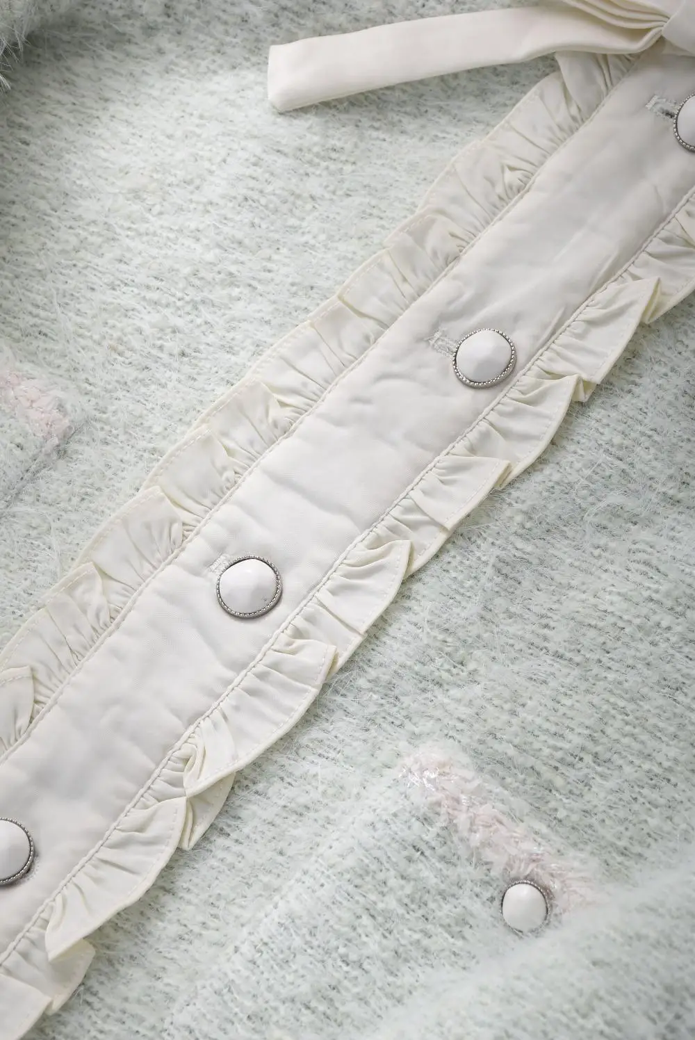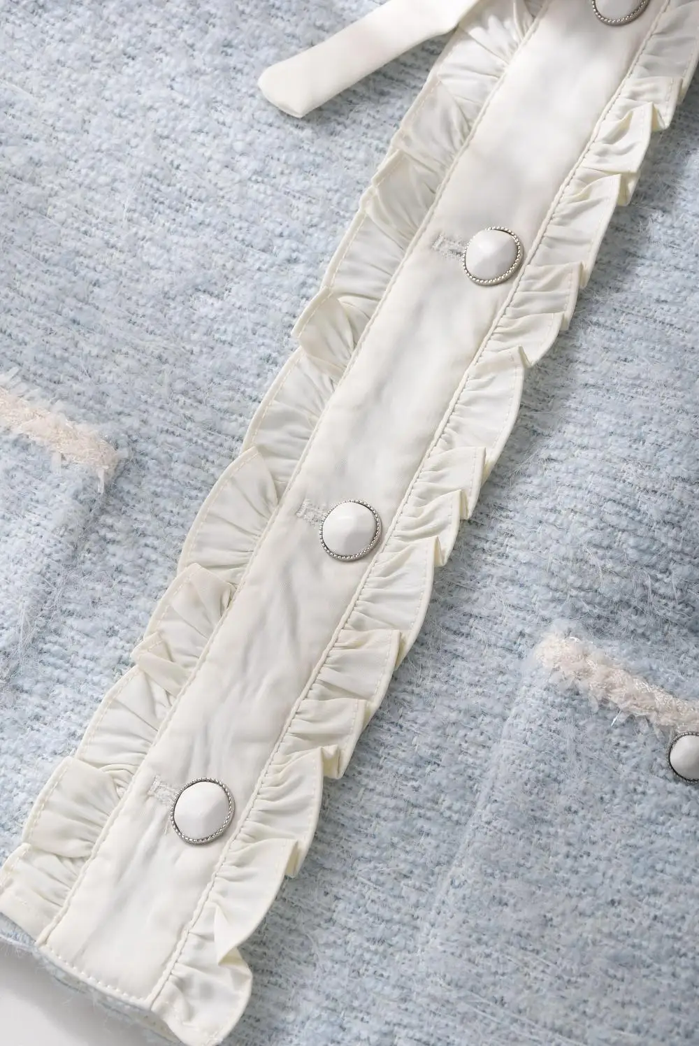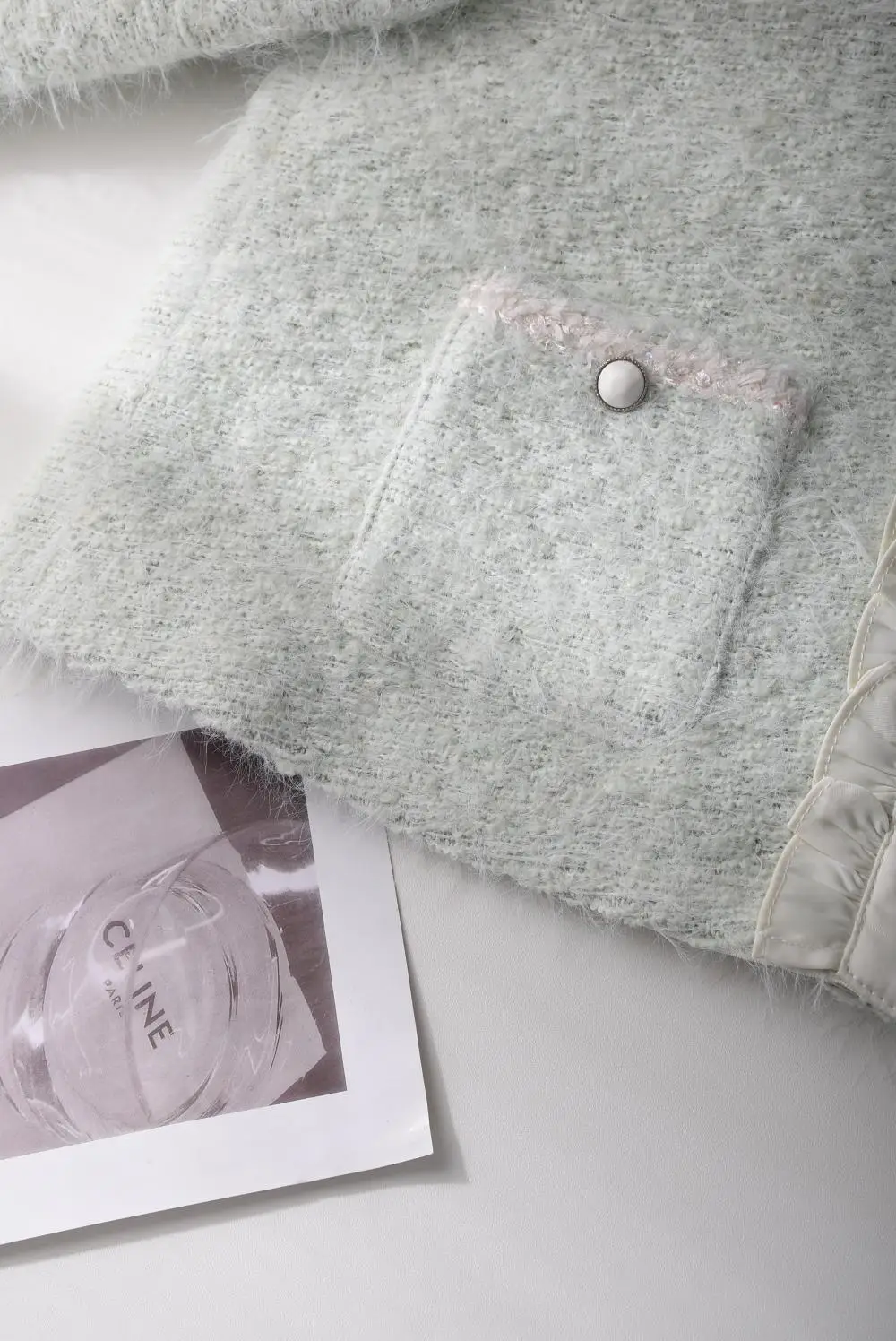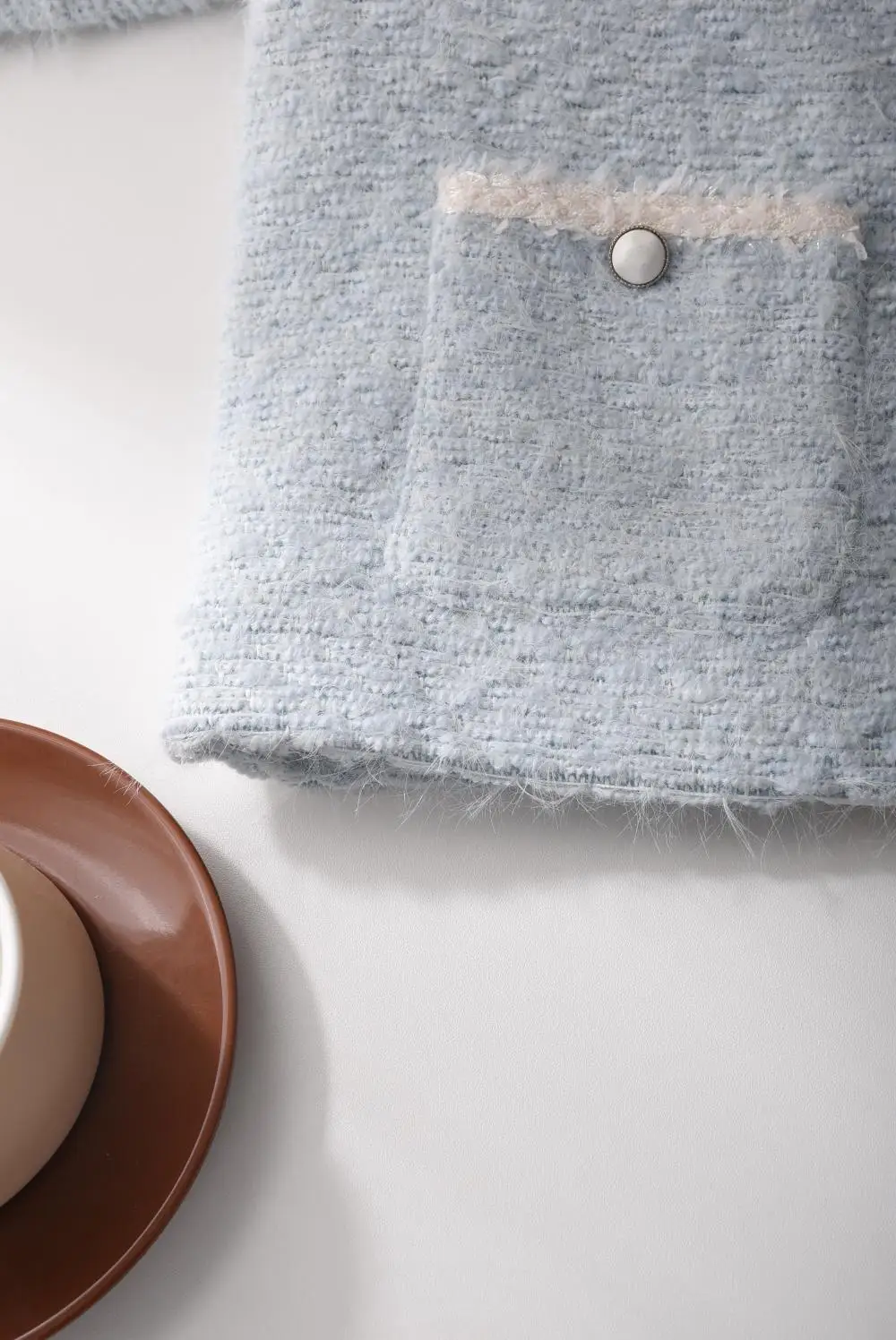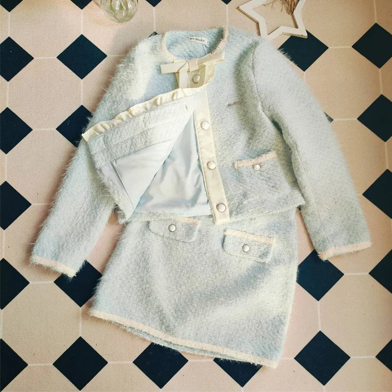 Frauen Elegante Tweed Luxus Anzug Strass Jacke Mantel Und Rock Zwei Stück Set Outfit Winter Pailletten Jacquard Party Kleidung 2023