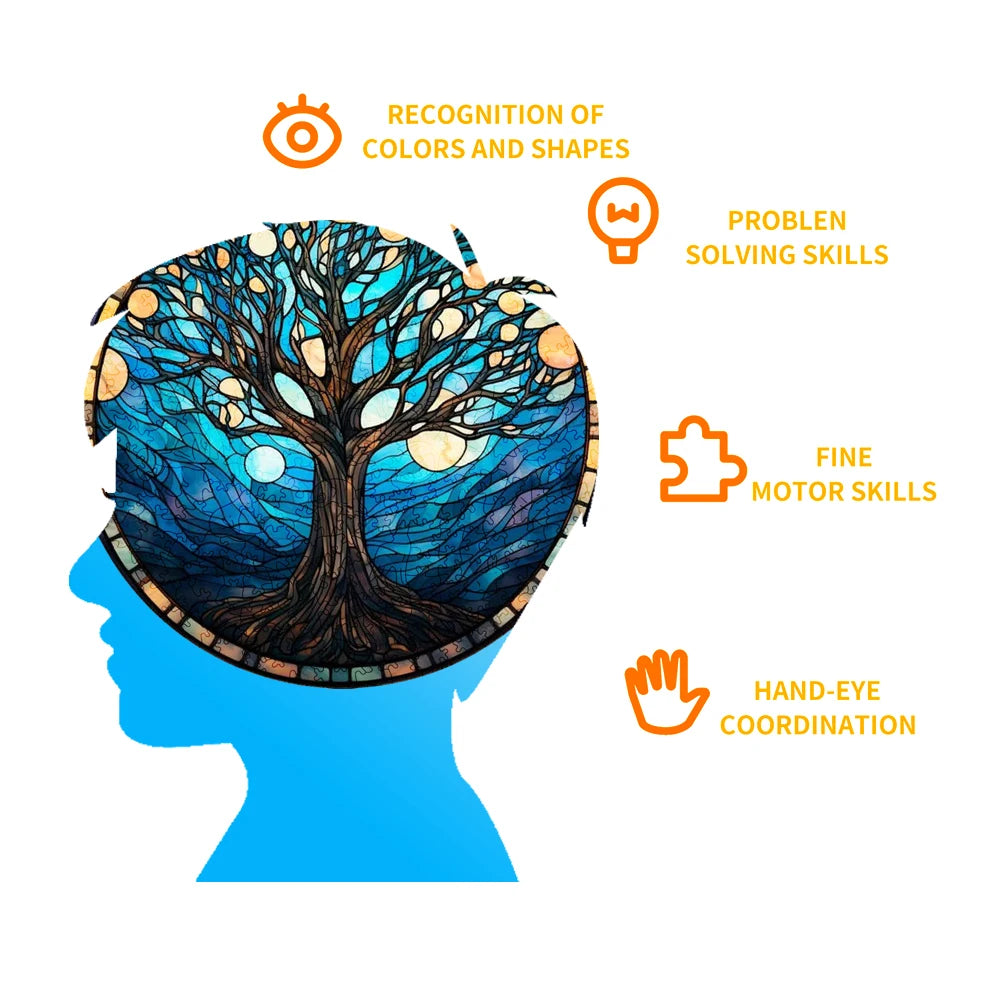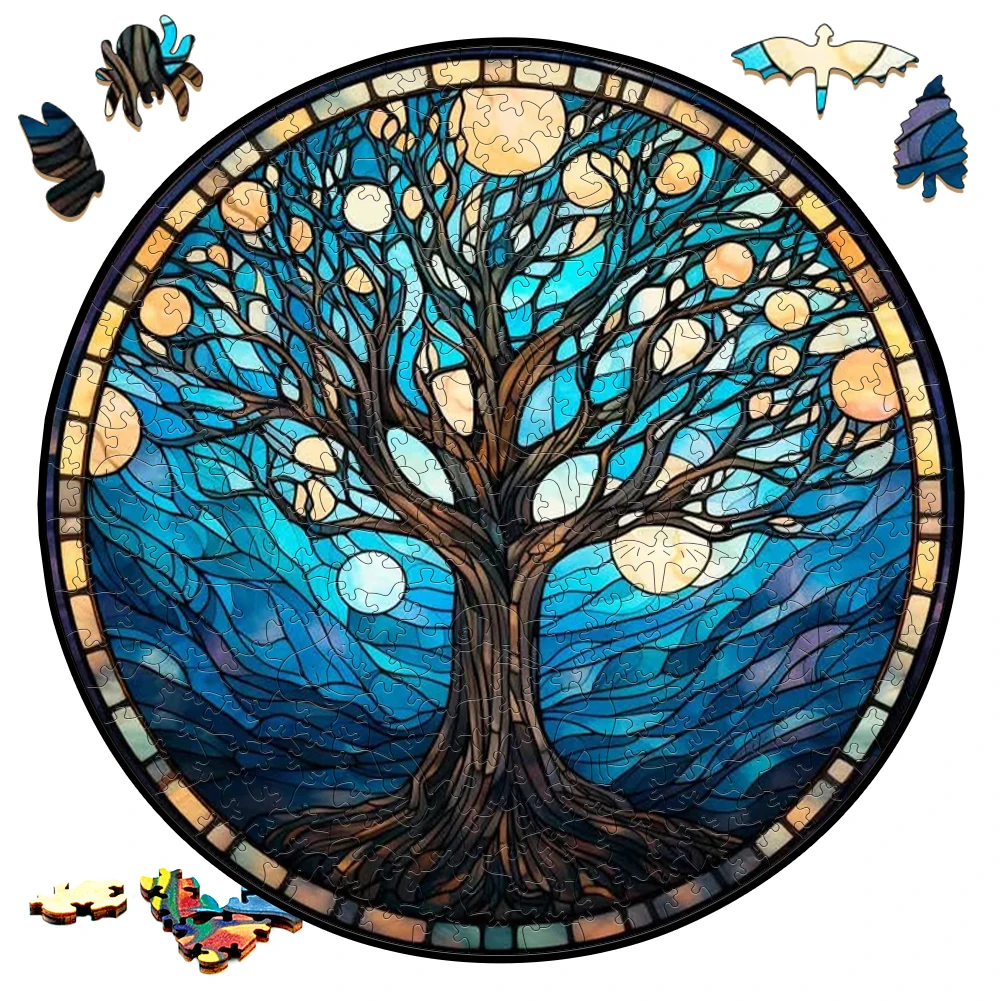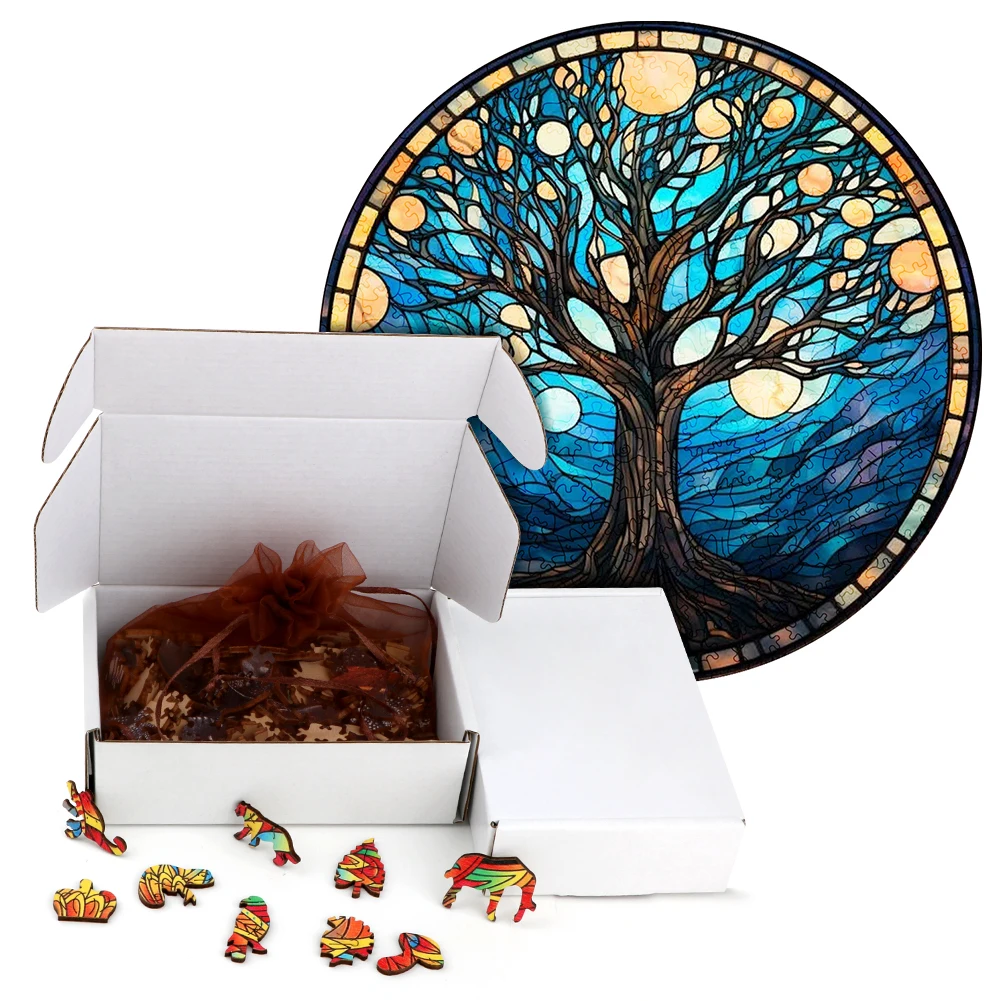 Wooden Puzzle Mandala Beautiful Wisdom Tree Surprise Toys 3D Wood Jigsaw Puzzles Creative Games Round Shaped Secret Puzzle Boxes