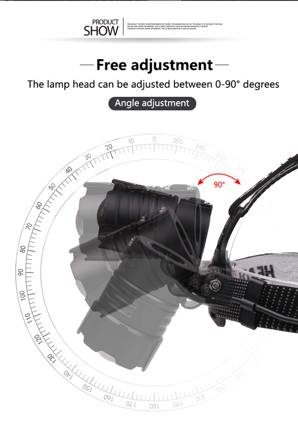 Xhp90.2 Led Zoom Headlamp Headlight Power Bank 3* 18650 Rchargeable Battery 7800mah XHP70.2 Head Lamp Flashlight Torch Litwod