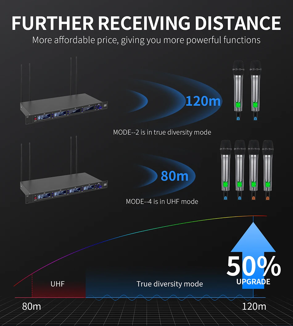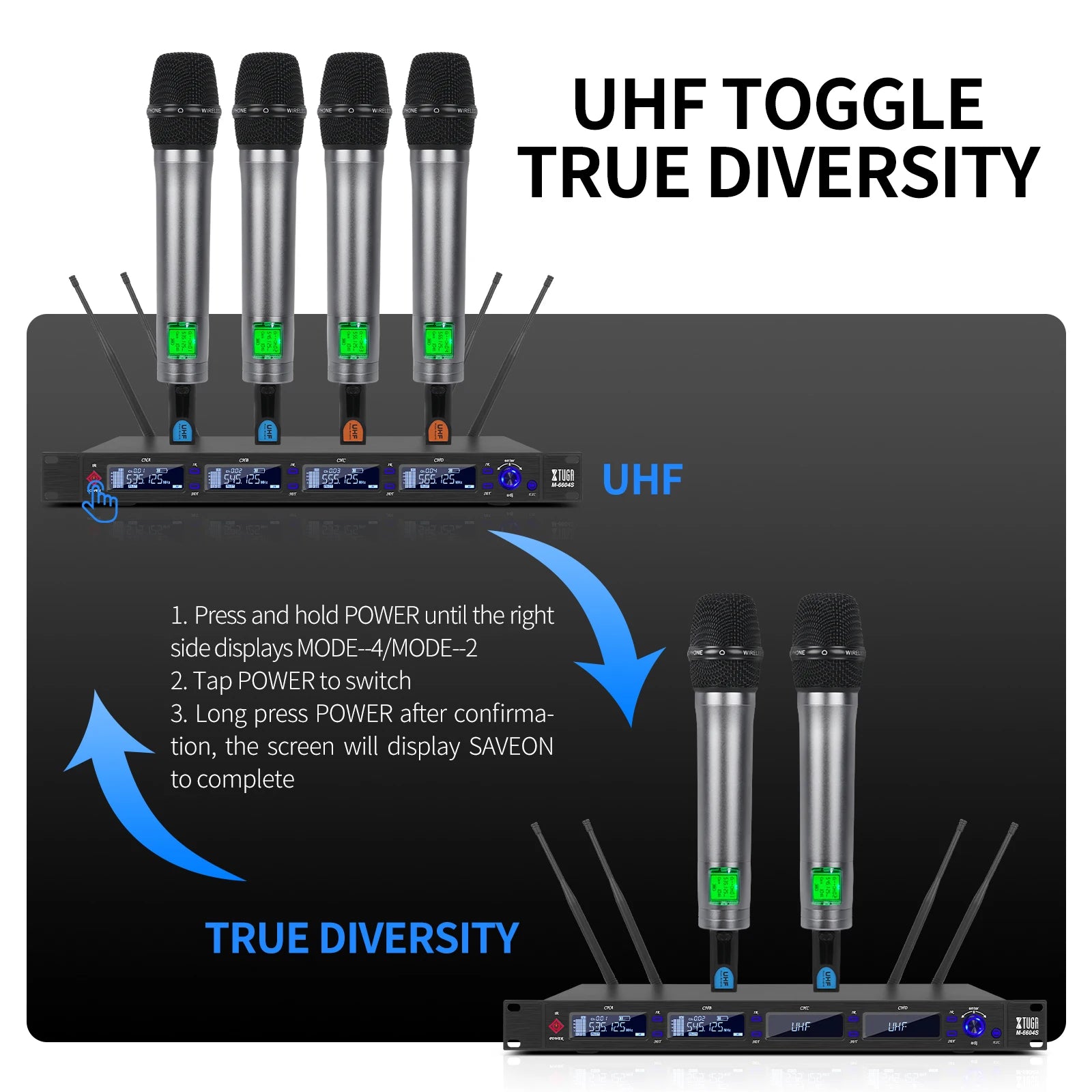 Xtuga M-6604S Dual Mode UHF zu True Diversity System 4 Handfunkmikrofon