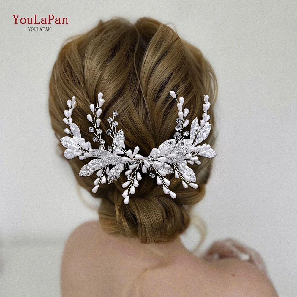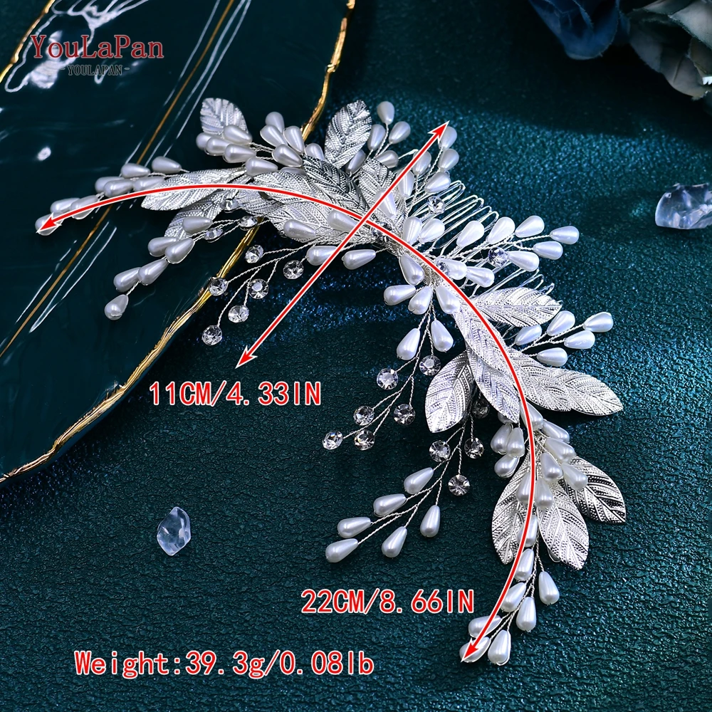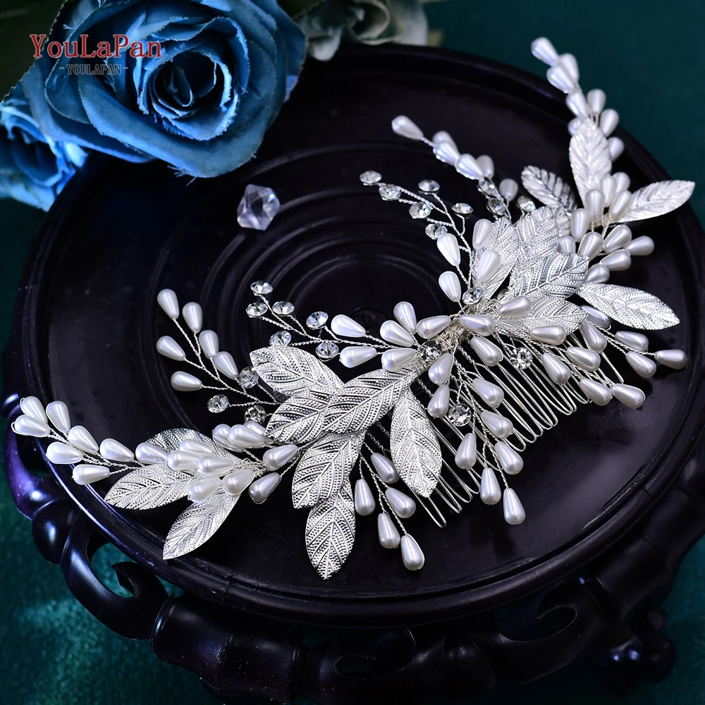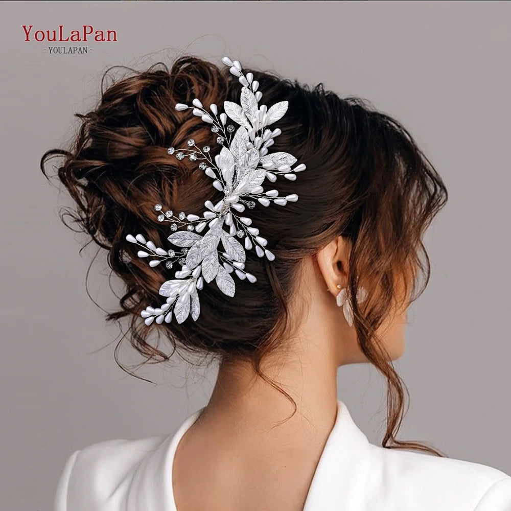 YouLaPan Wedding Headpiece Faux Pearl Headband Bridal Hair Accessories Rhinestone Headdress Alloy Leaf Hair Decoration HP680
