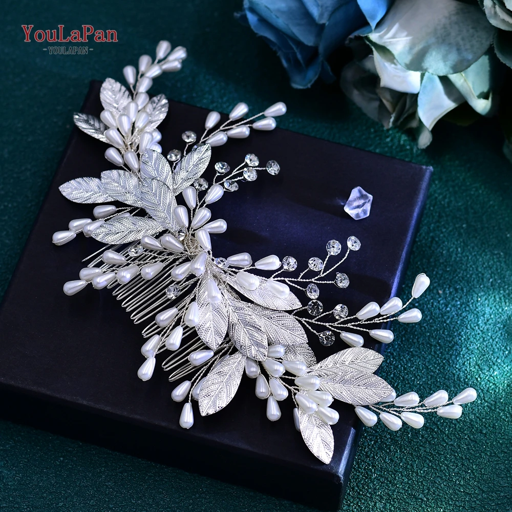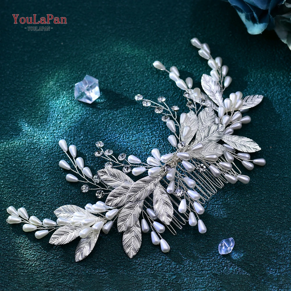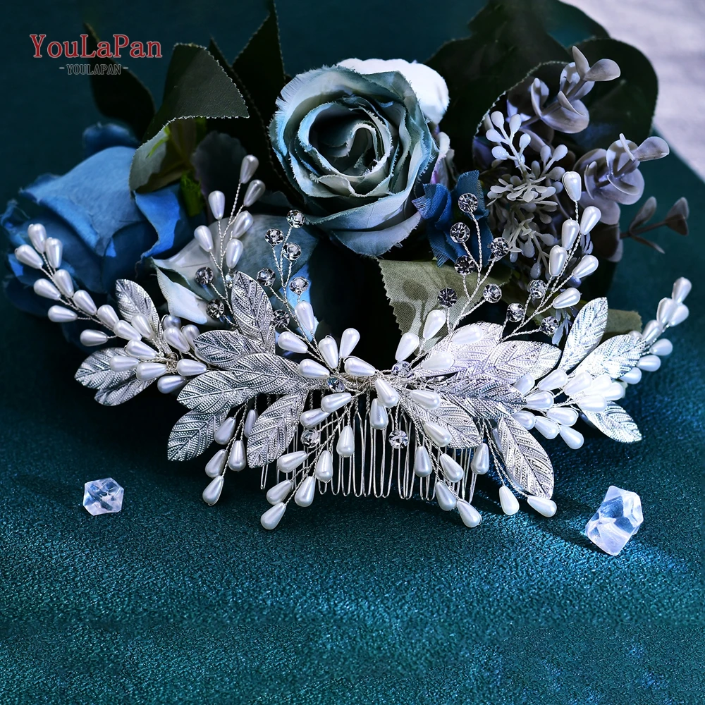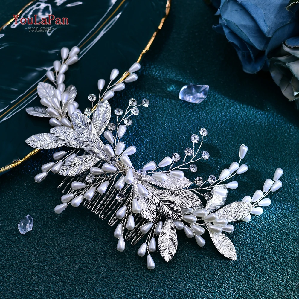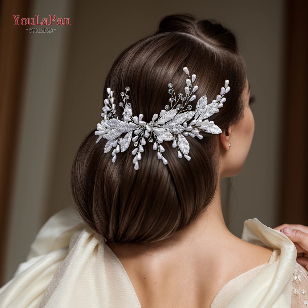 YouLaPan Wedding Headpiece Faux Pearl Headband Bridal Hair Accessories Rhinestone Headdress Alloy Leaf Hair Decoration HP680