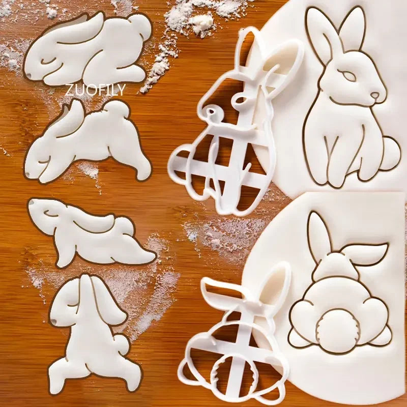 1/4pcs Cute Yoga Rabbit Easter Christmas Plastic Cookie Embossed Mold Fondant Cookie Cutter Bunny Biscuit Mold DIY Baking Tools