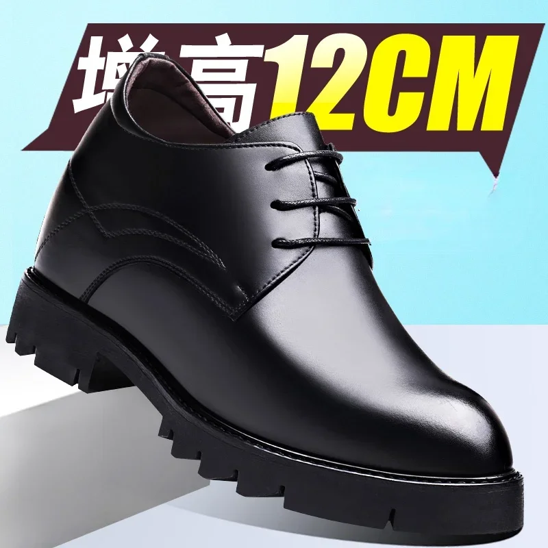 12cm genuine leather Men's Height-increasing Shoes Invisible Height-increasing Elevator Shoes Business Casual Men Shoes