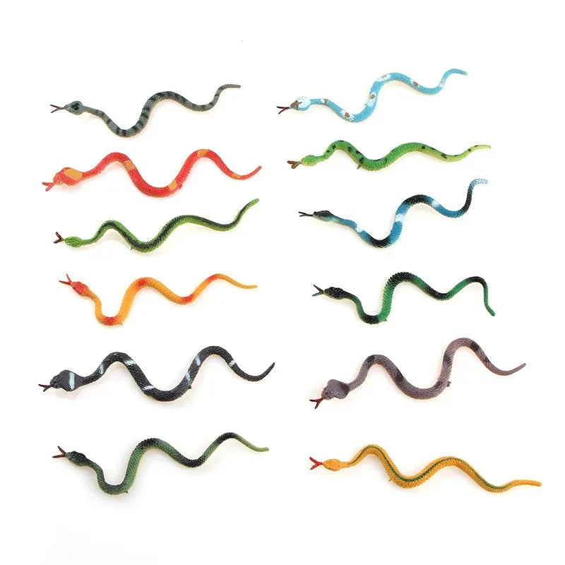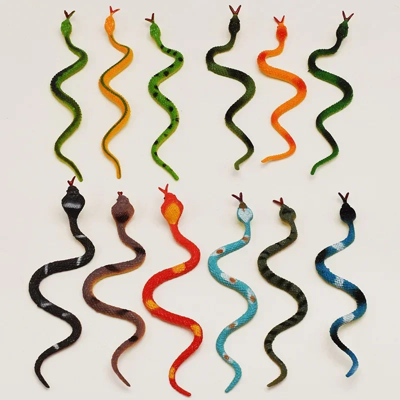 12Pcs High Simulation Toy Plastic Snake Model Funny Scary Snake Kids Gag Prank Funny Favor Toys Halloween Prank Prop for Decors