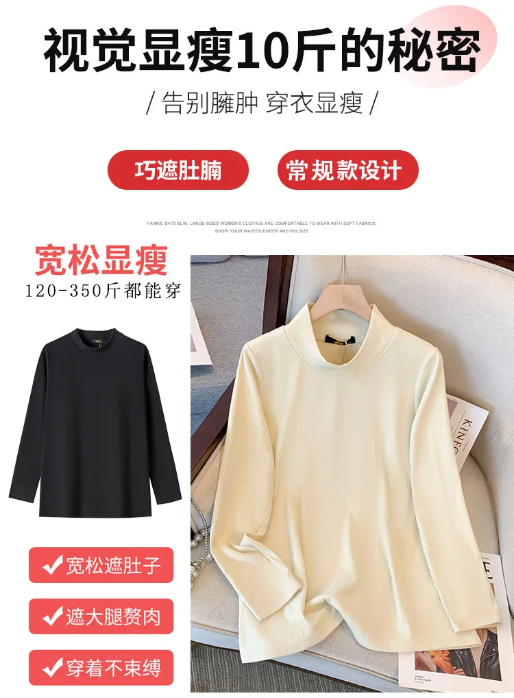 150Kg Plus Size Women's Bust 143 Autumn Winter Warm Long sleeved T-shirt Bottom Top 4XL 5XL 6XL 7XL 8XL
