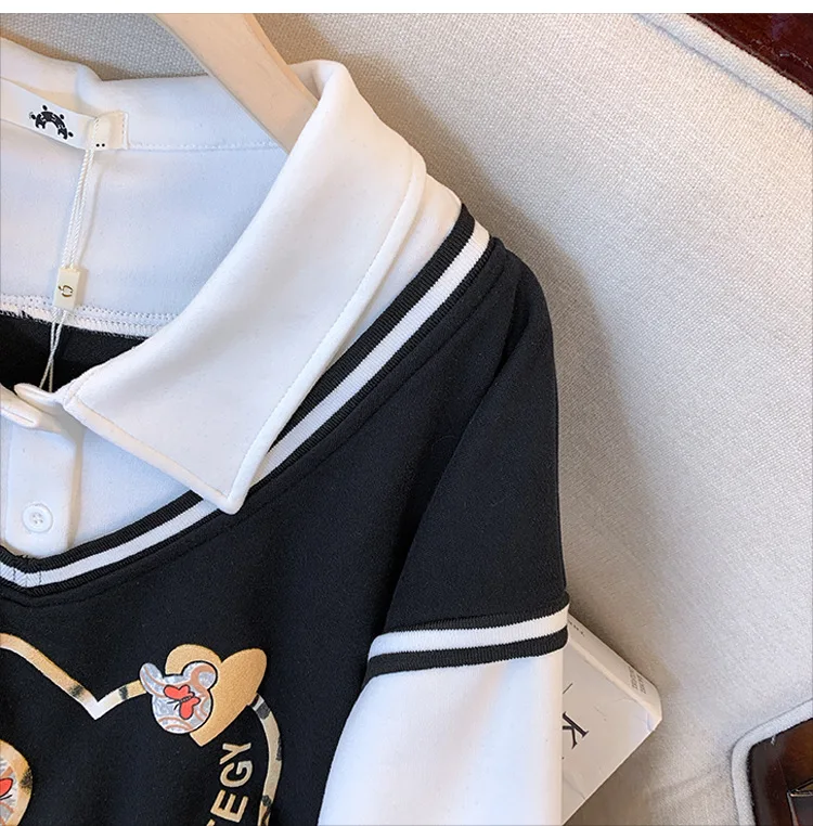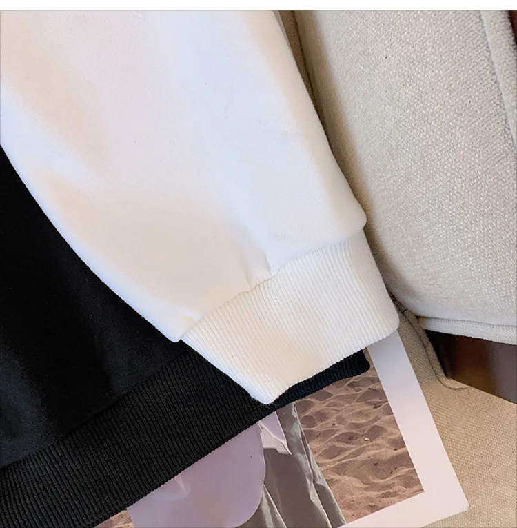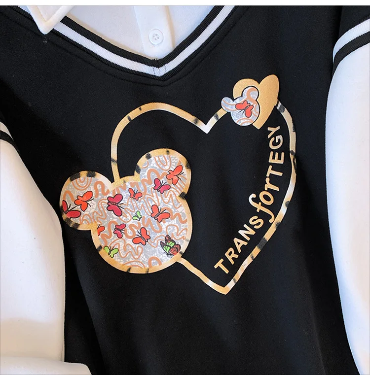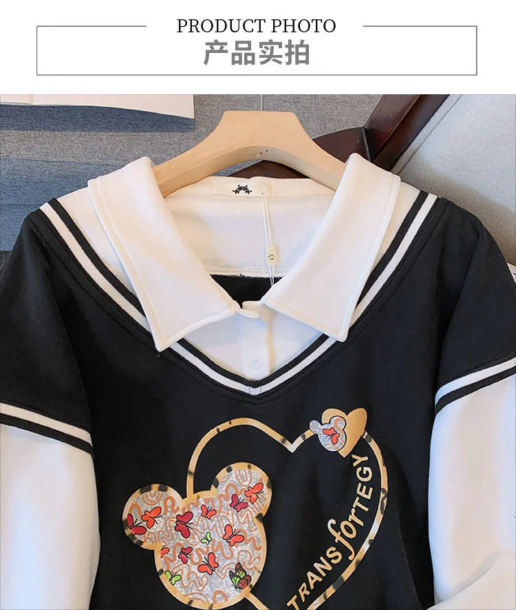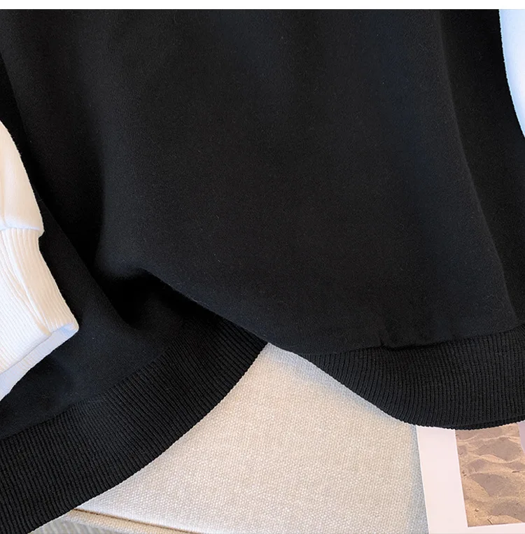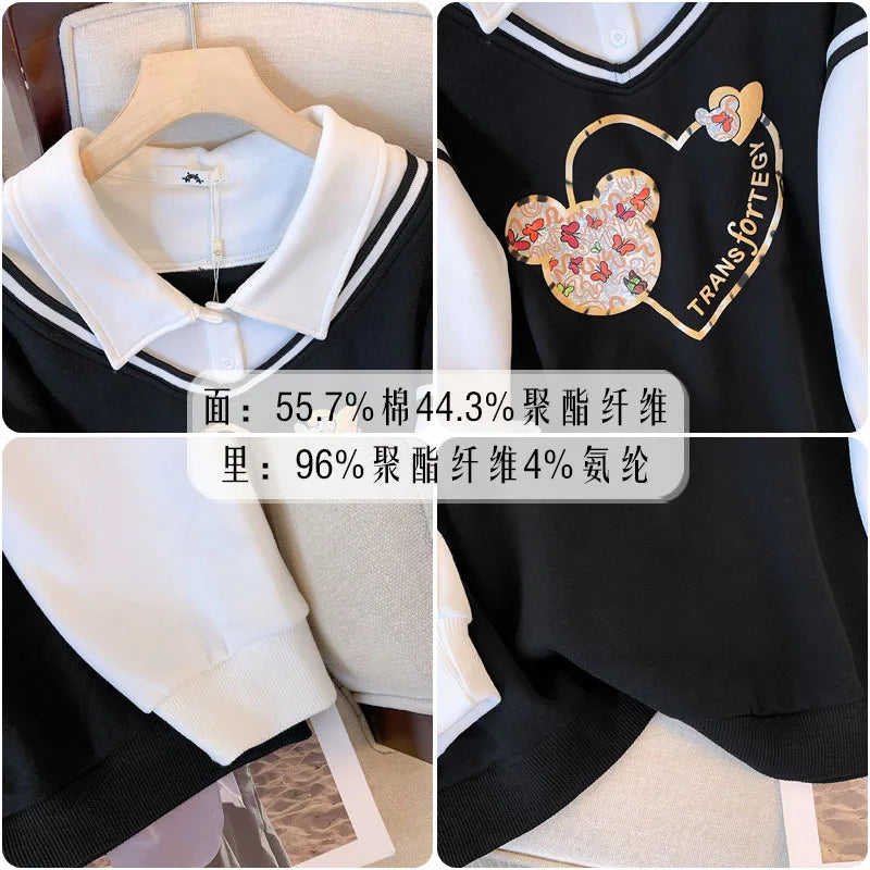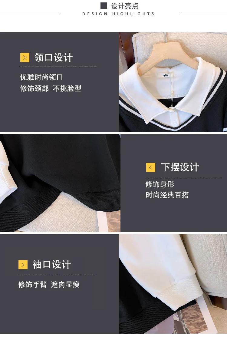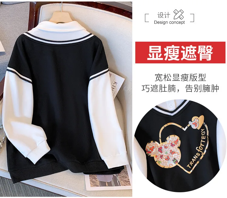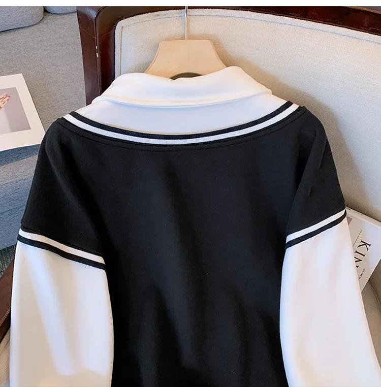 150Kg Plus Size Women's Bust 160 Autumn Loose College Style Patchwor Sweatshirt Poli Collar Top Black 6XL 7XL 8XL 9XL 10XL