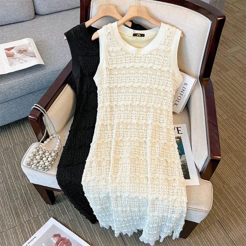 150Kg Plus Size Women's Summer Lace Knitted Suspender Dress Bust 130cm 5XL 6XL 7XL 8XL High Stretch Outside Dress