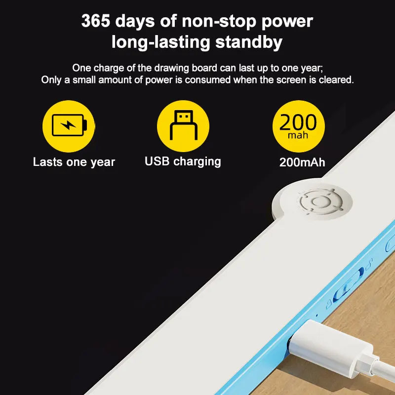 Touch the sensing area on the small blackboard lIghty at the top of the pen, which can clear the screen with one touch. The posture is coherent and more fficient.