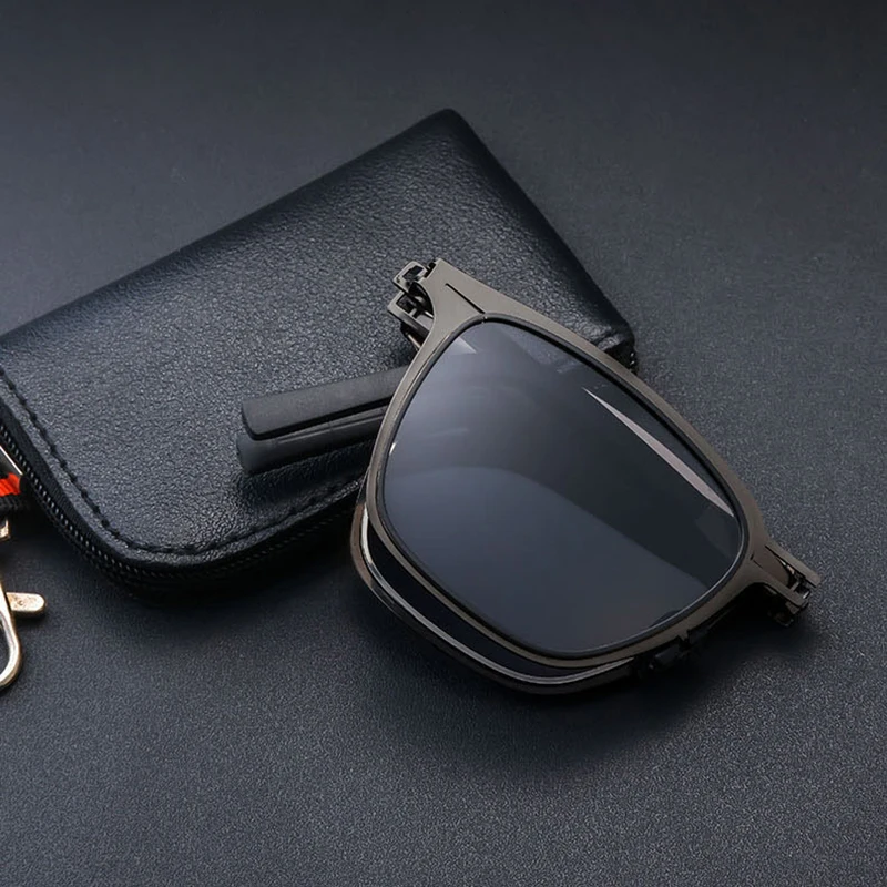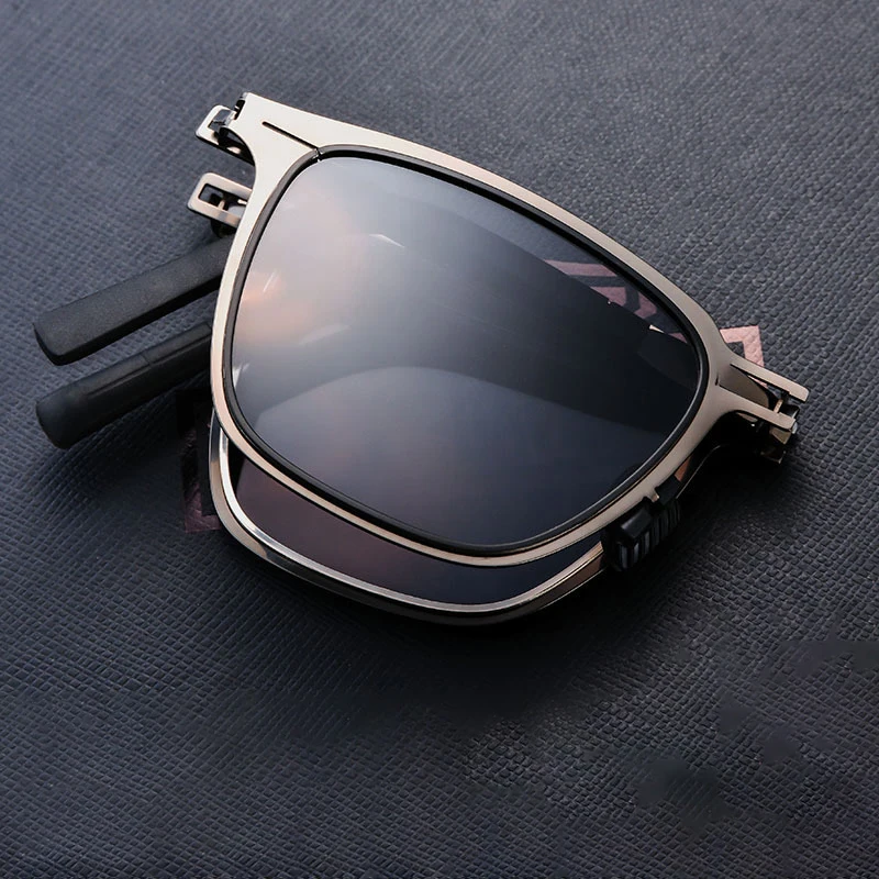 1PC Portable Fishing Polarized Retro Square Sunglasses HD Fashionable New Ultra Light Stainless Steel Folding Sunglasses