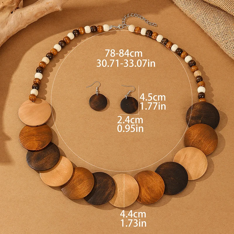 1set Vintage Wood Necklace African Wedding Party Dress Wooden Beads Necklace Earring Jewelry Sets For Women Party Gifts