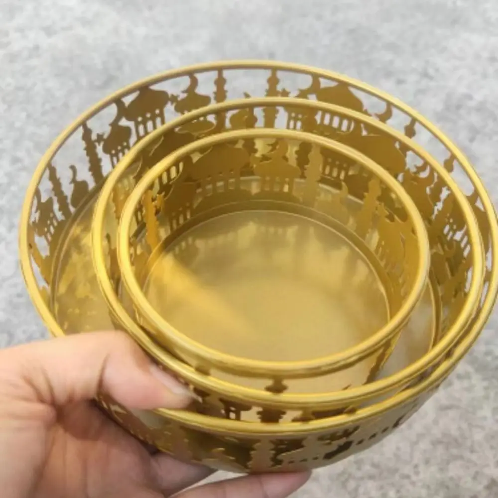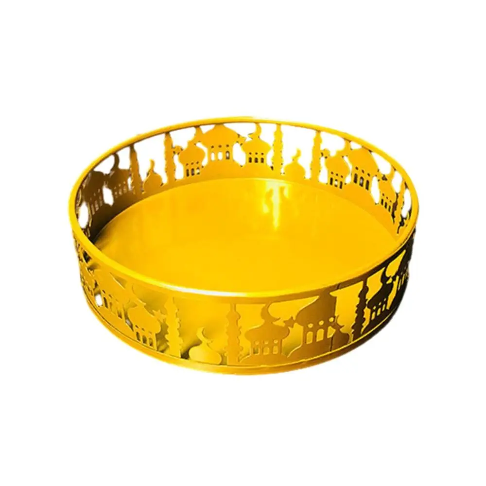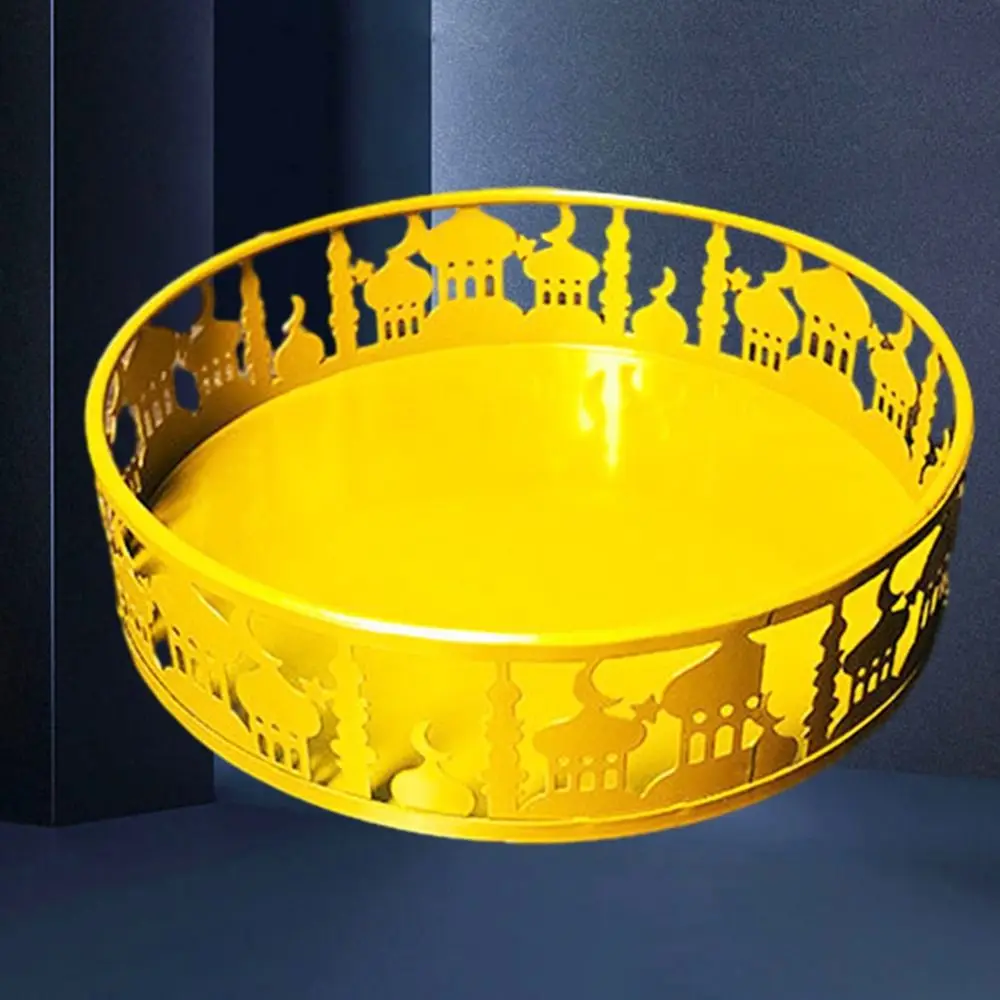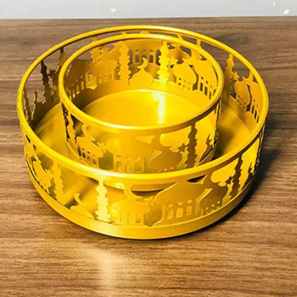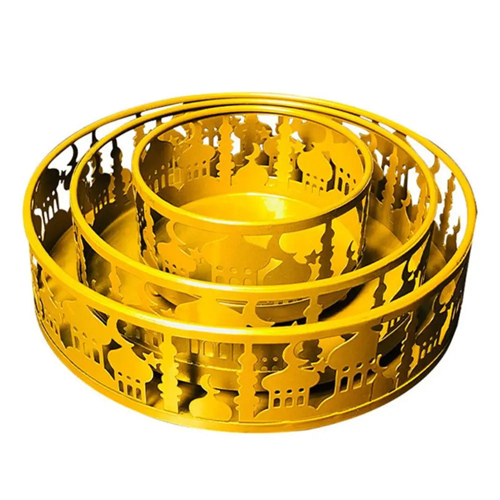 2/3Pcs Hollow Ramadan Tray Set Castle Round Eid Mubarak Plates Ornament Geometric Candy Pastry Food Tray Special Festivals