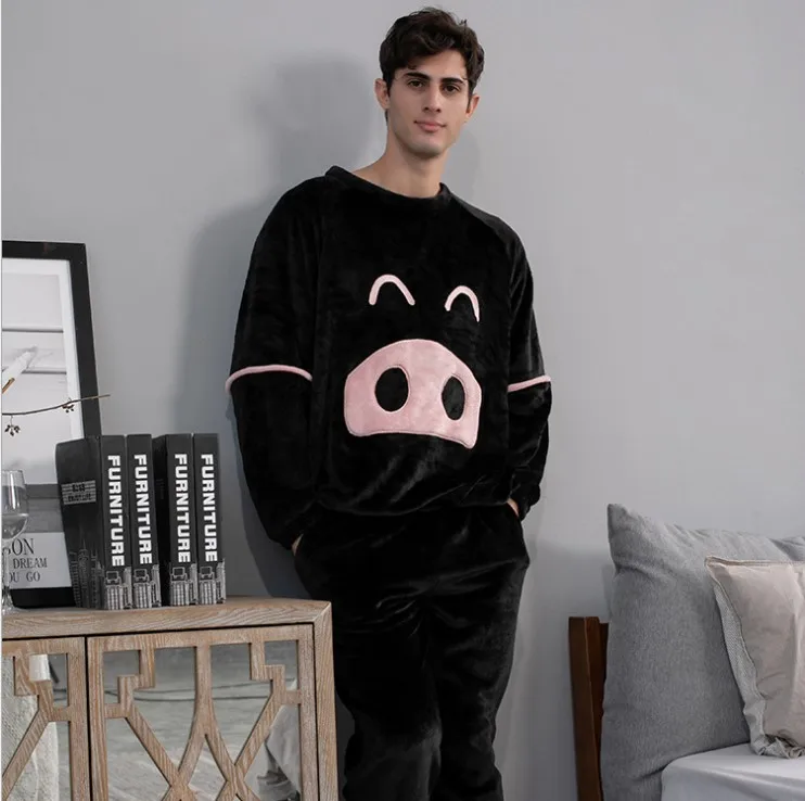 2 piece set Flannel couple Cartoon Style loose and thick to keep warm sleepwear women pajamas |