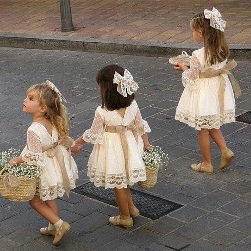 2019 Baby Girl summer clothing Pageant Party Lace Princess Dress Wedding Dresses Gold waistband for Kid clothes toddler Children
