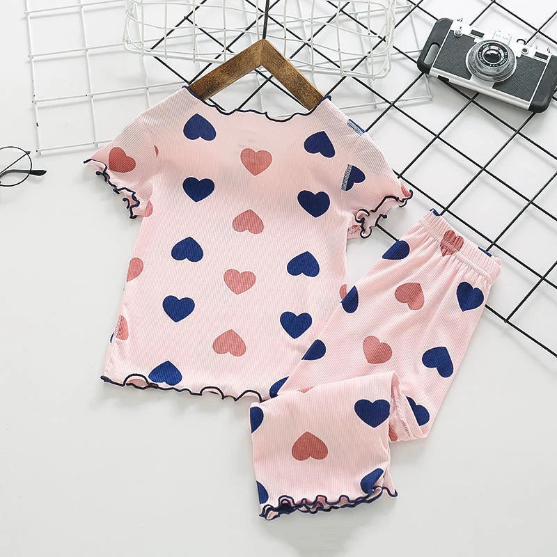 2022 Summer Children's Pajamas Sets Love Pijamas for Girls Air-conditioning Clothes Toddler Sleepwear Kids Home Clothing Sets