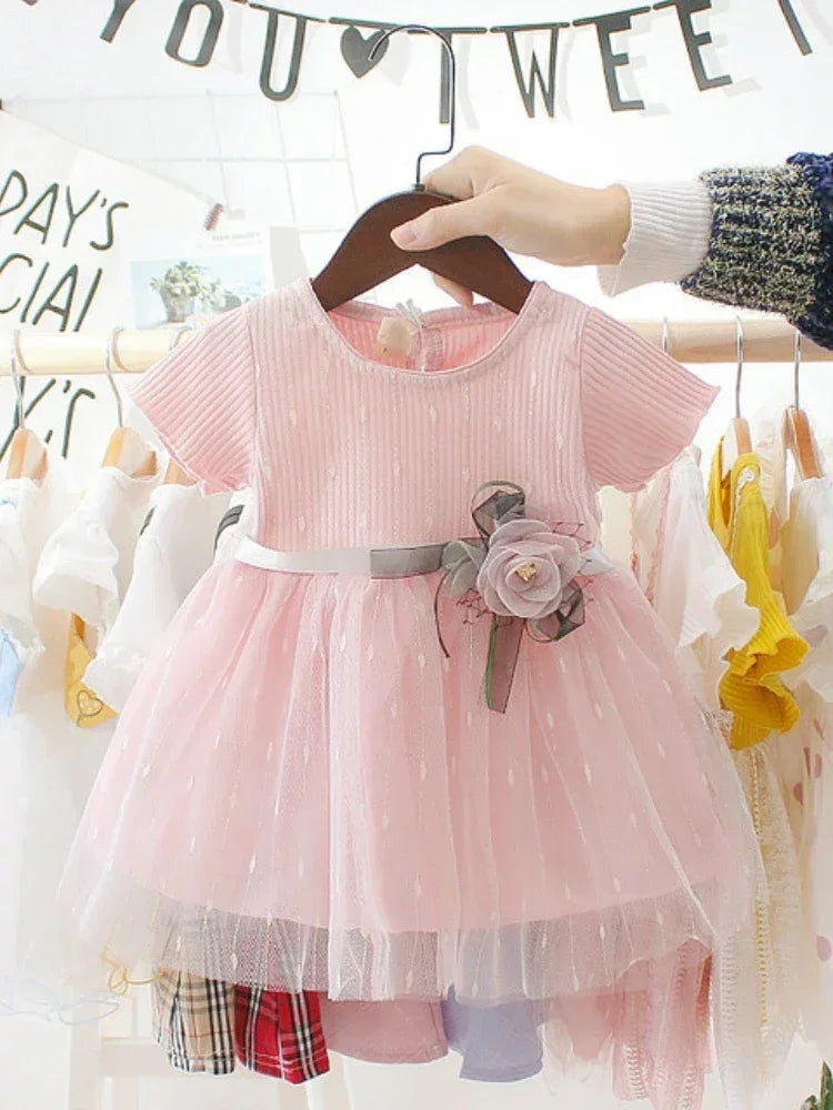 2023 Summer Baby Girl Clothing Newborn Infant Girls Dress Patchwork Mesh Princess Dress Toddler Kids Birthday Party Clothes