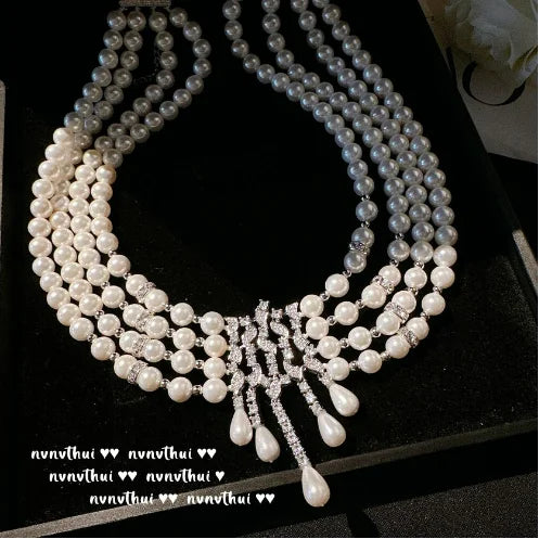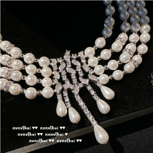 2023 Women Morning Dew Water Drops Honeycomb Gem Multilayer Pearl Necklace Tahiti Seawater Mabei Pearl Zircon Earrings