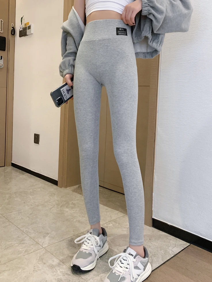 021 New Grey Thread Bottom Pants for Women's Spring and Autumn Outwear Thin Elastic Inner Wear Autumn Pants Winter High Waist Slim