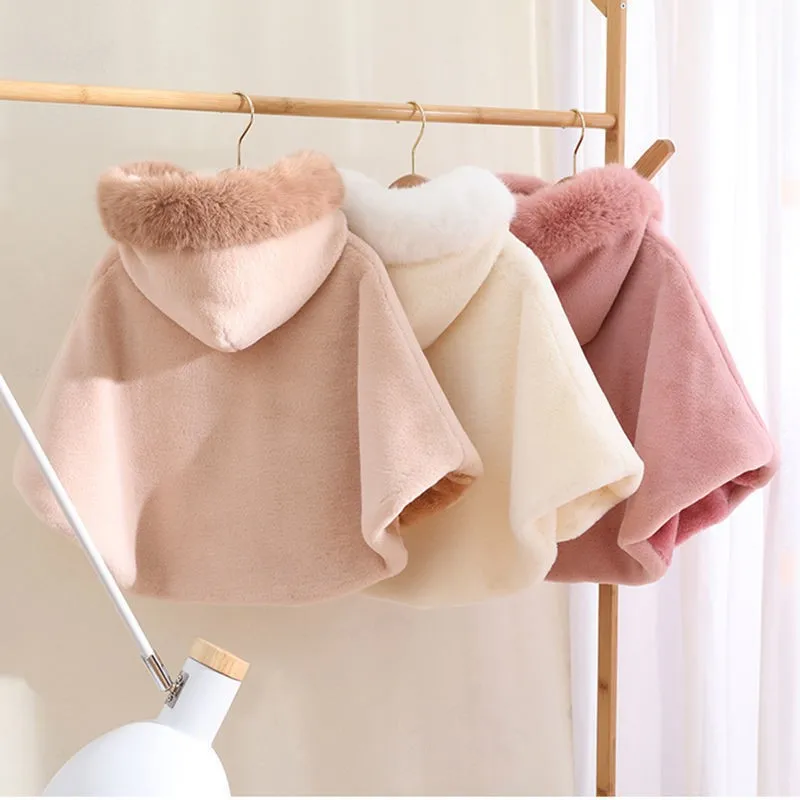 2024 Baby Kids Solid Color Cloak Fashion Cloak Newborn Autumn Winter Thick Warm Baby Girl Clothing Girls Causal Hooded Coat