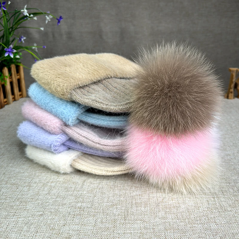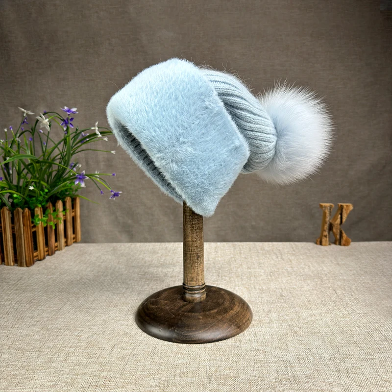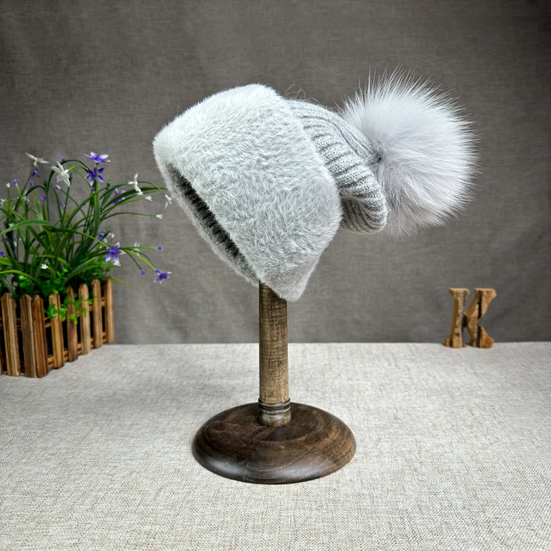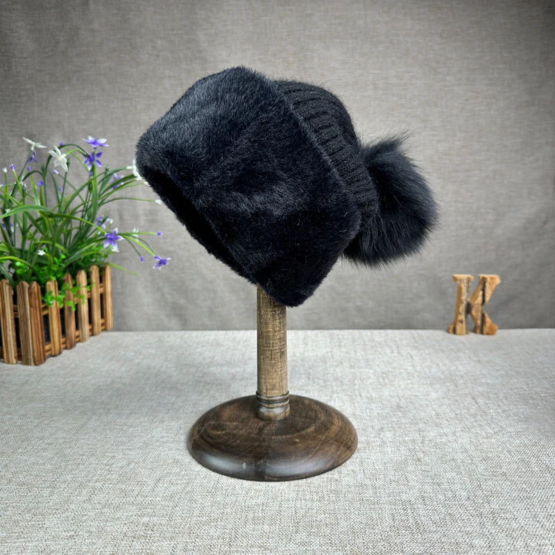2024 new women's thickened Korean version fox fur ball knitted hat women's autumn and winter rabbit fur plush woolen hat trend