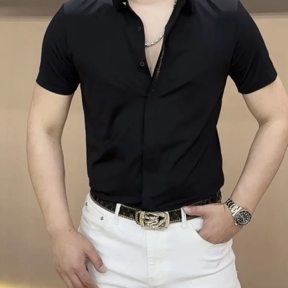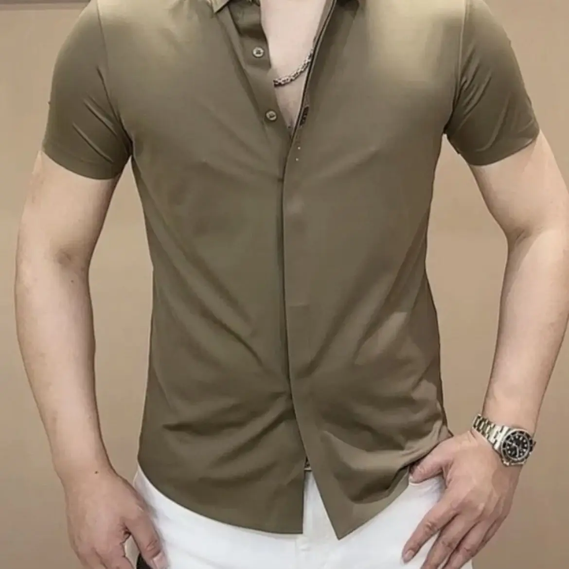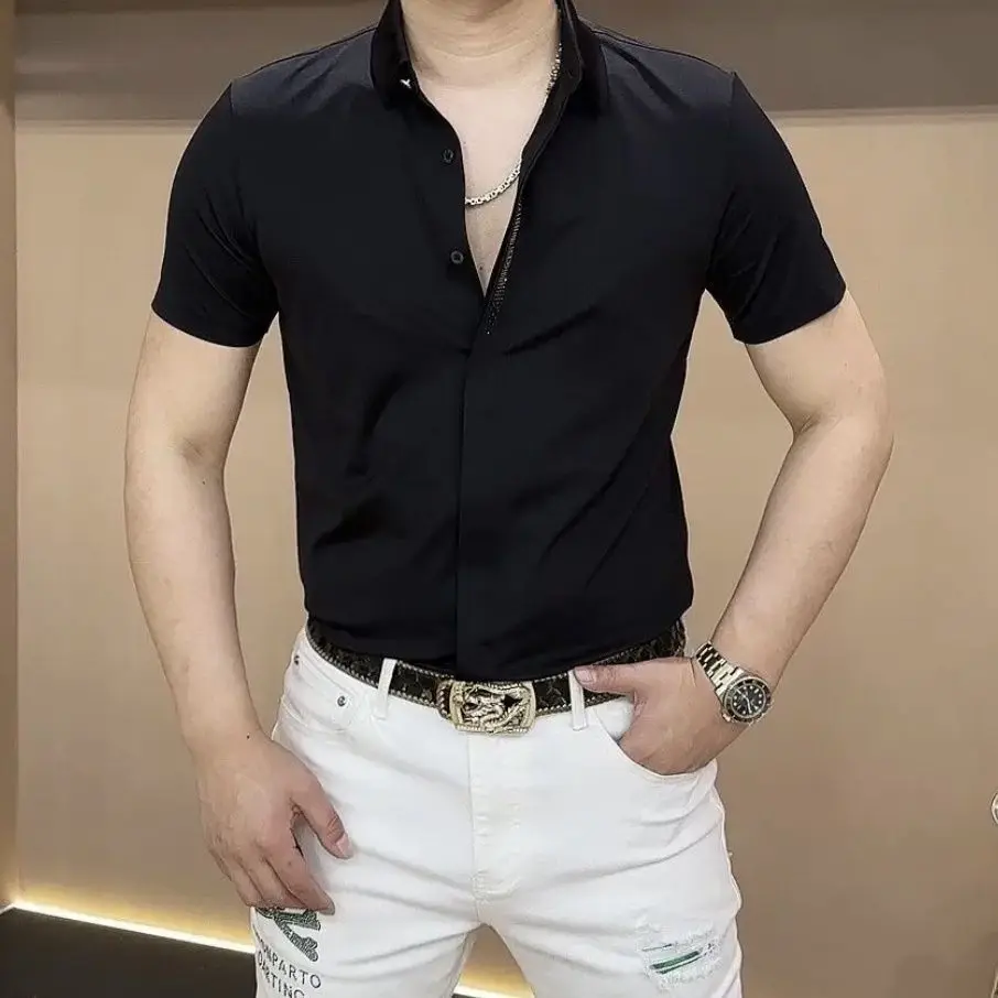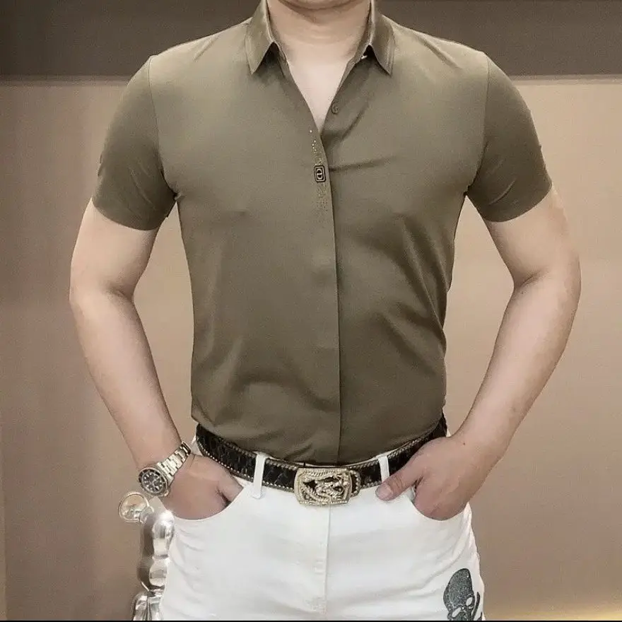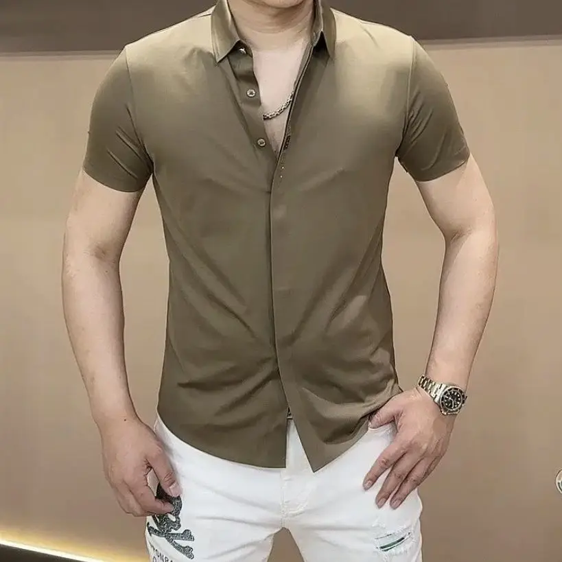 Summer Fashion Handsome Trendy Men's Polo Collar Solid Color Short Sleeved Shirt - mon