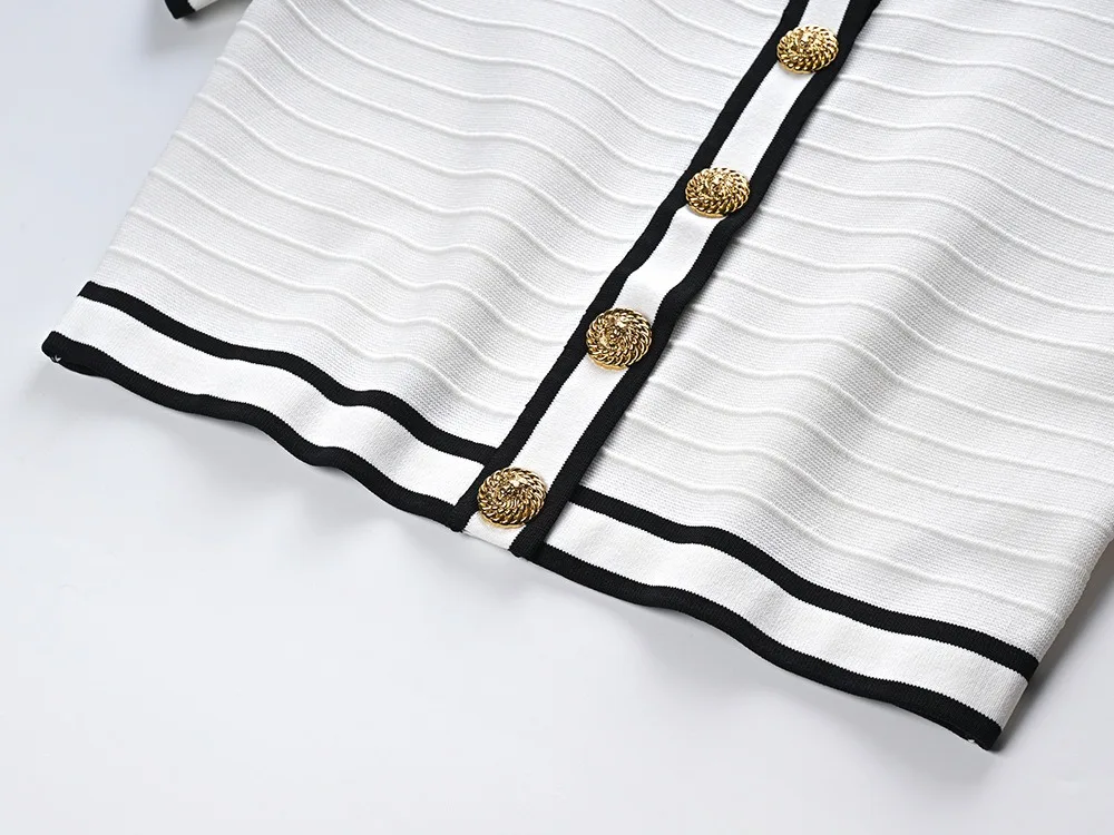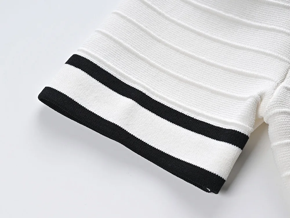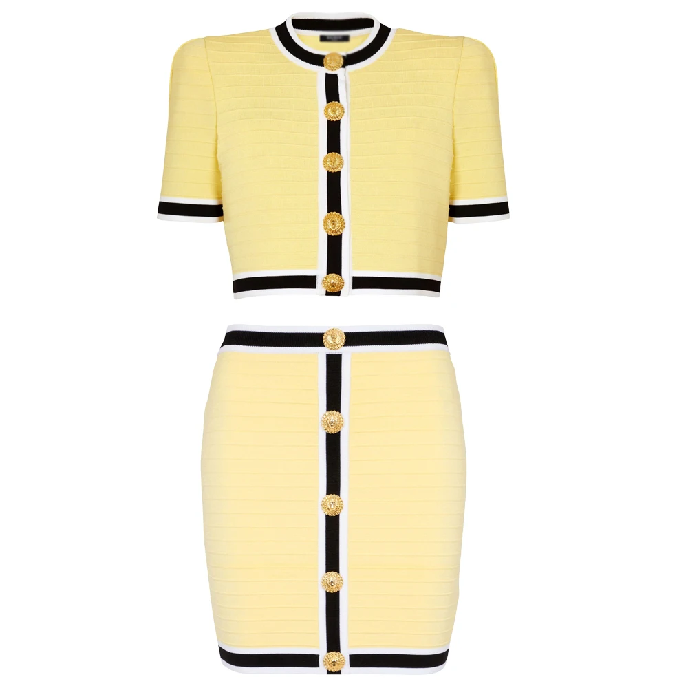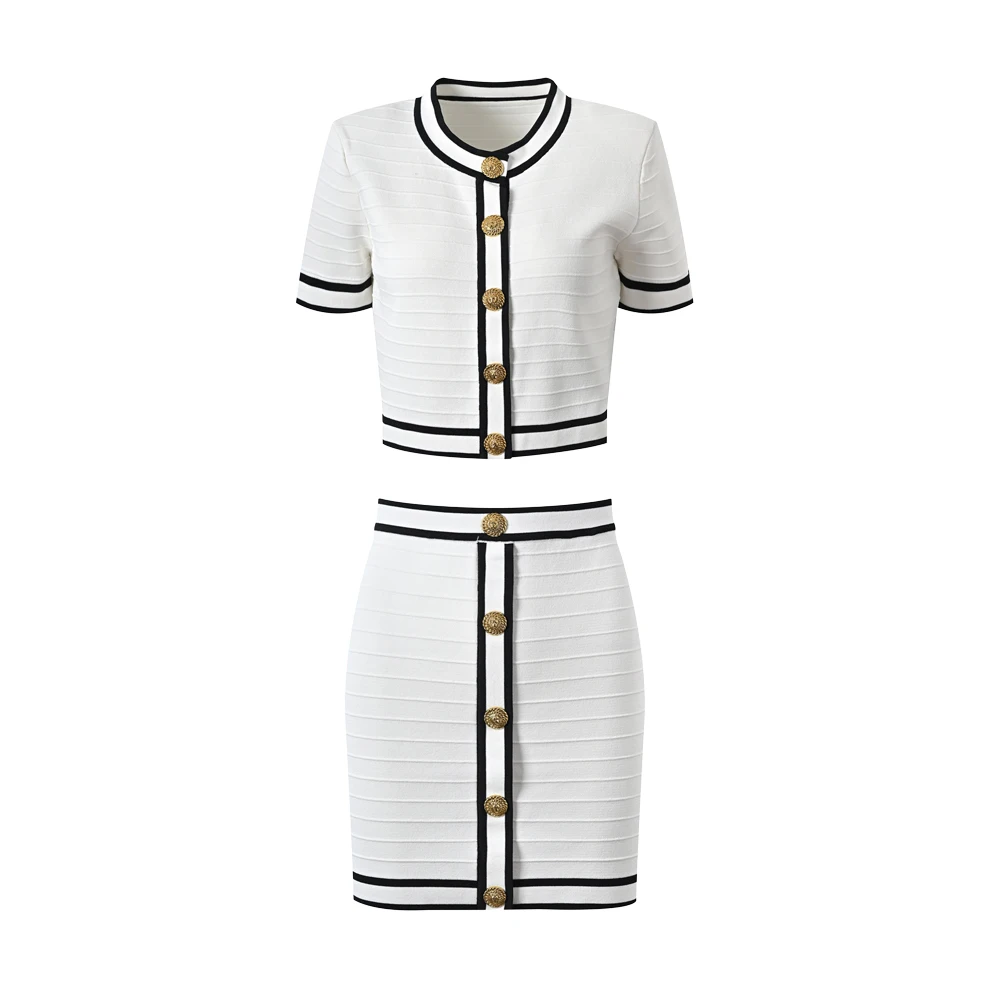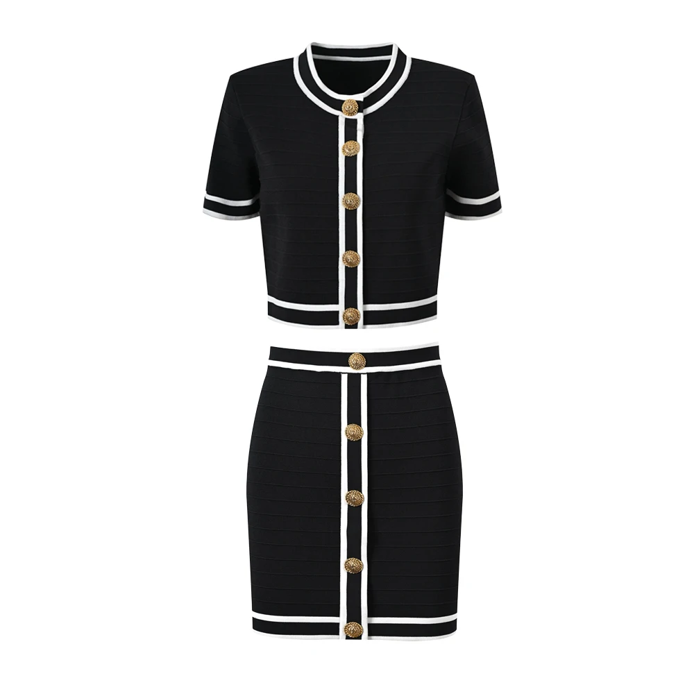2024 Summer High Quality Sheath Knitting 2PCs Skirt Sets Short Length Women Elegant Lady Twin Suits
