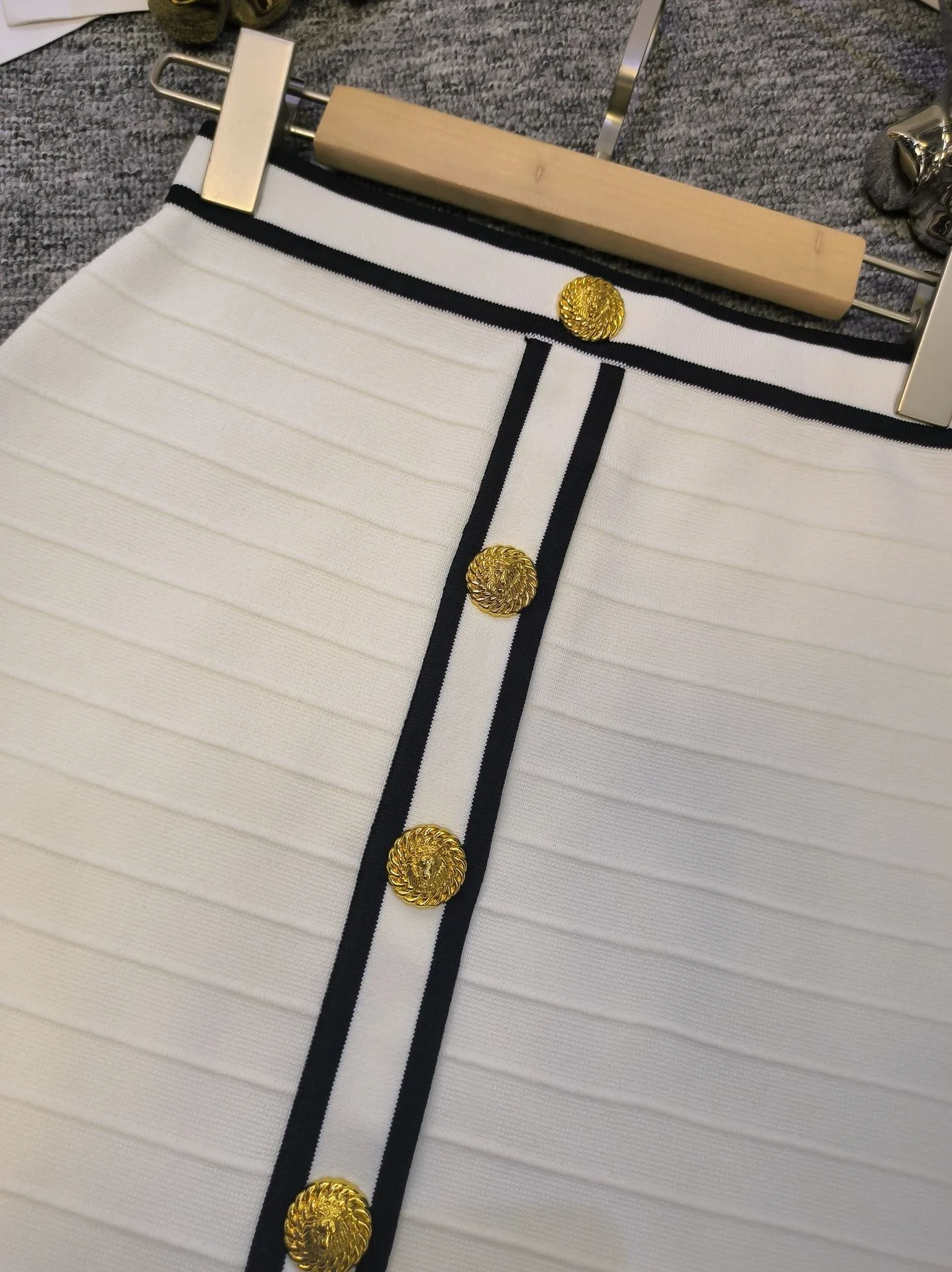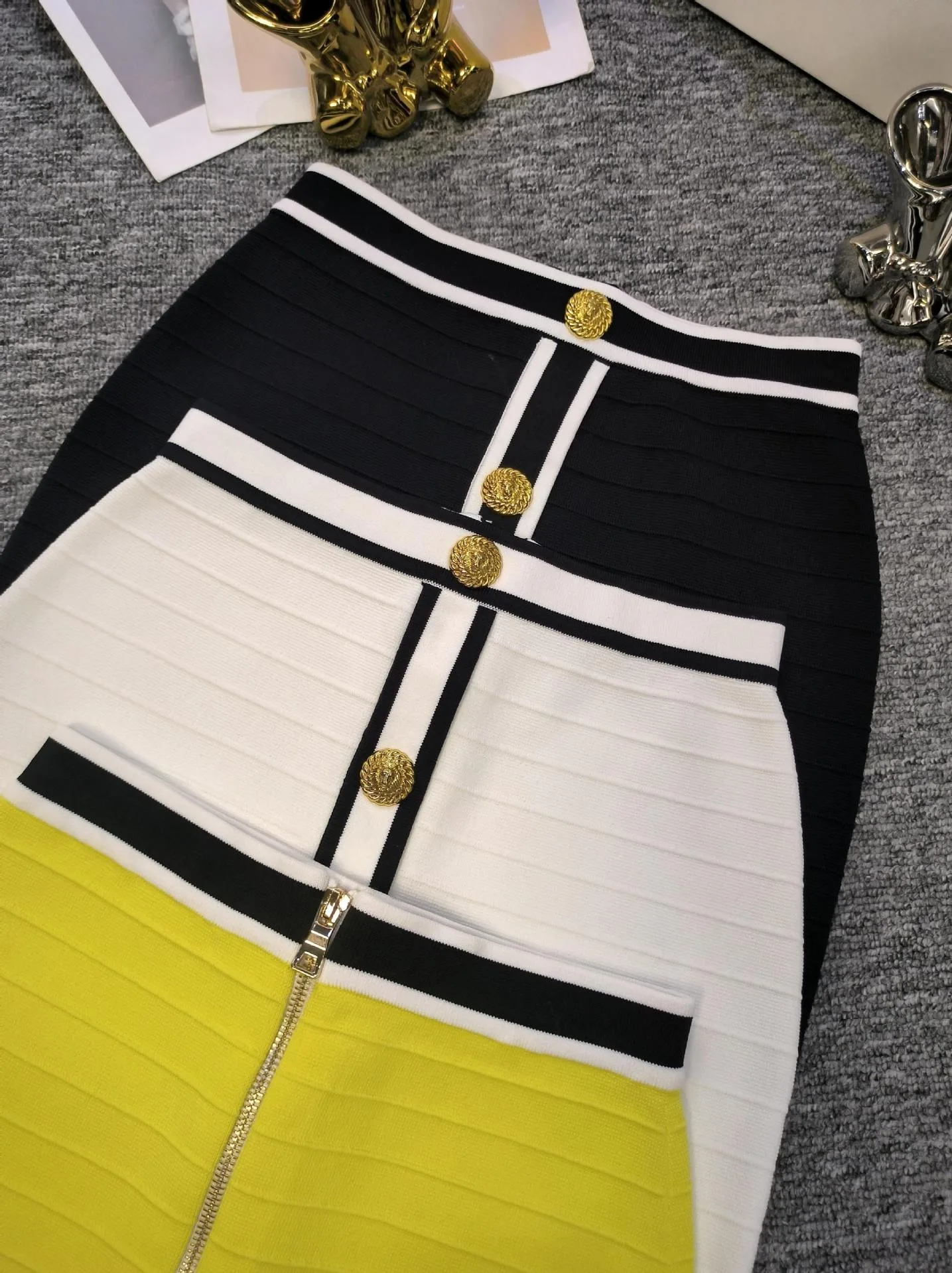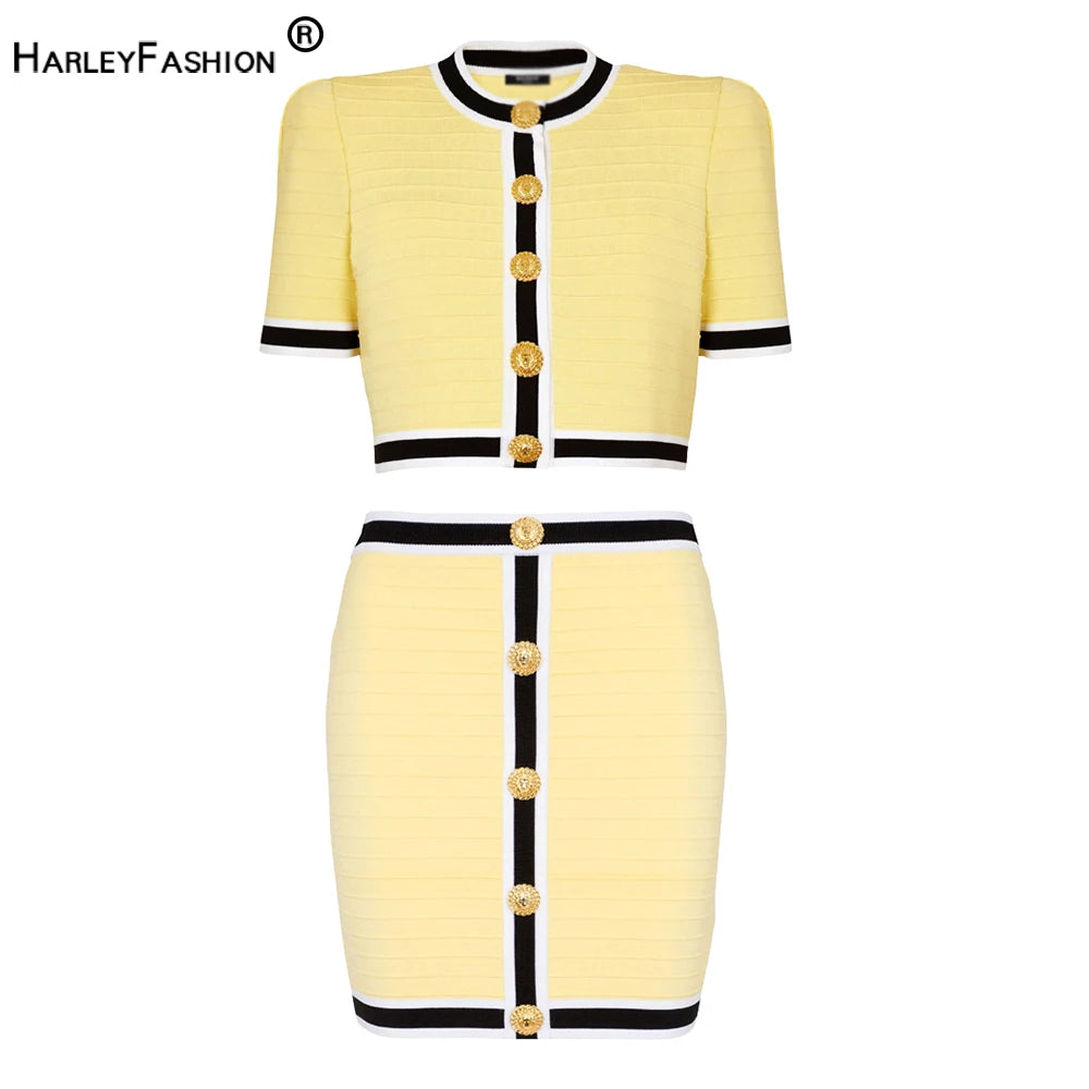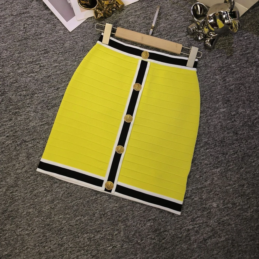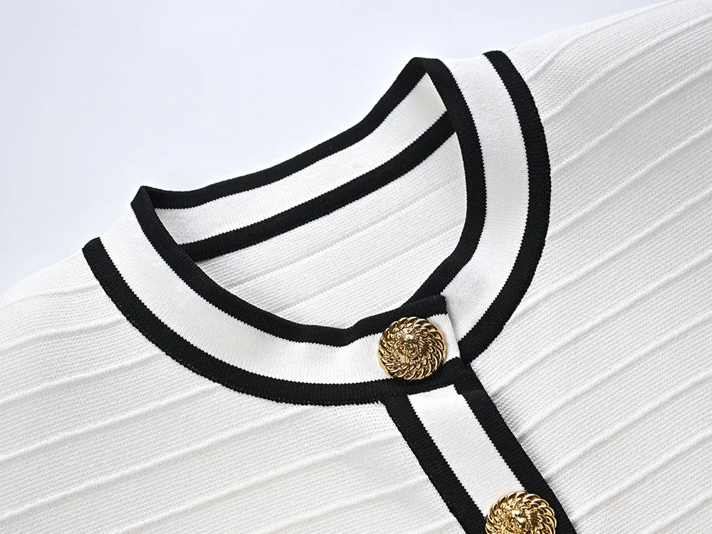 2024 Summer High Quality Sheath Knitting 2PCs Skirt Sets Short Length Women Elegant Lady Twin Suits