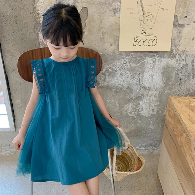 2024 Summer New 2 3 4 5 6 7 8 9 10 12 Years Children Lace Patchwork Cotton Embroidery Sleeveless Loose Dress For Kids Baby Girl