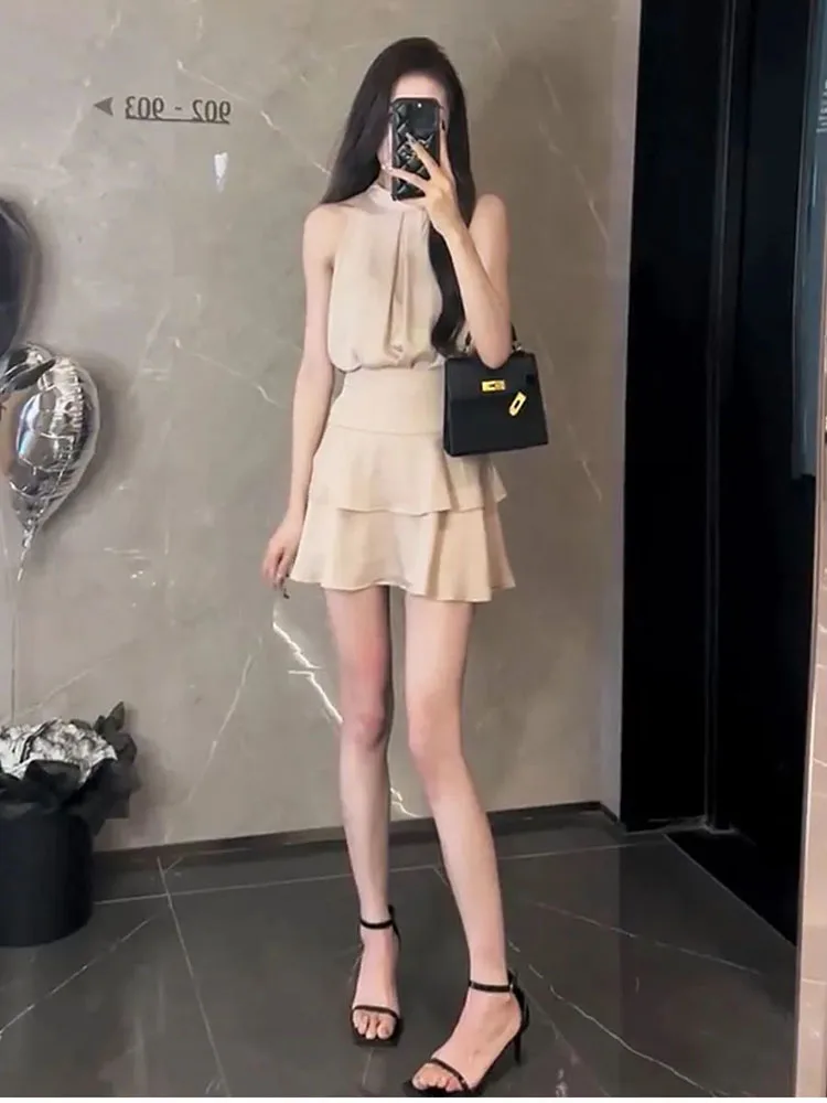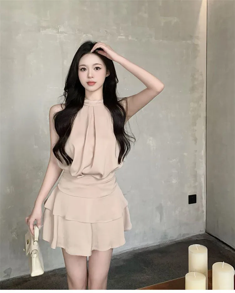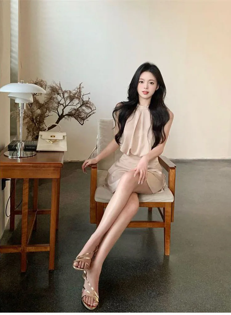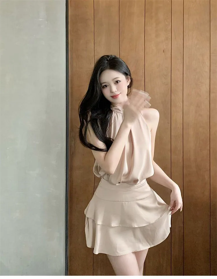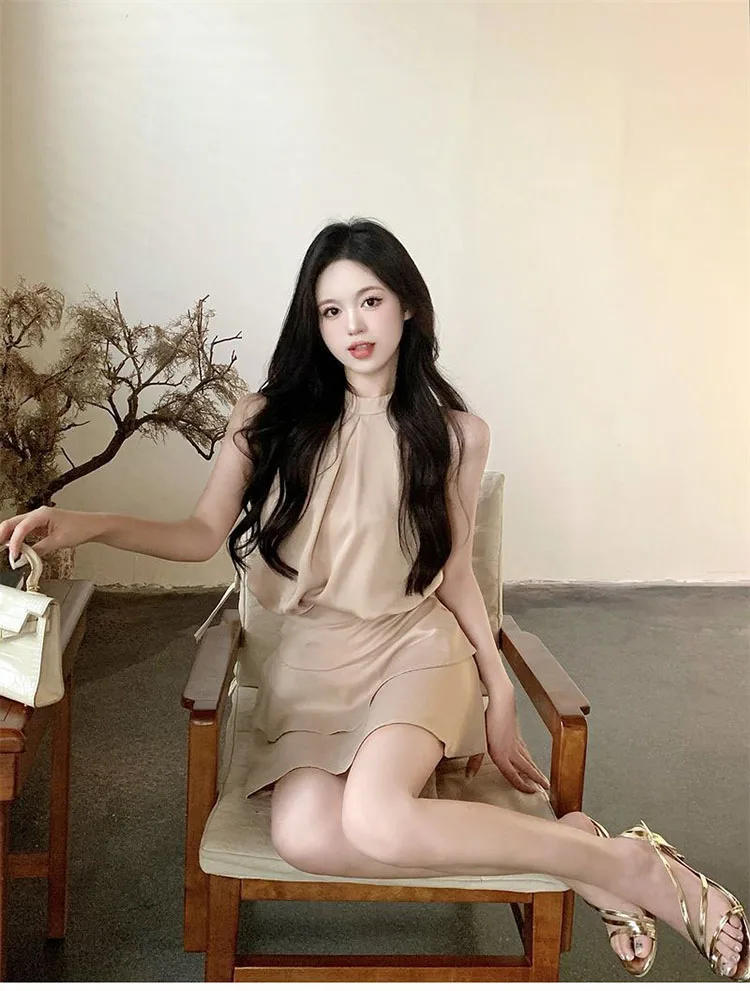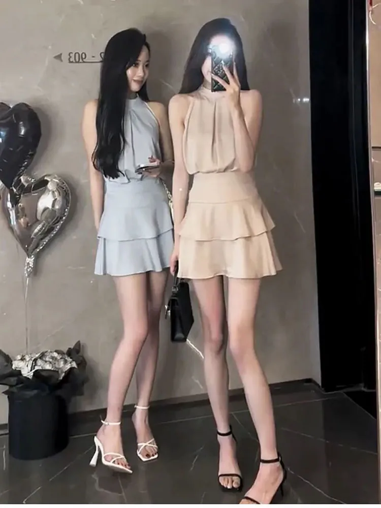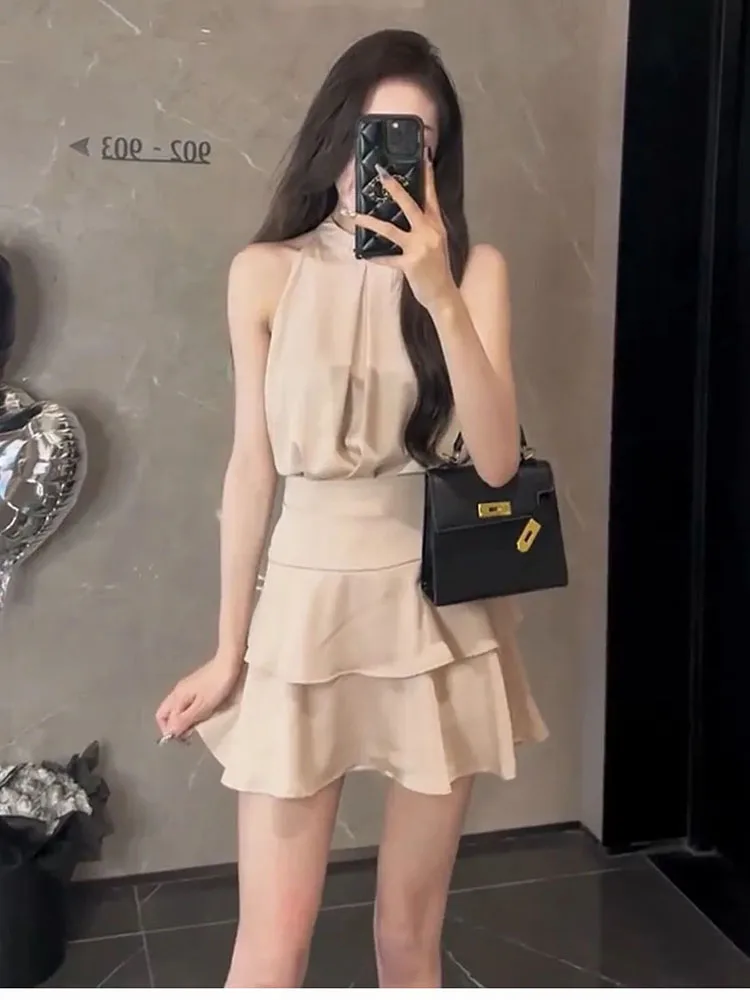 2024 Summer Satin 2 Piece Skirt Set Women Korean Sleeveless Y2k Crop Tops Shirt + Ruffles Mini Skirt Female Elegant Women's Sets