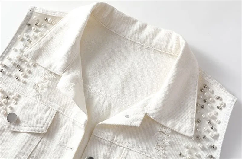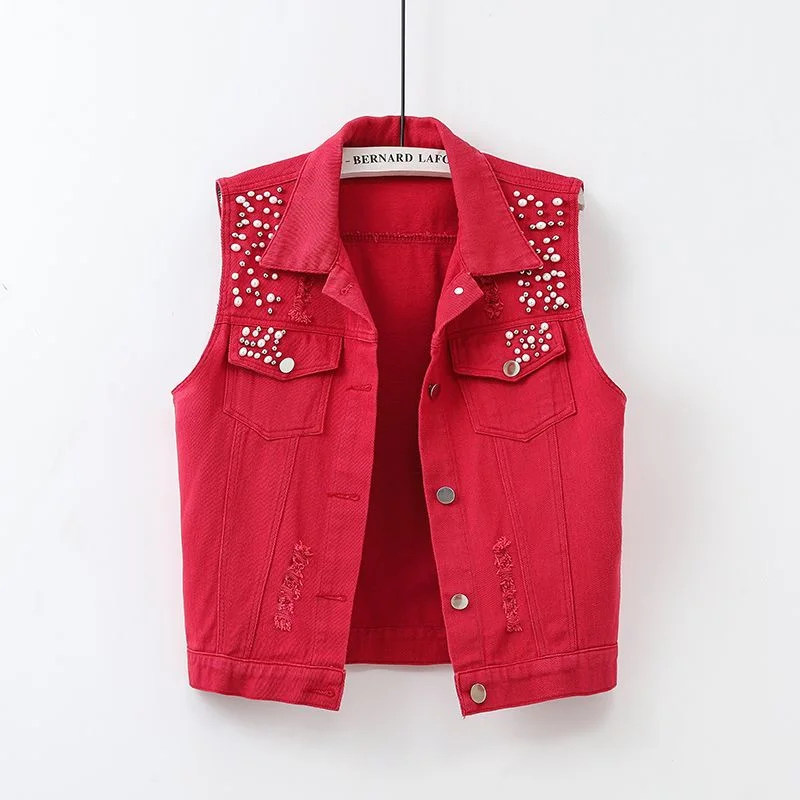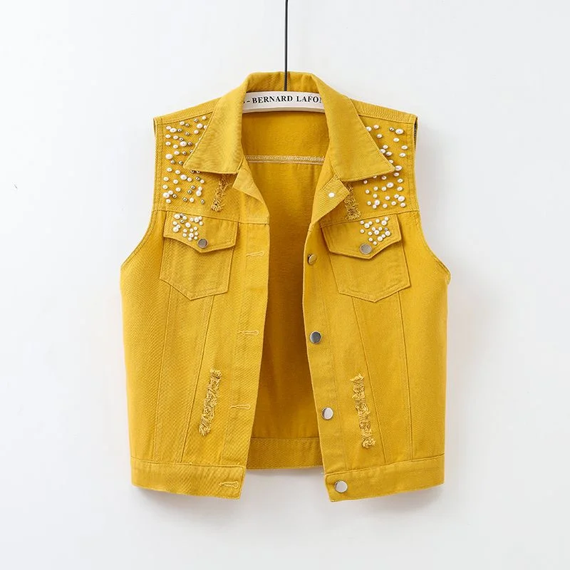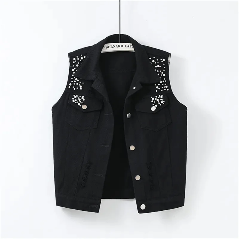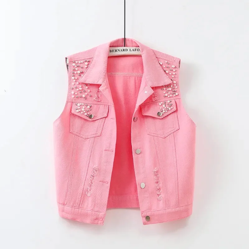 2025 clothes New Vintage Hole Sleeveless Jean Waistcoat Short Jacket Female Outerwear Spring Autumn Denim Vest Women Clothes
