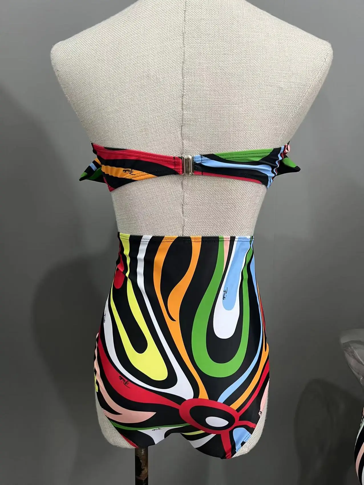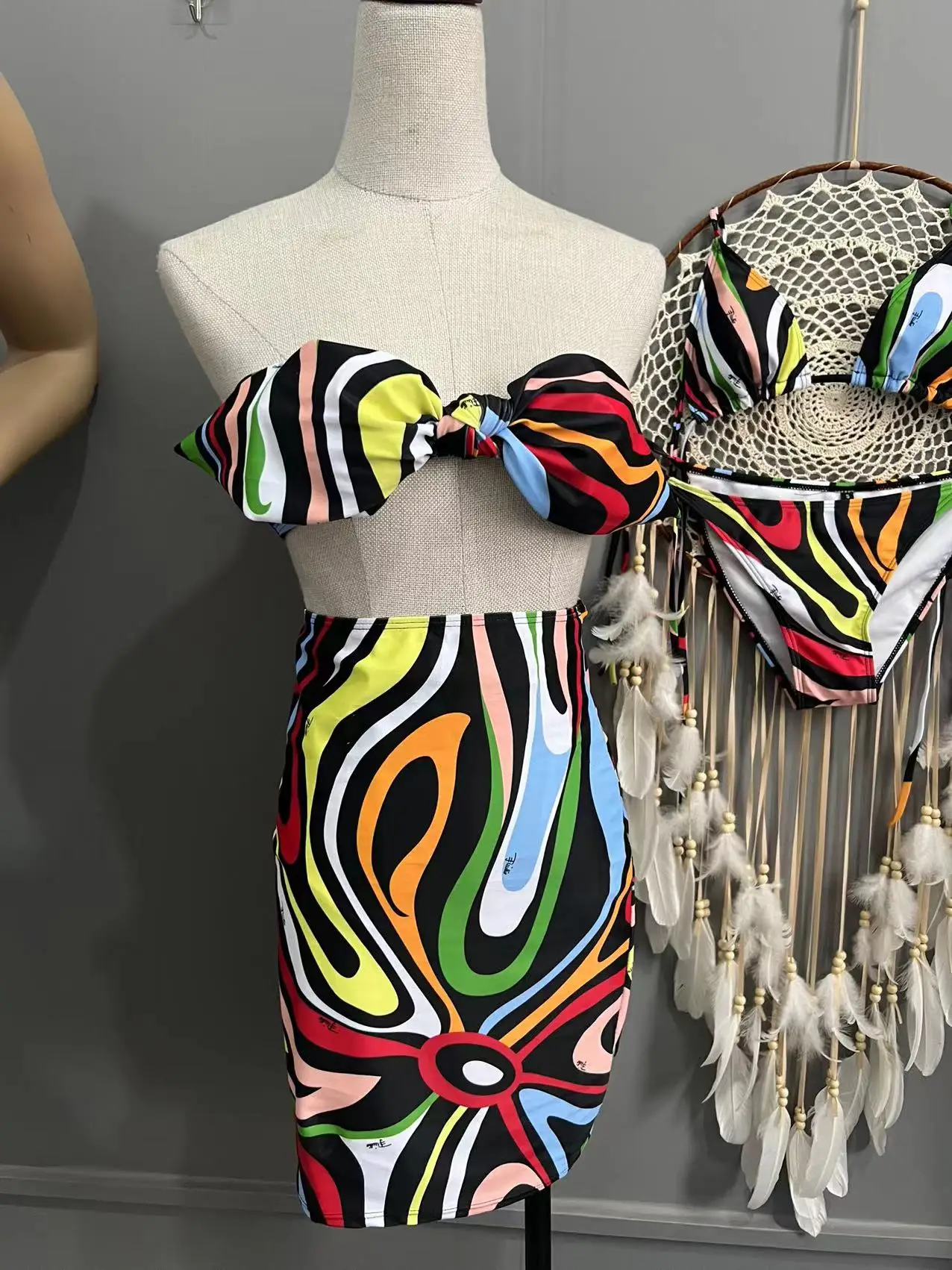 2025 High Waist Bikini Bow Bikinis Women Swimwear With Skirt Beachwear Colorful Bathsuit