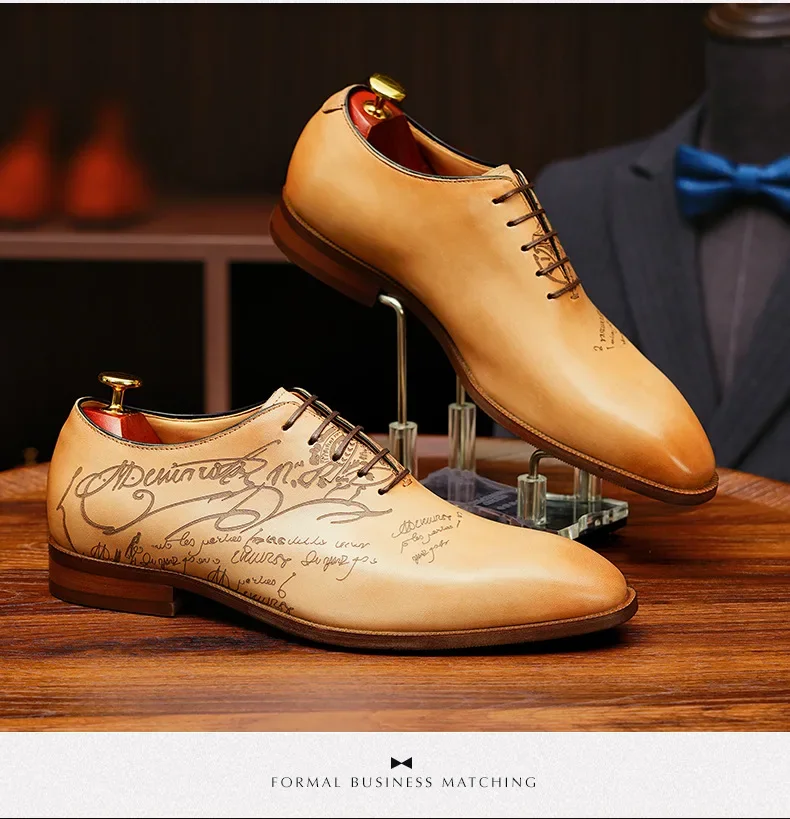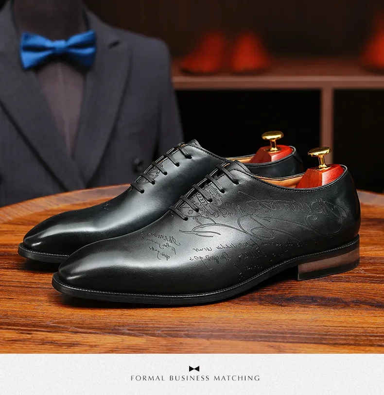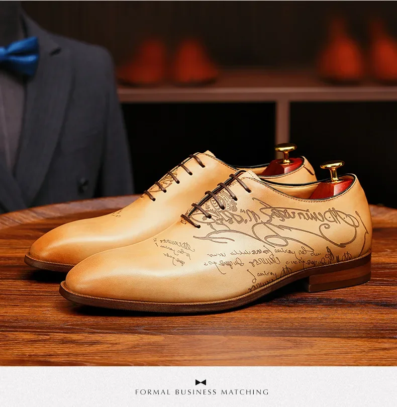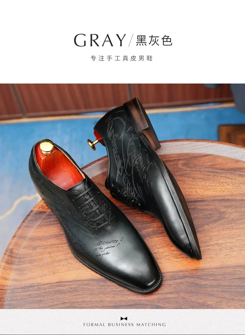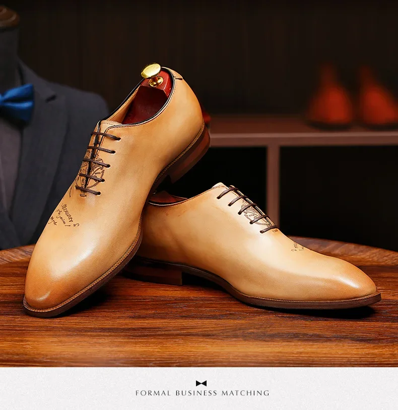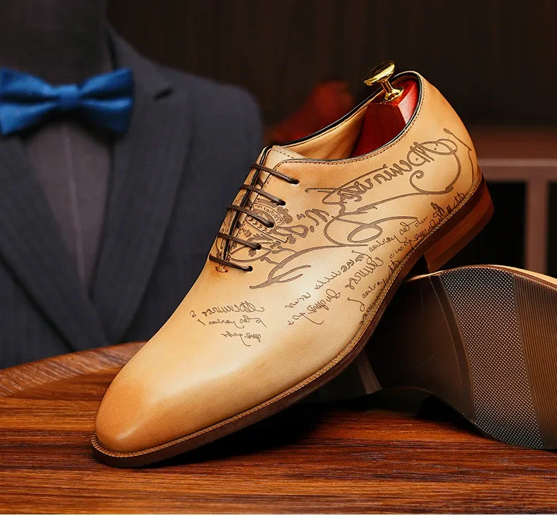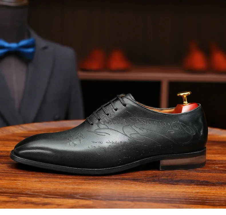 2025 Luxury Brand Men Leather Shoes Lace Up Pointed Toe Mixed Colors Brogues Oxford Mens Dress Shoes Wedding Office Shoes Men