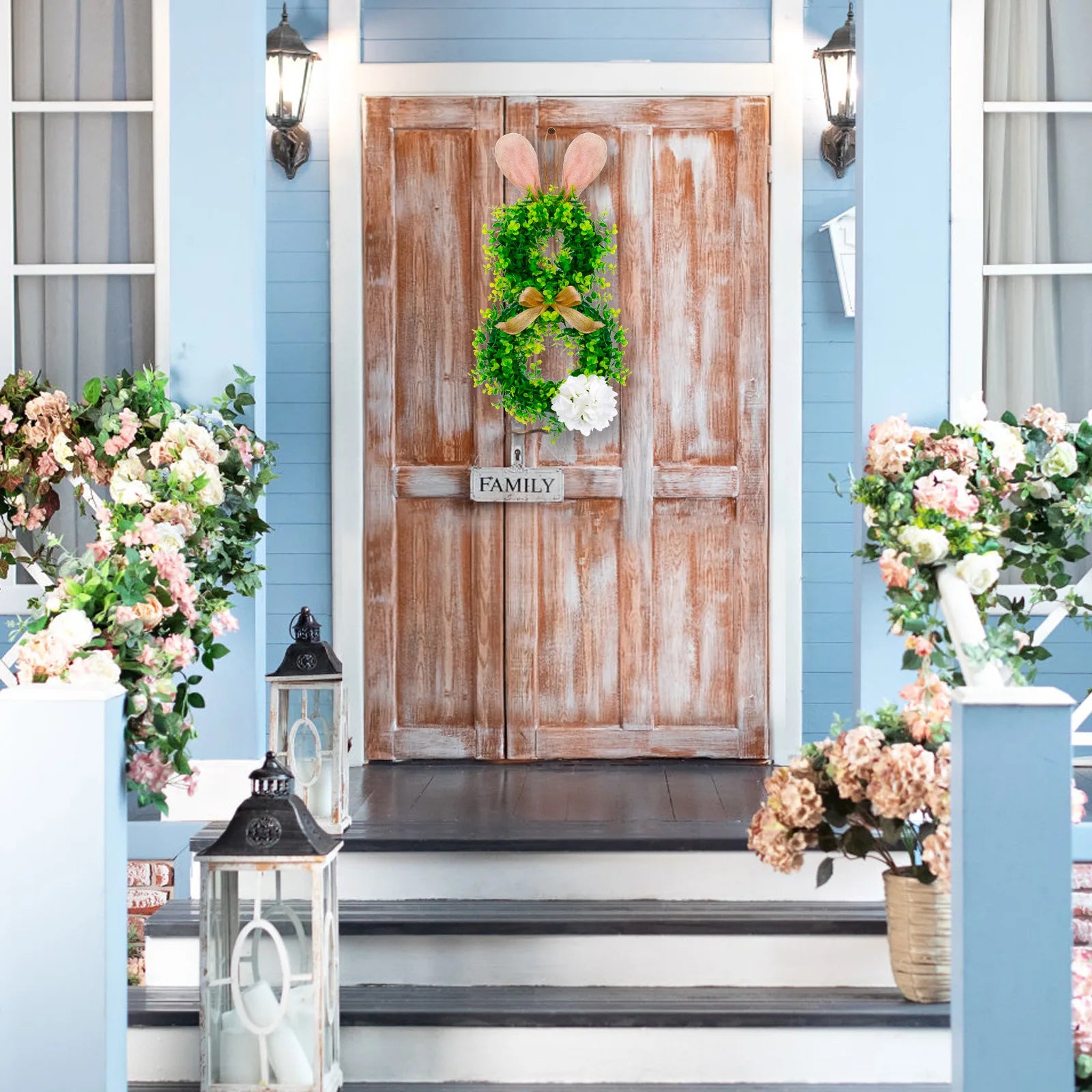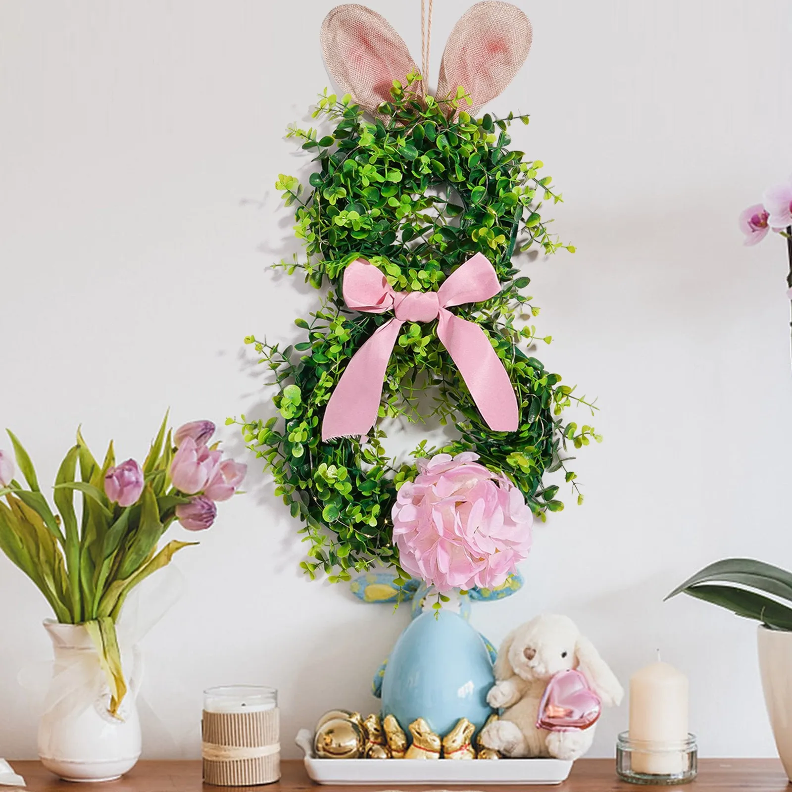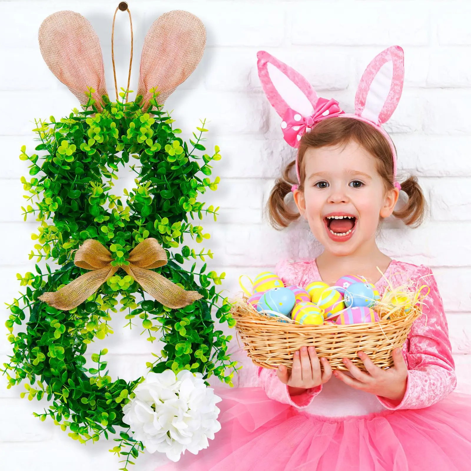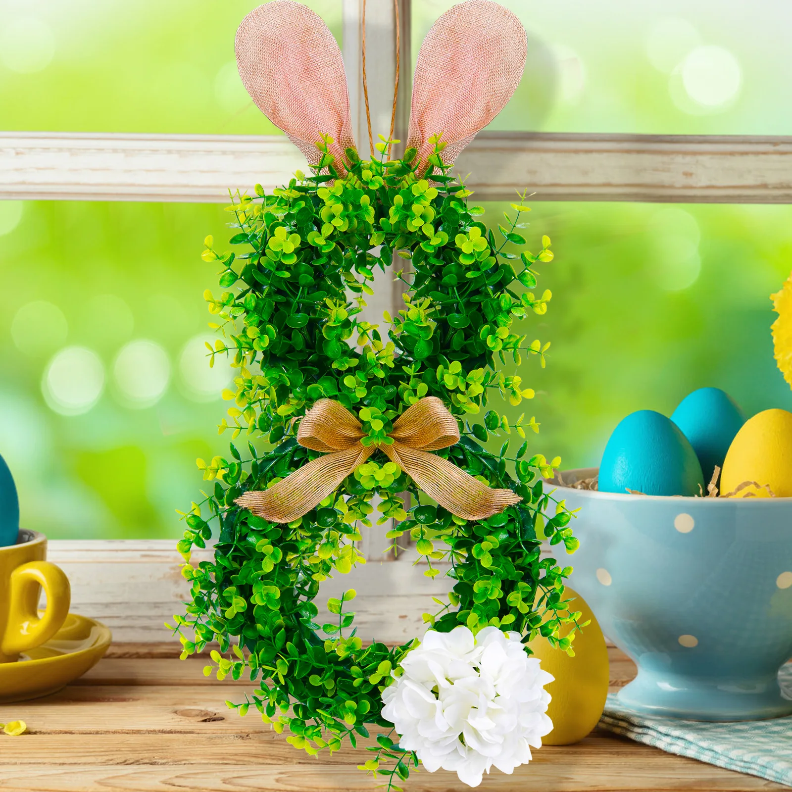 2025 New Easter Bunny Wreath Hanging Decorations Artificial Plants Rabbit Wreath Front Door Window Hanging Wreath Decorations