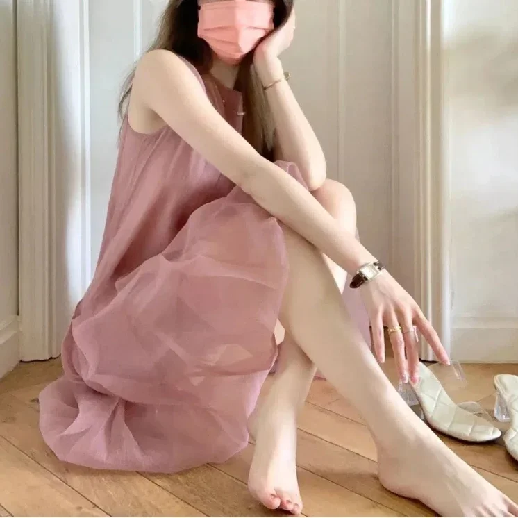 2025 Spring Autumn Fashion clothes O Neck Women's Clothing Sleeveless All Match Sweat Solid Chiffon Female Clothes Korean Style Dresses