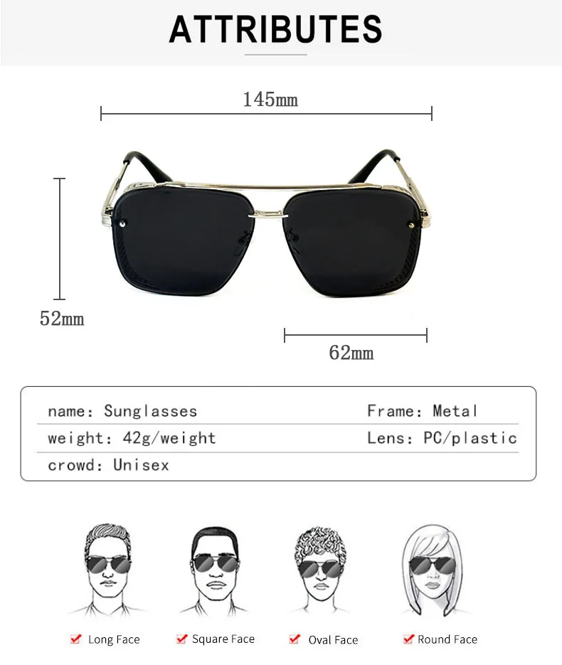 - High-quality metals: Our sun glasses are made from top-grade metals, providing strength, durability, and a premium look and feel.