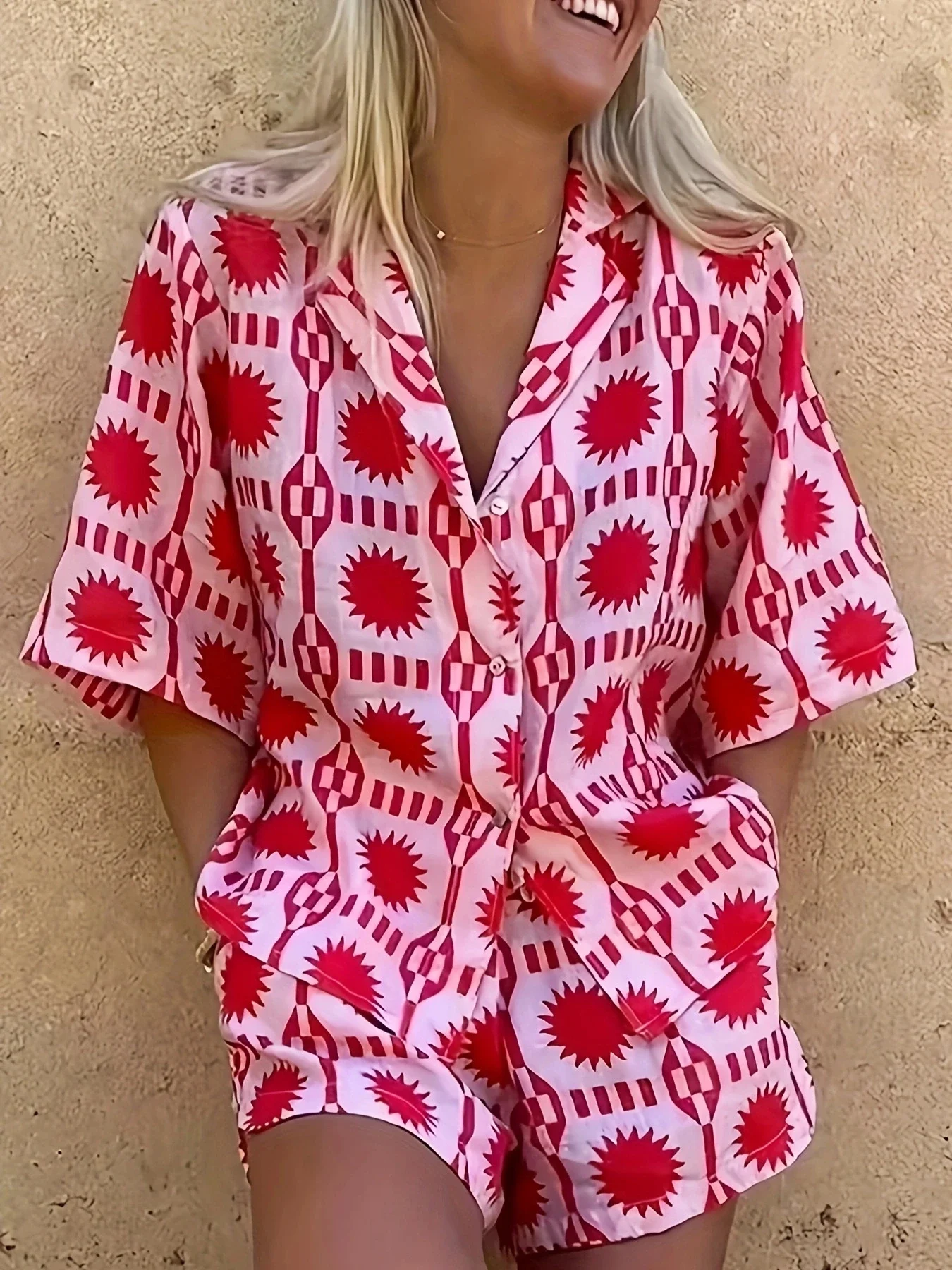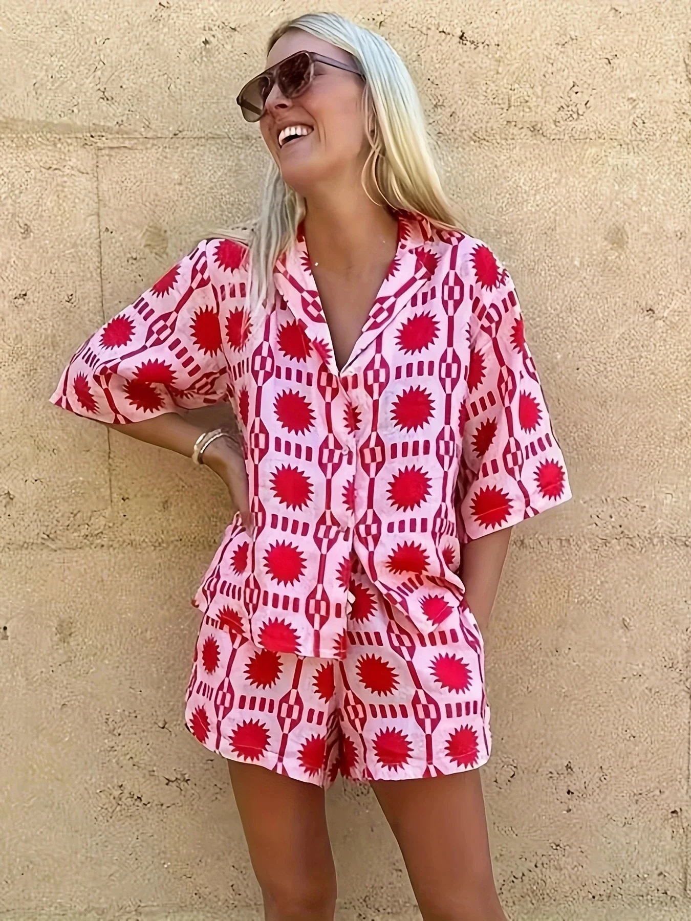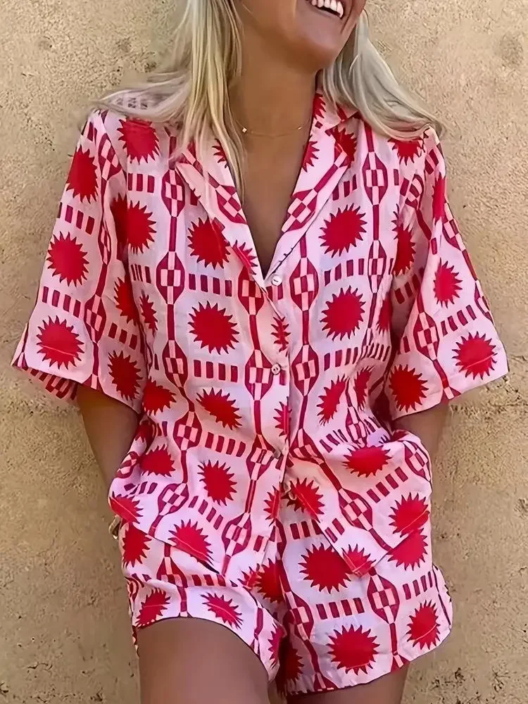 2025 Summer New Arrival Hot Selling Women's Lapel Short Sleeve Shorts Pocket Suit Beach Style Ladies Clothes Fashion Suit Sets