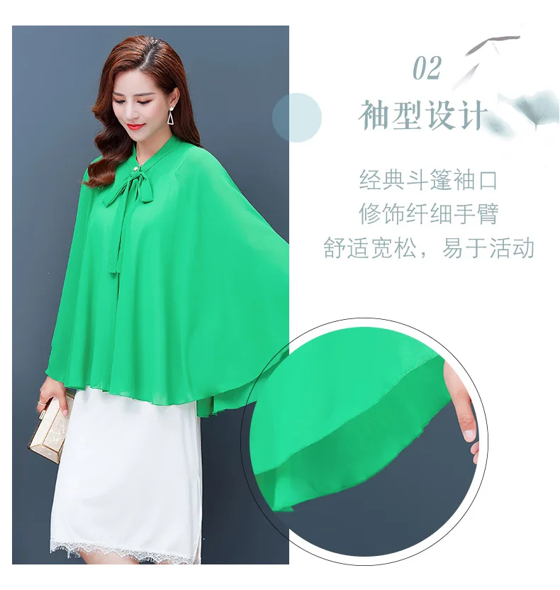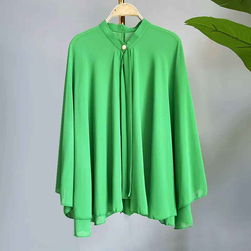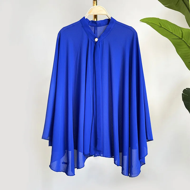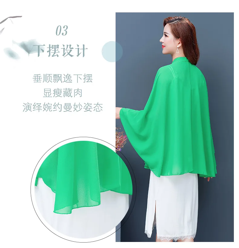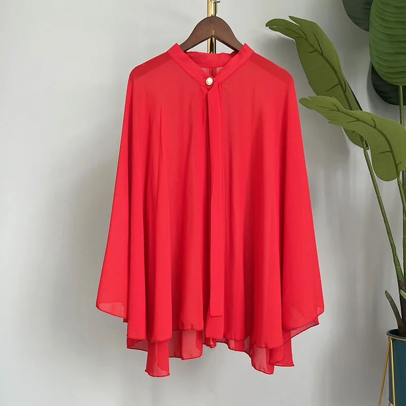 2025 Summer New Shawl Chiffon Sunscreen Clothes Women Lace Up Cloak Thin Air Conditioning Cardigan Lady Poncho Capes Black