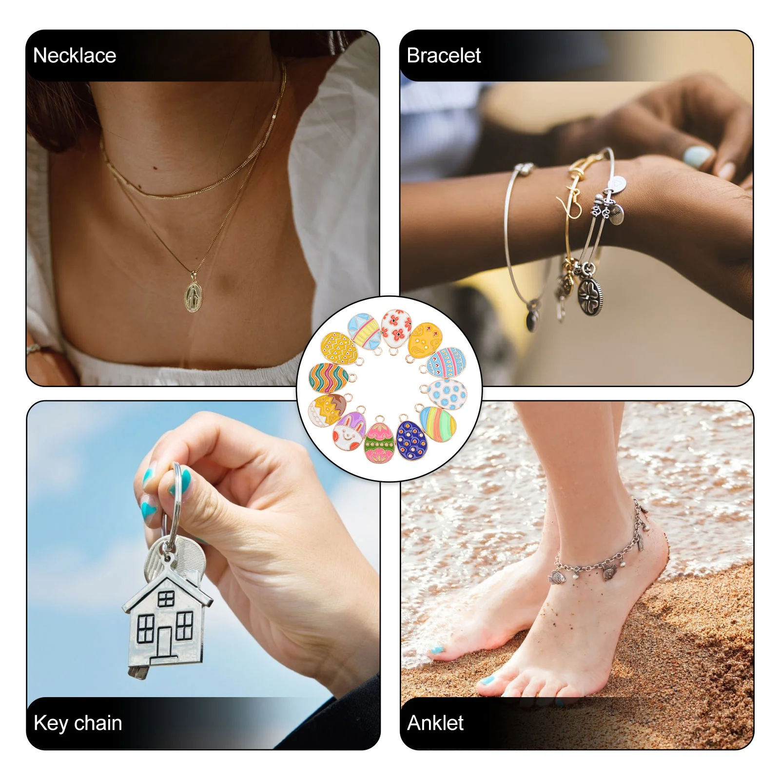 24 Pcs Easter Egg Pendant Decorations Bunny Charms Balloon DIY Accessories Chicken Earring Zinc Alloy