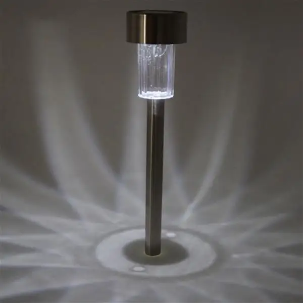 The lamp we'd like to share today is in tube style, made with high-class stainless steel & ABS & plastic materials as well as delicate workmanship. So, for both durability and reliability, you can trustingly rely it. This LED lamp, powered by solar energy, is much clean and eco-friendly to use. Insert the cusp end into ground outdoors, it will stand steadily. Emitting bright white light, this lamp could well guide your directions. Such a practical lamp is much suitable for garden or yard. Our 24pcs 5W High Brightness Solar Power LED Lawn Lamps with Lampshades deserve your buying!