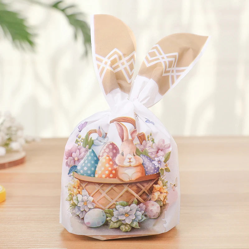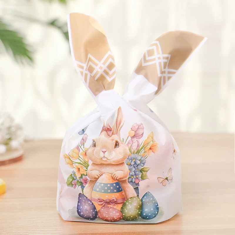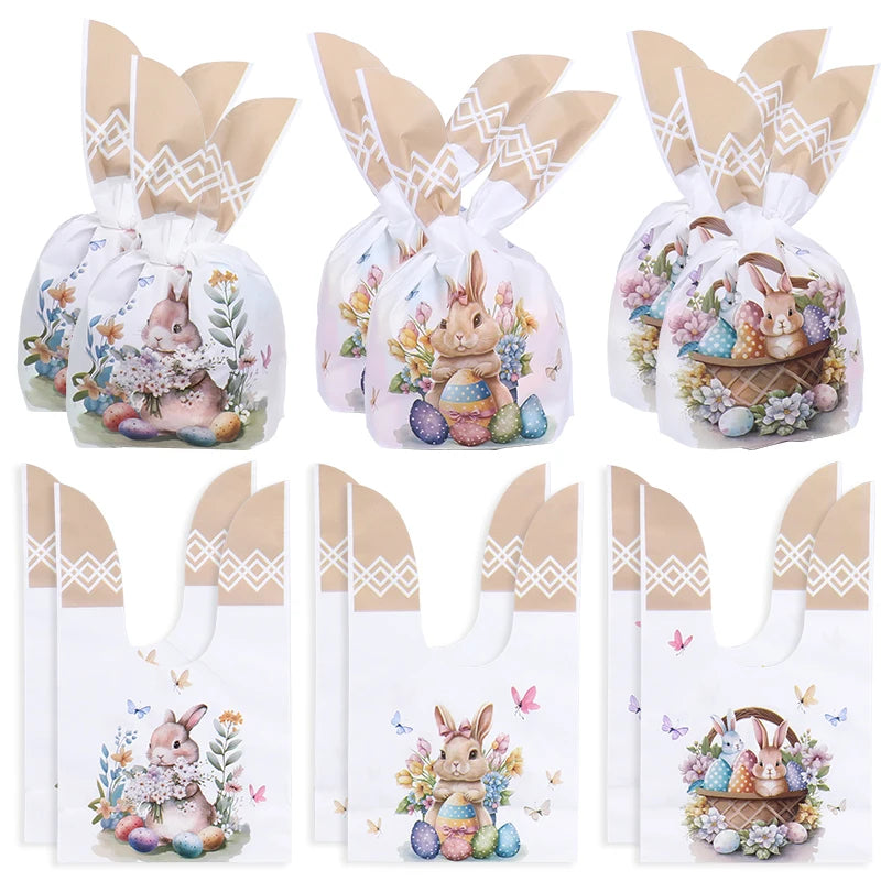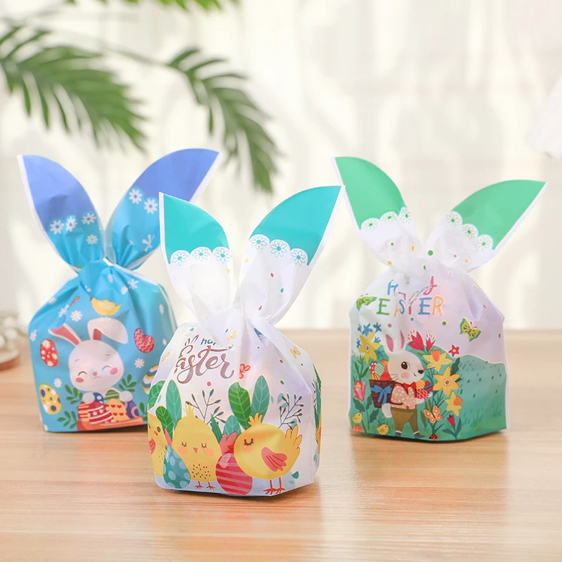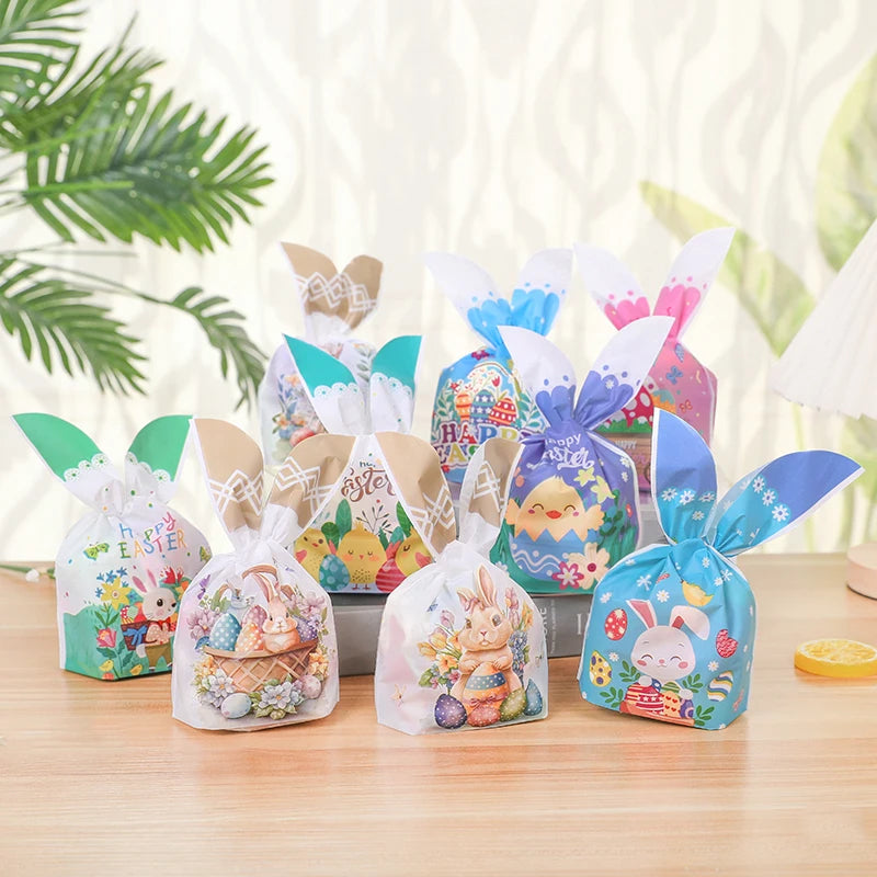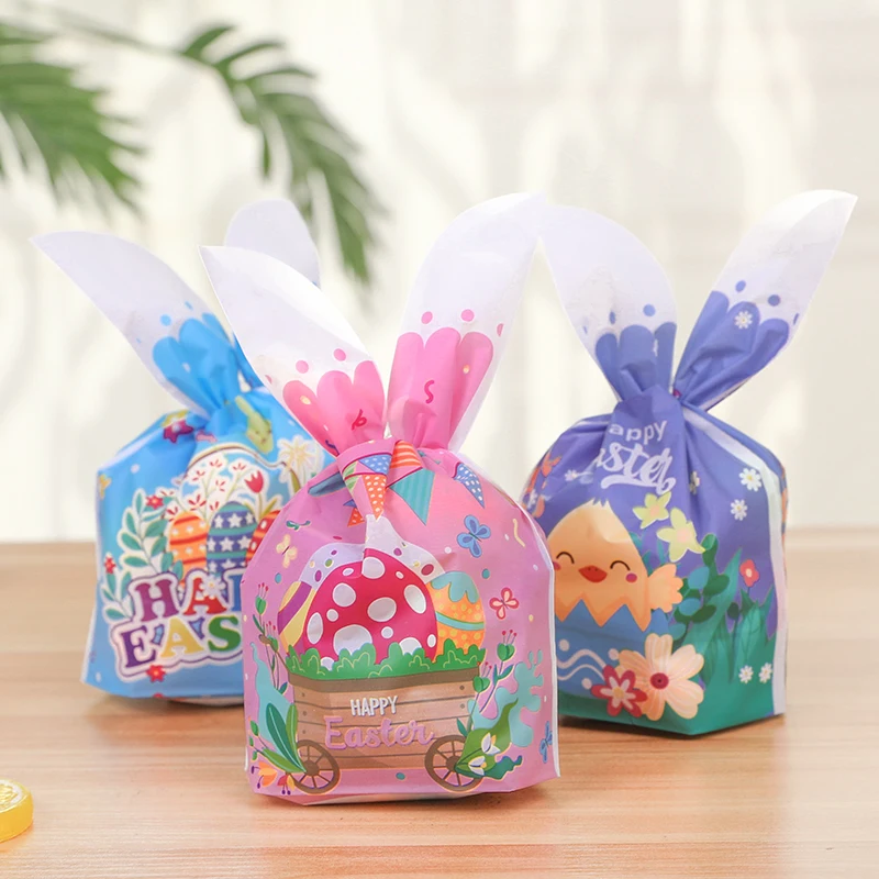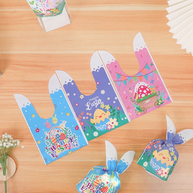 25/50pcs Easter Rabbit Ear Candy Cookies Bag Cute Bunny Eggs Gift Packaging Bag Kids Easter Birthday Party Favors Decor Supplies