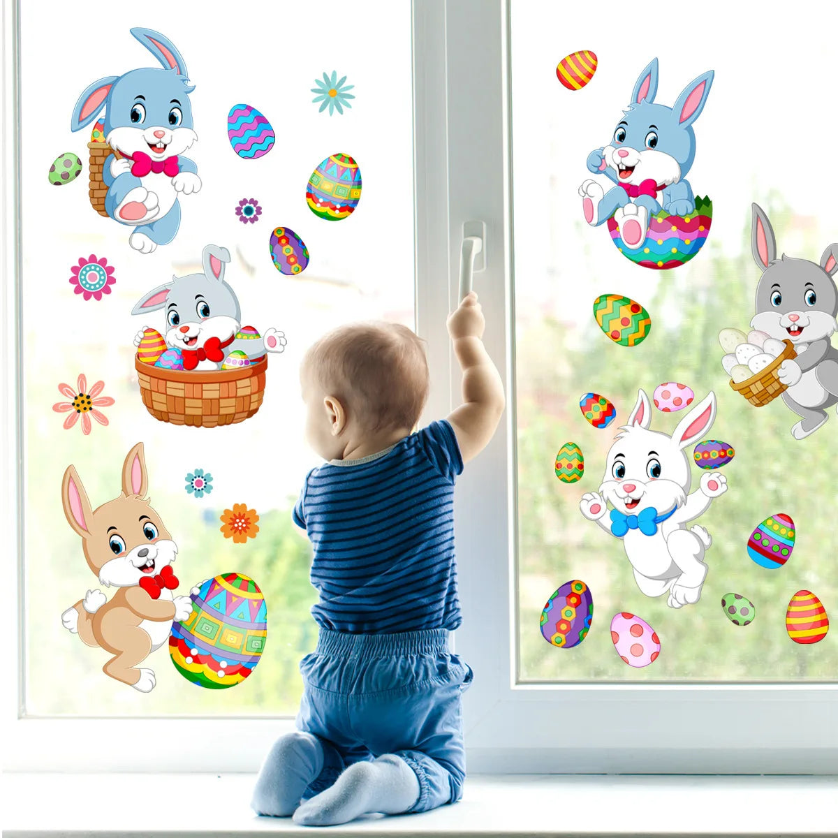 2sheet Easter Bunny Window Clings Cute Rabbit Egg Hunt Game Decoration Wall Sticker Glass Decals Easter Party Spring Home Decor