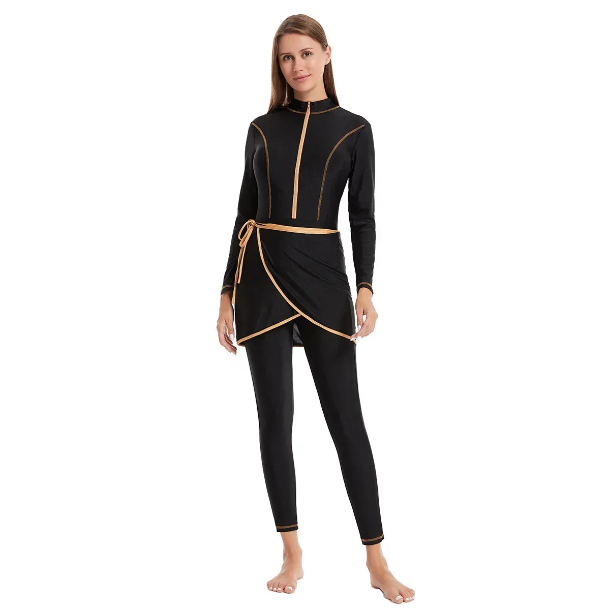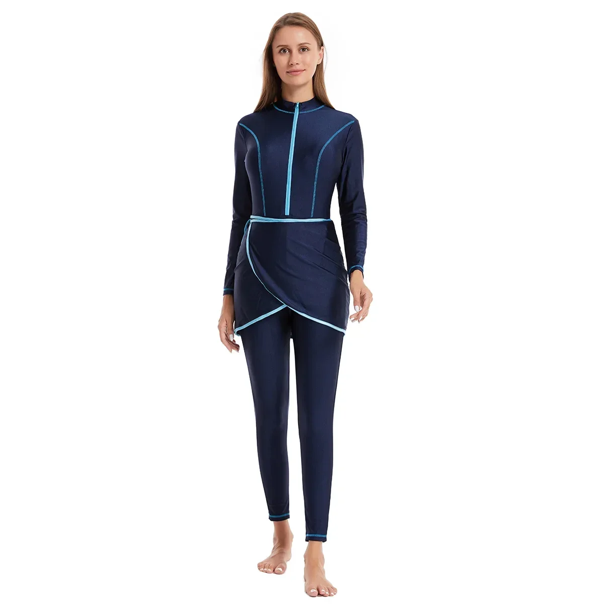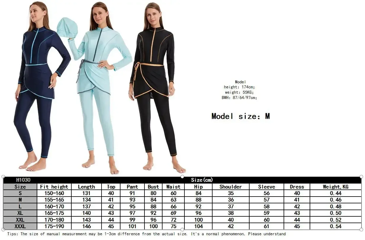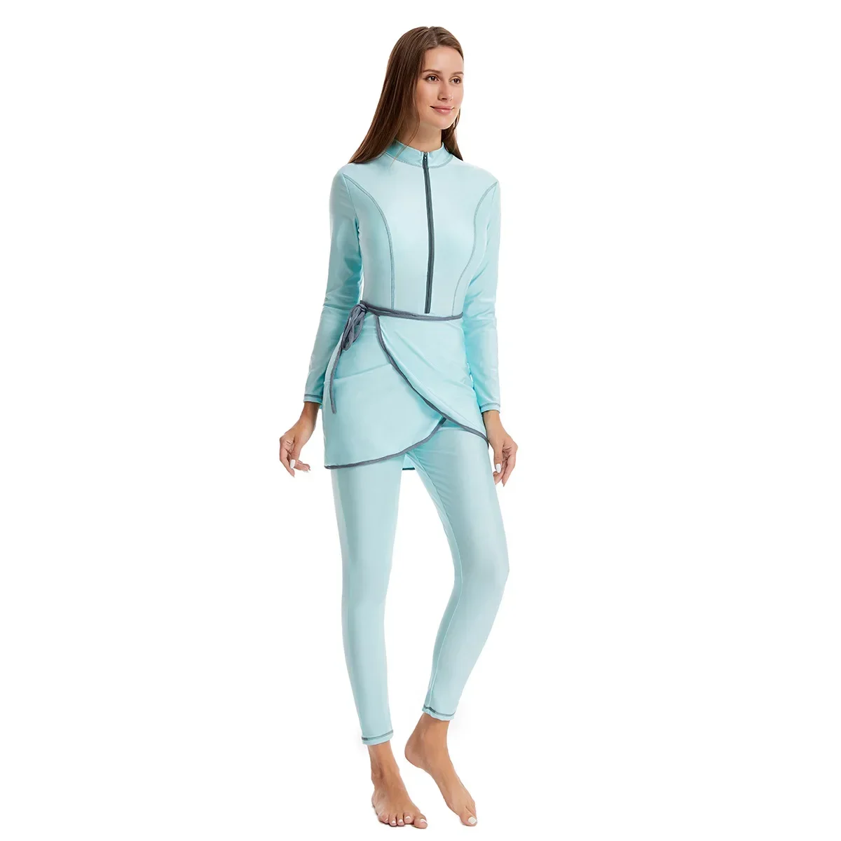 3 Pcs Swimming Sets Women Muslim Swimwears Front Zipper Full Cover Beach Swimsuit Muslim Swim Pants Set Islamic Modest Burkini