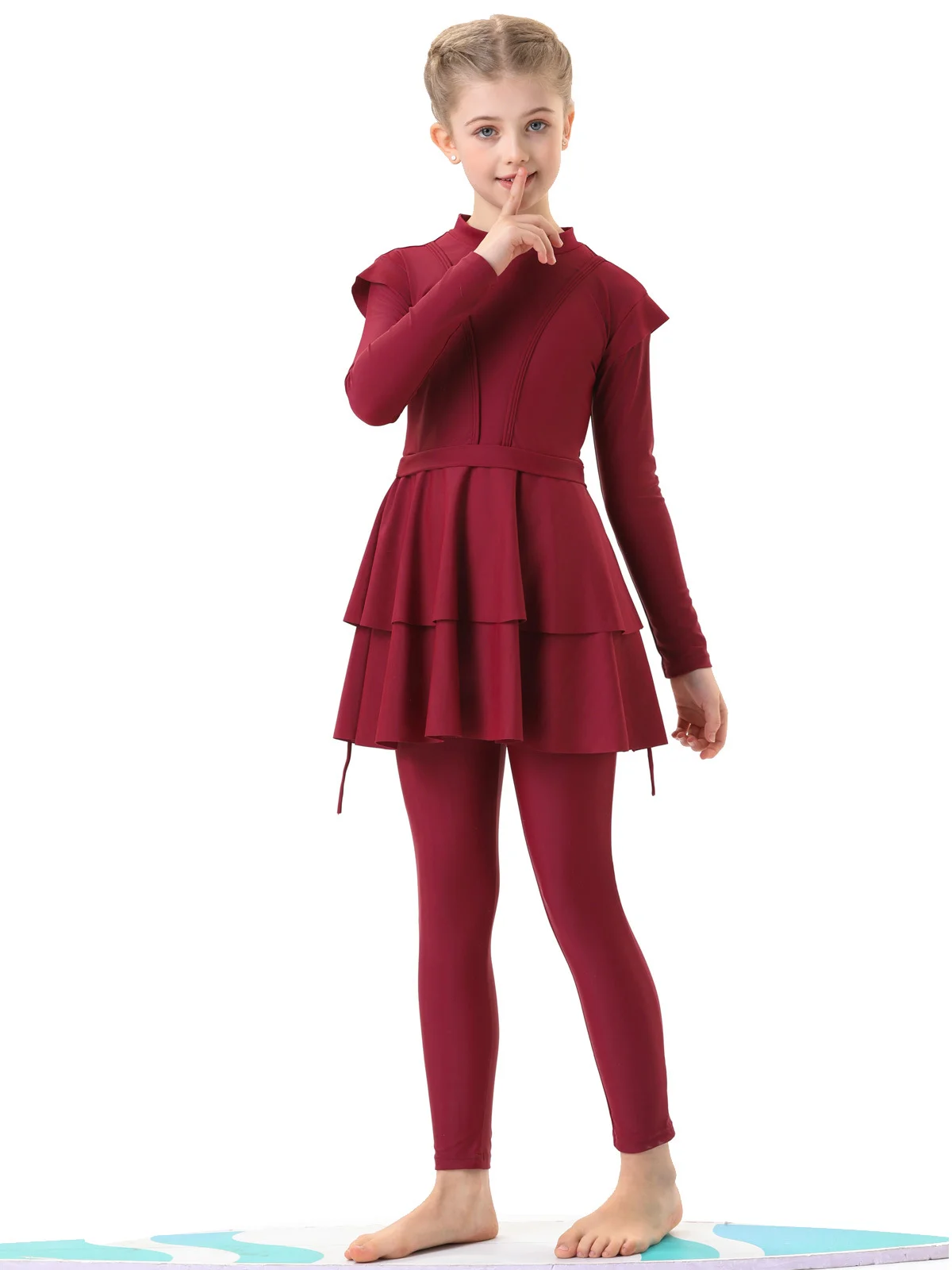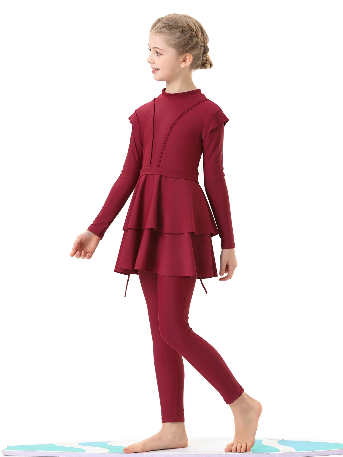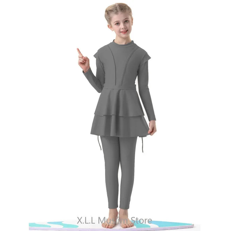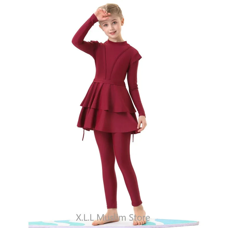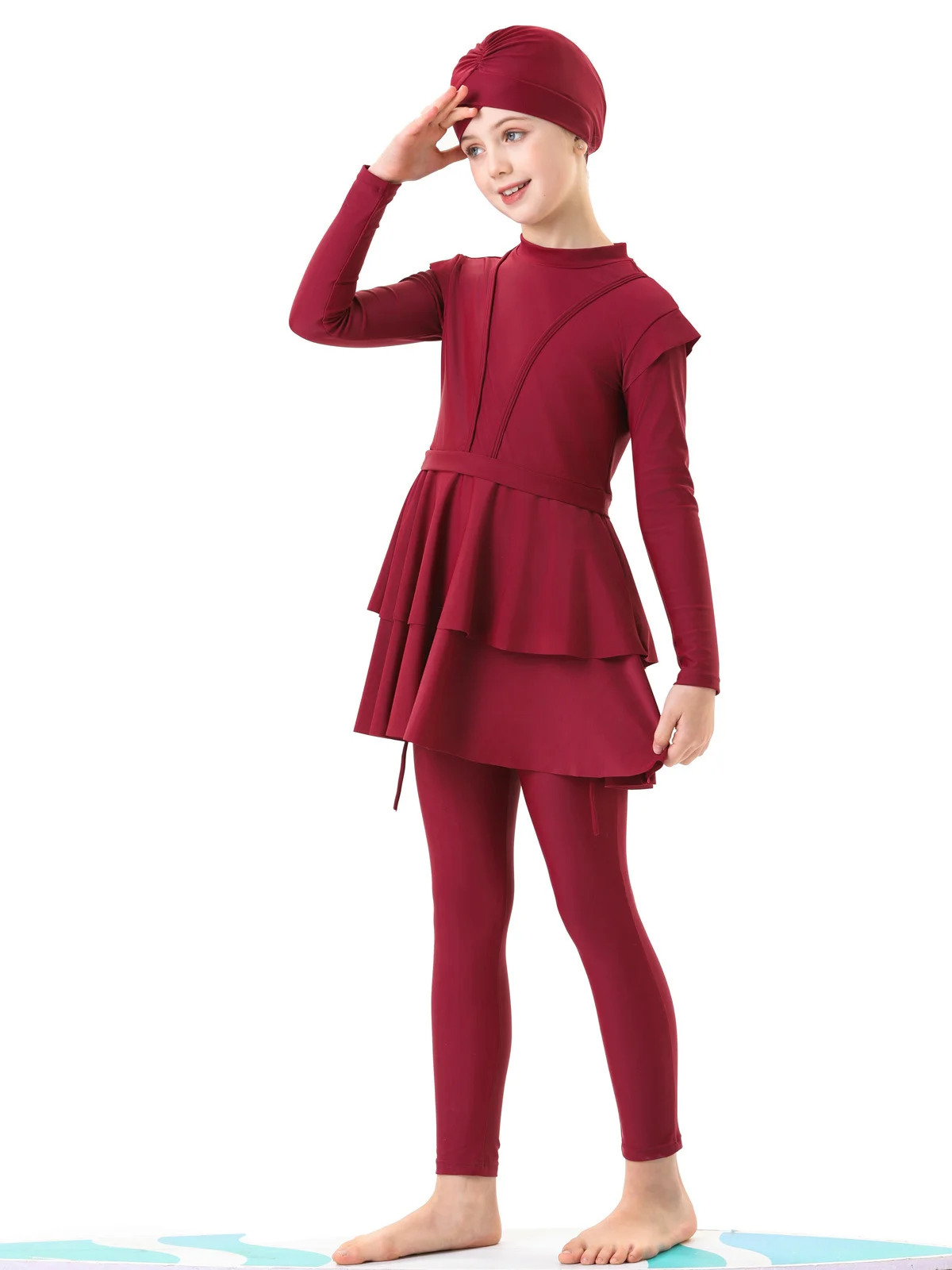 3 Pieces Set Muslim Kids Red Gray Swimwear Girl With Swim Cap Burkini Femme Musulmane Swimsuit Clothing Trajes De Baño Mujer