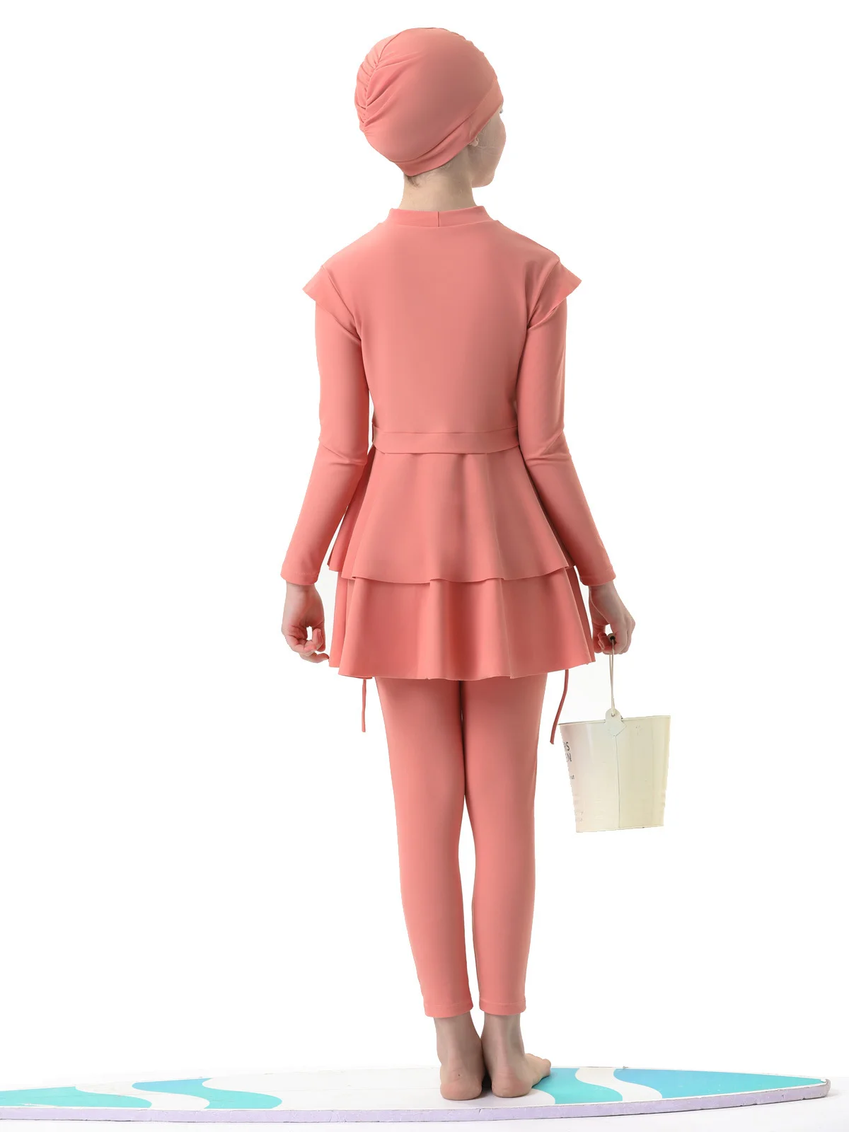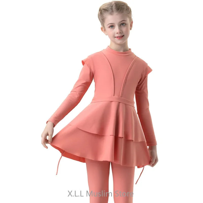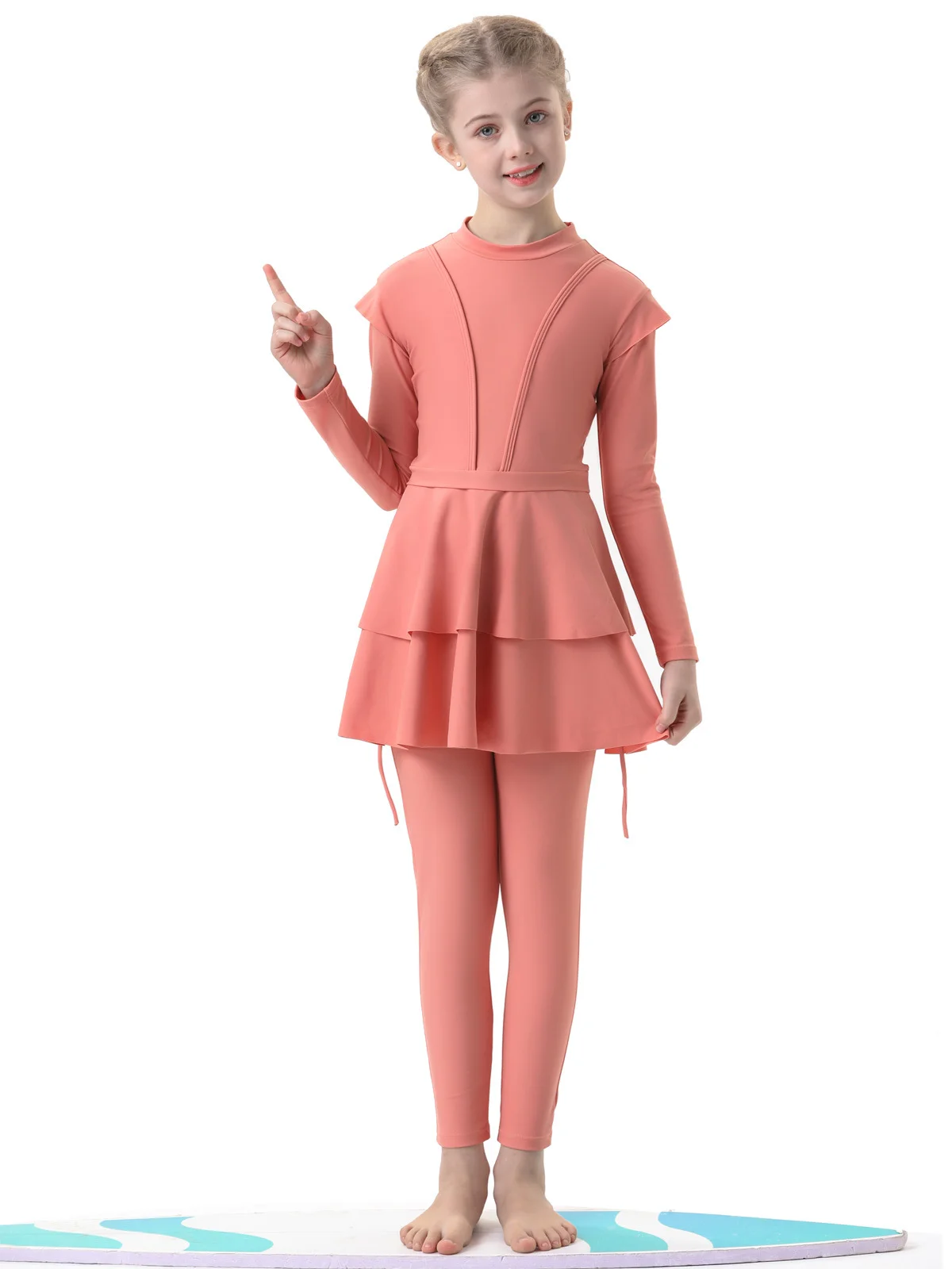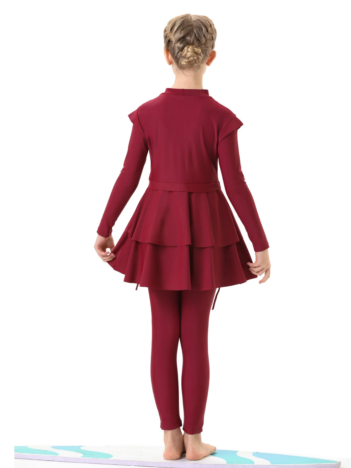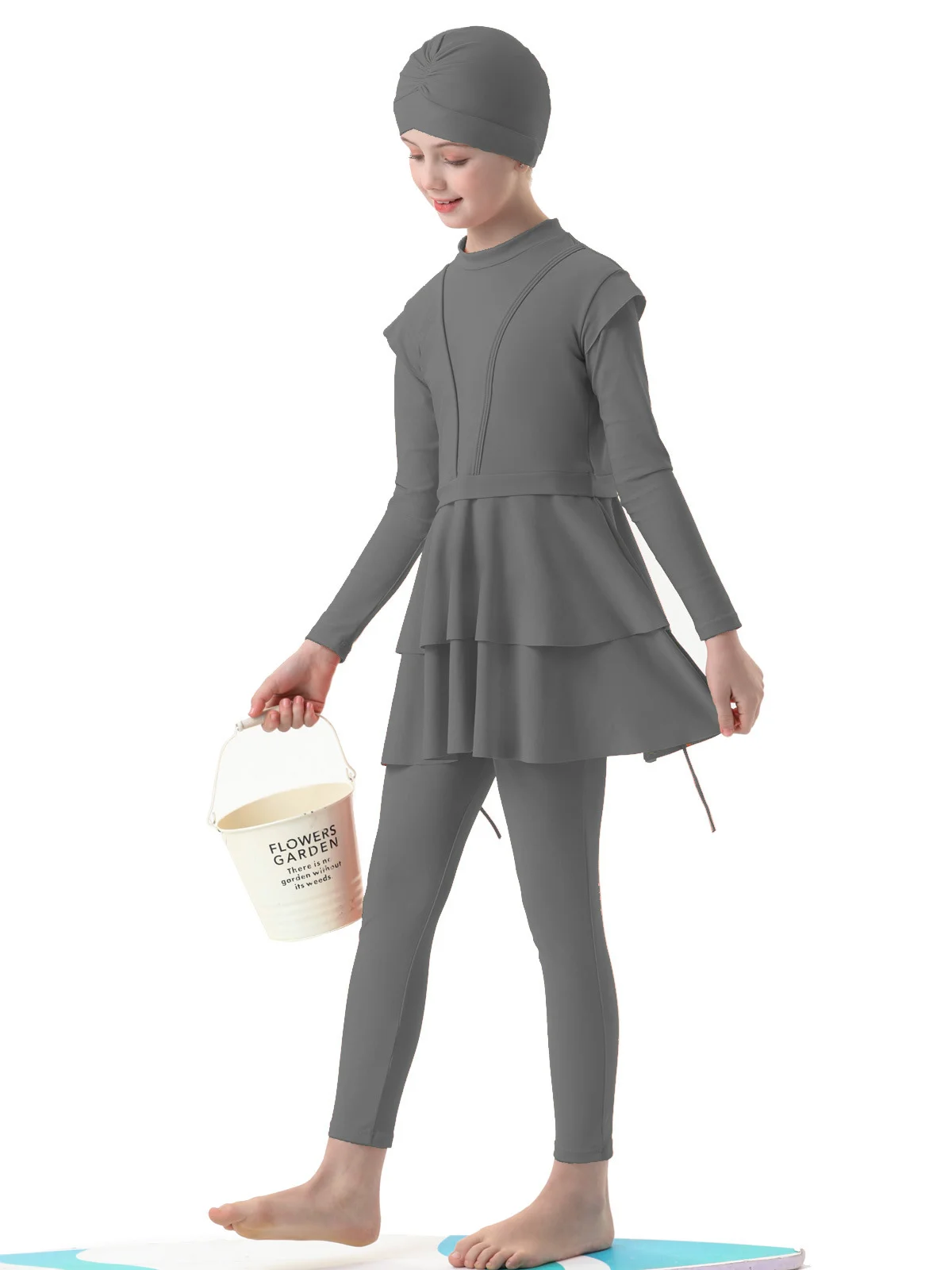 3 Pieces Set Muslim Kids Red Gray Swimwear Girl With Swim Cap Burkini Femme Musulmane Swimsuit Clothing Trajes De Baño Mujer